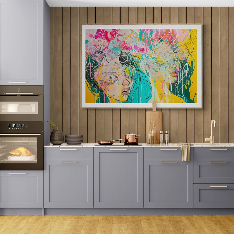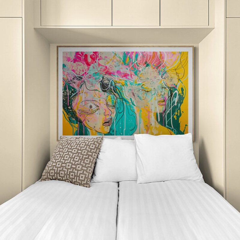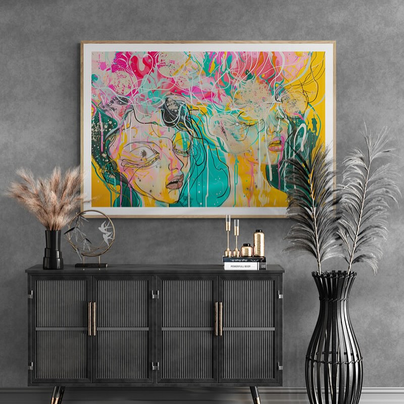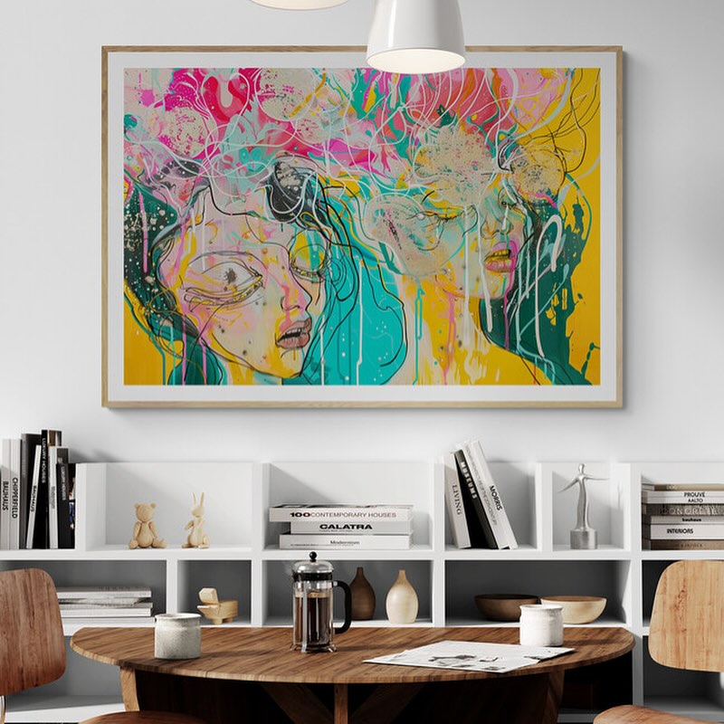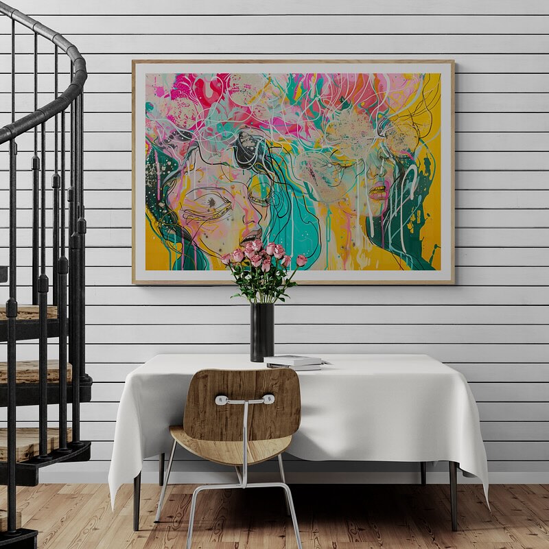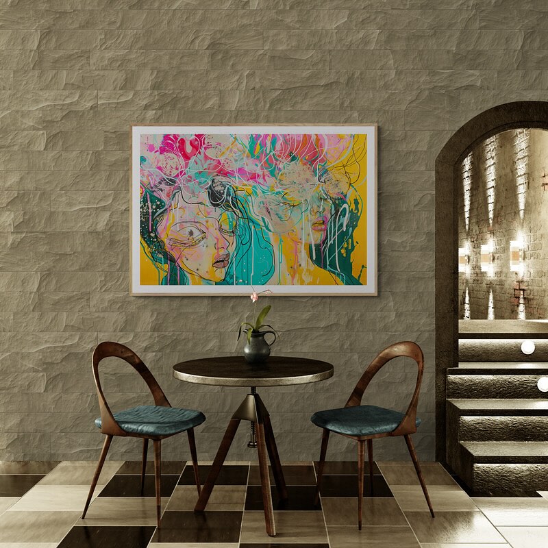 Para obras enmarcadas, sugerimos quitar con cuidado el embalaje protector y colgarla con la ayuda de dos personas, usando clavos resistentes. En el caso de obras de gran tamaño, si es posible, utiliza tornillos y tacos de pared.