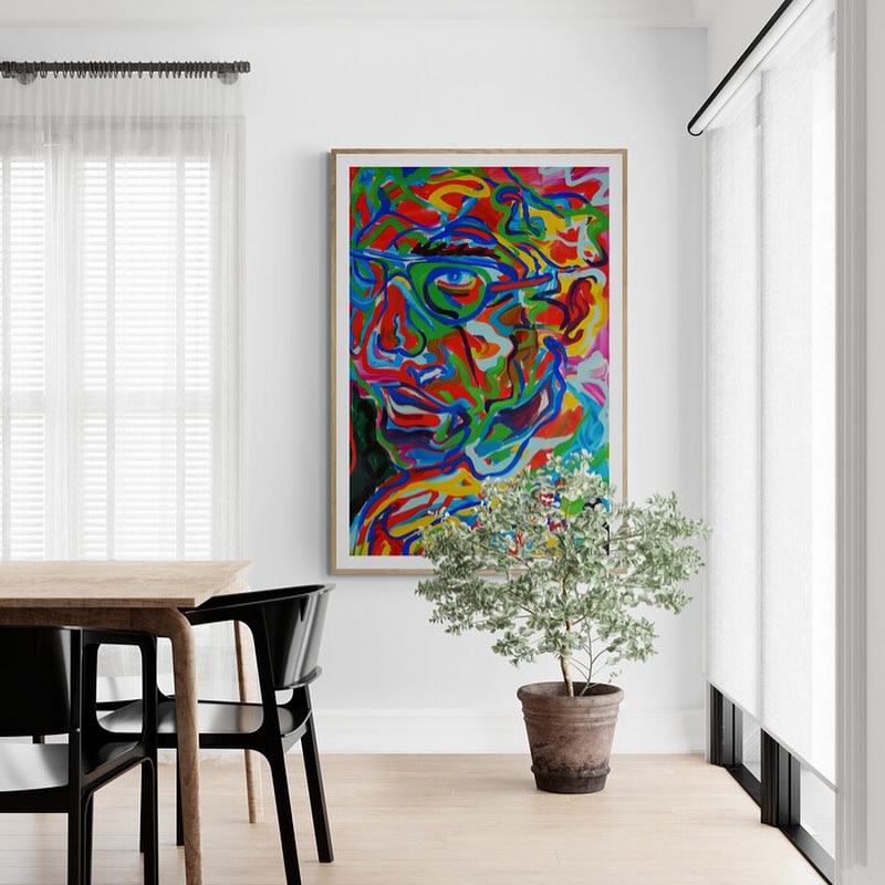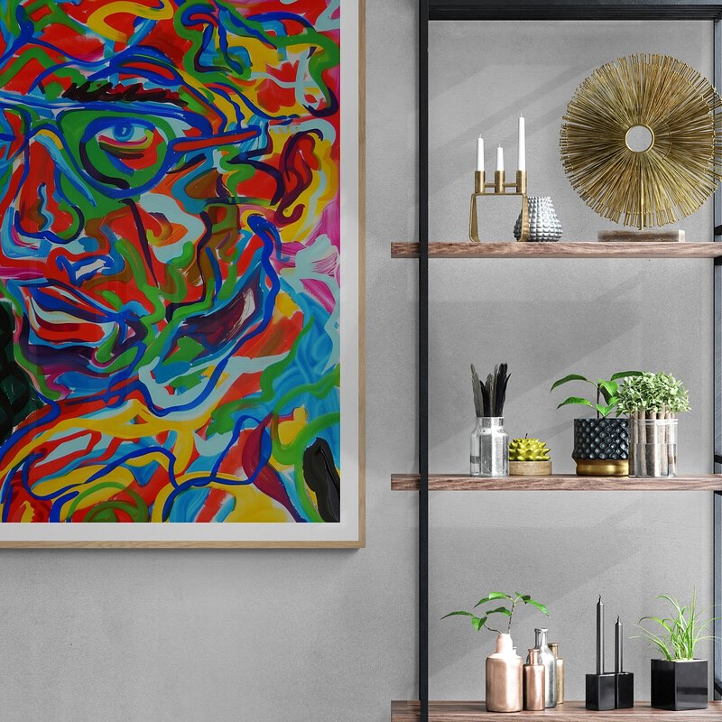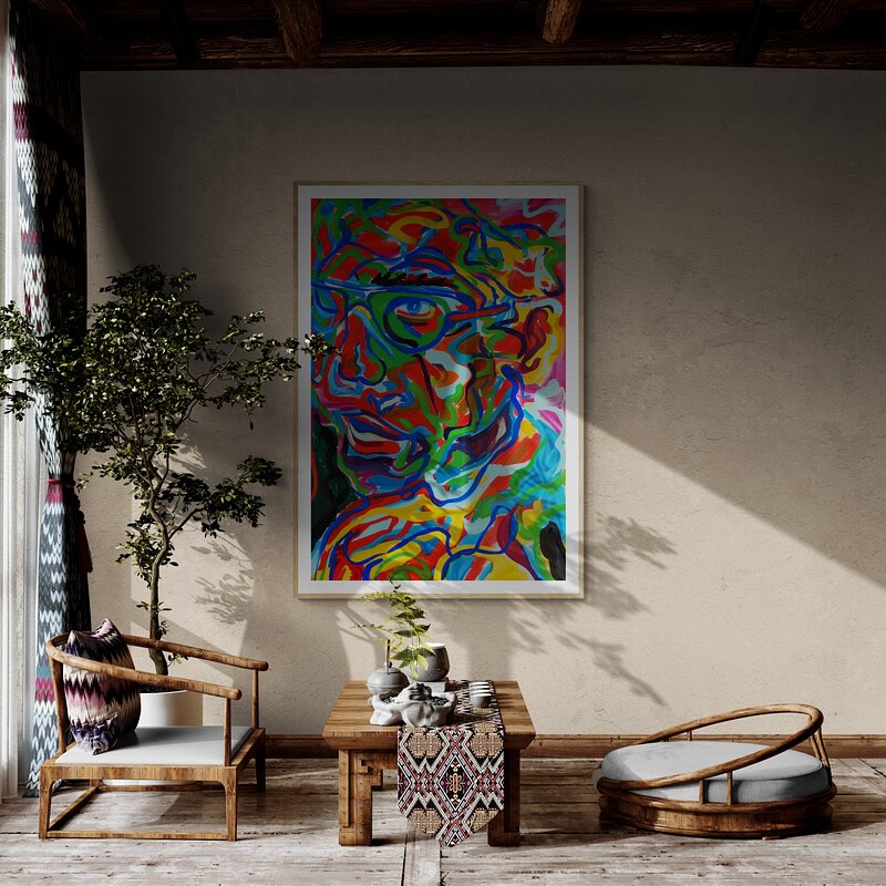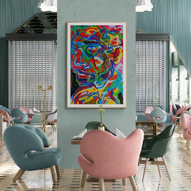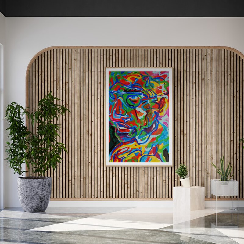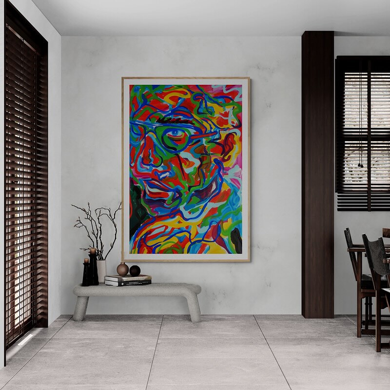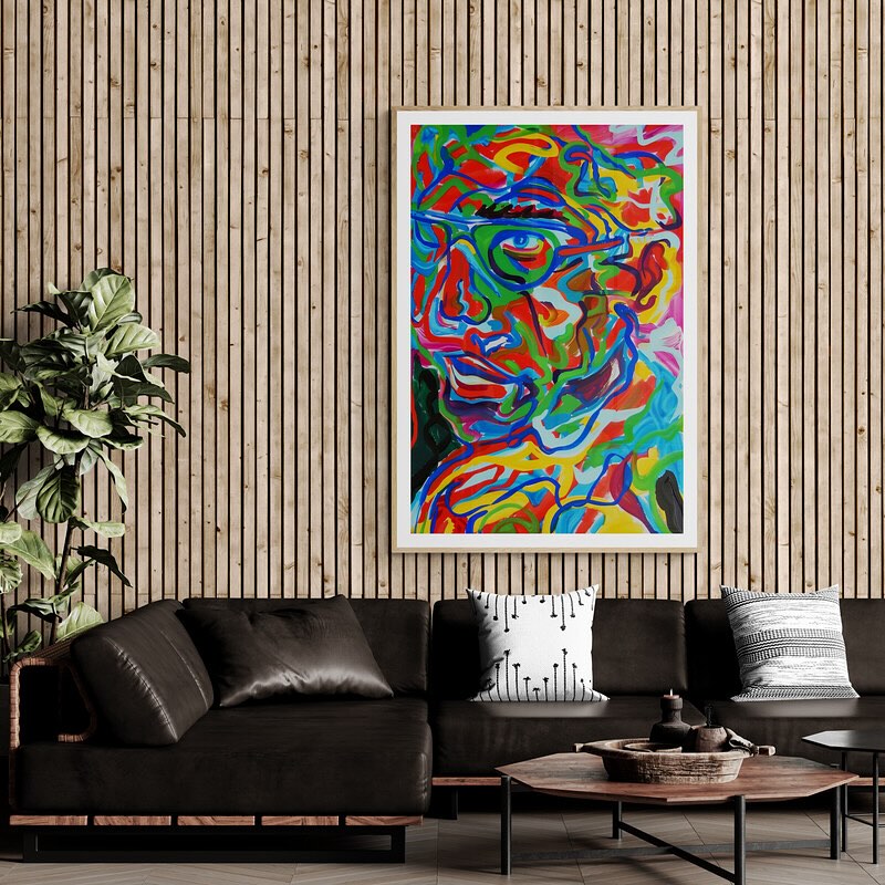 Abstract and colorful portrait of a man with glasses in vibrant colors.