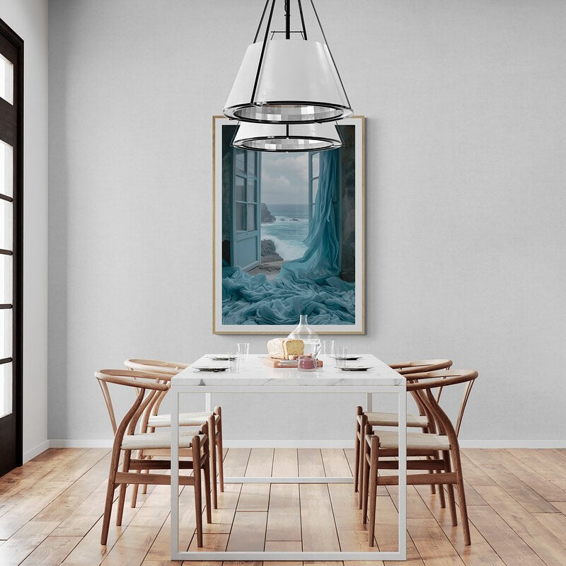 Para obras enmarcadas, sugerimos quitar con cuidado el embalaje protector y colgarla con la ayuda de dos personas, usando clavos resistentes. En el caso de obras de gran tamaño, si es posible, utiliza tornillos y tacos de pared.