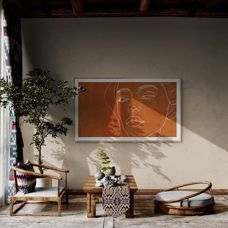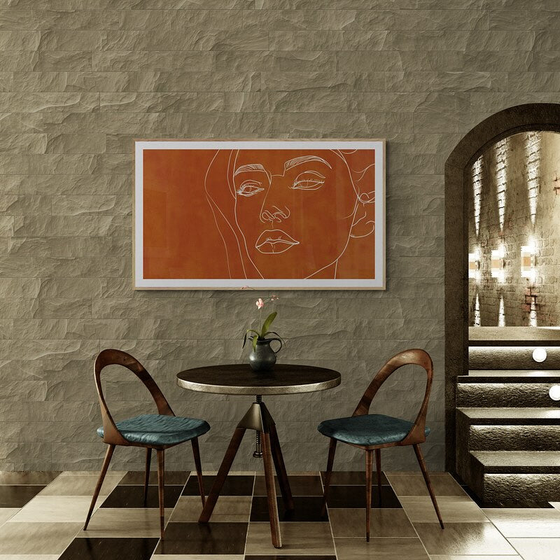 Para obras enmarcadas, sugerimos quitar con cuidado el embalaje protector y colgarla con la ayuda de dos personas, usando clavos resistentes. En el caso de obras de gran tamaño, si es posible, utiliza tornillos y tacos de pared.