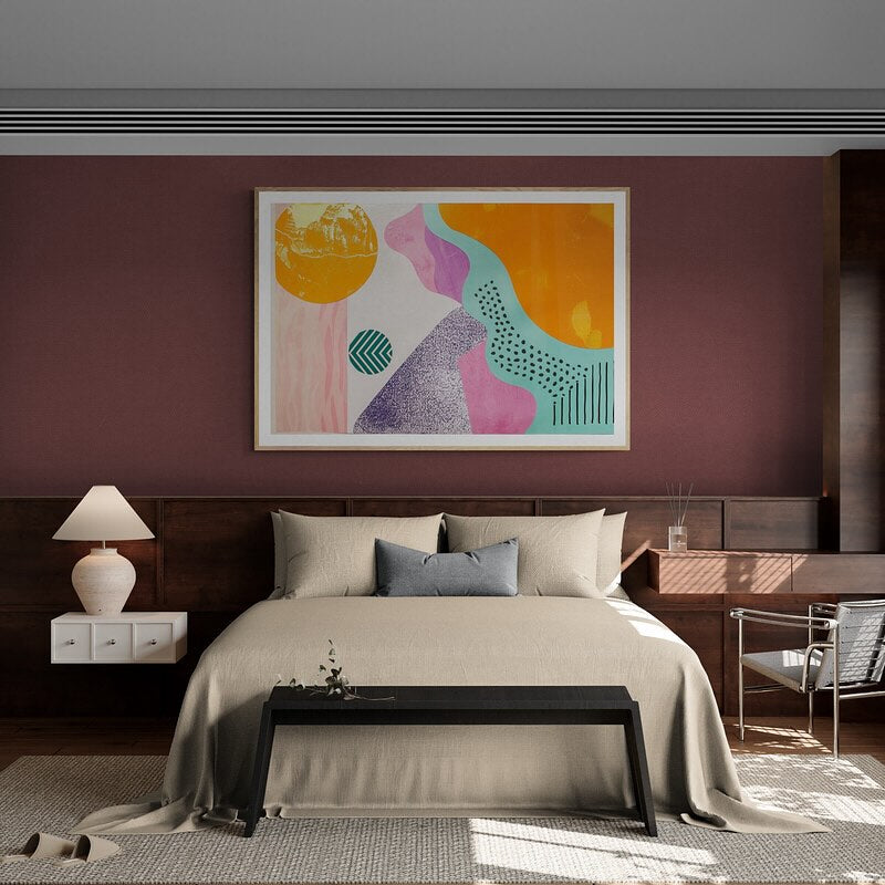 Para obras enmarcadas, sugerimos quitar con cuidado el embalaje protector y colgarla con la ayuda de dos personas, usando clavos resistentes. En el caso de obras de gran tamaño, si es posible, utiliza tornillos y tacos de pared.