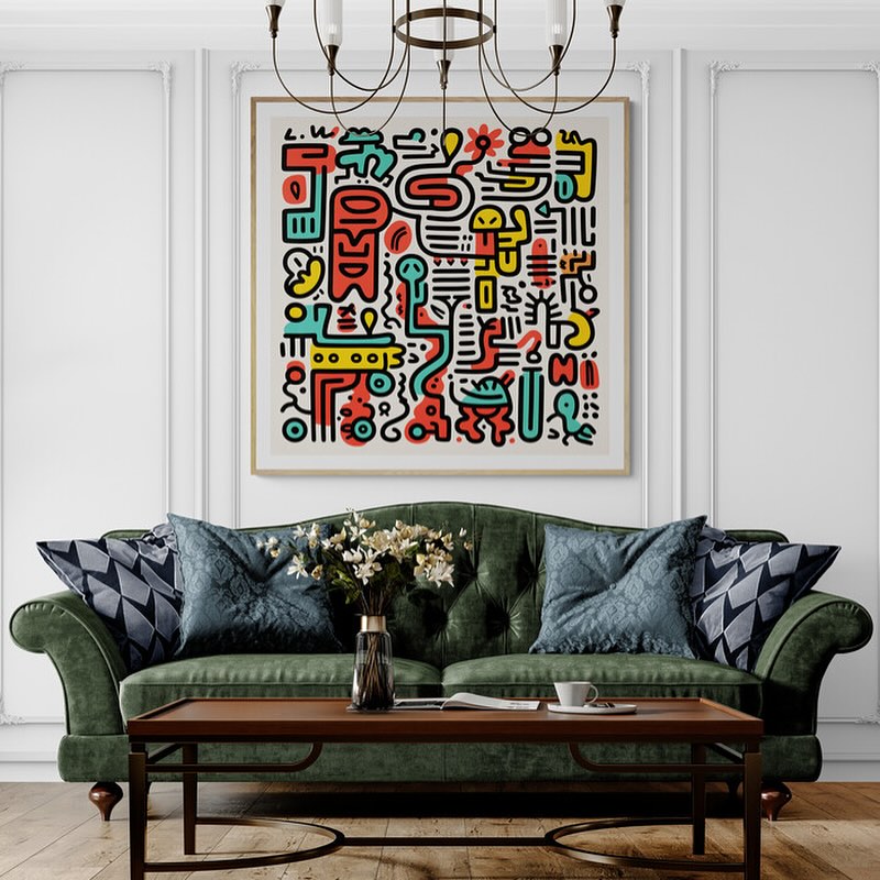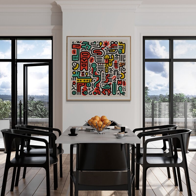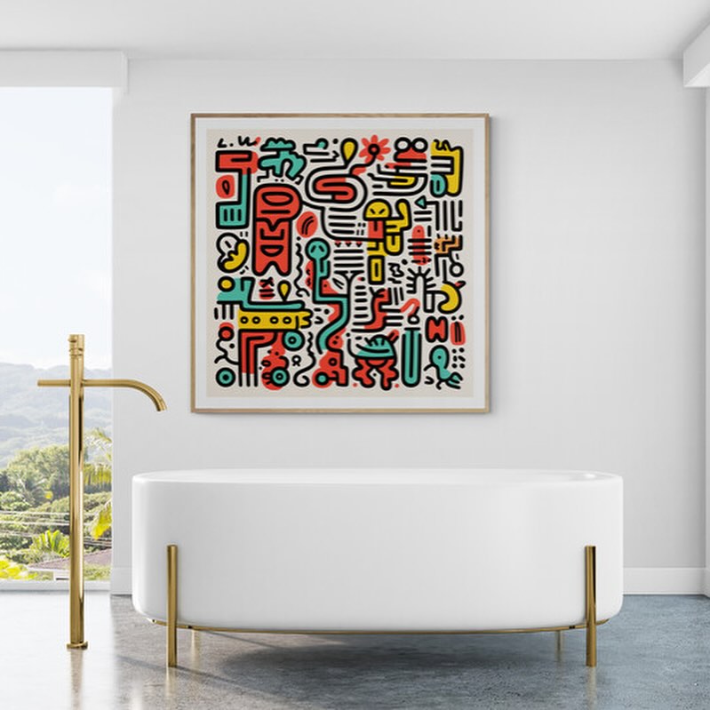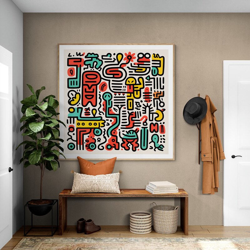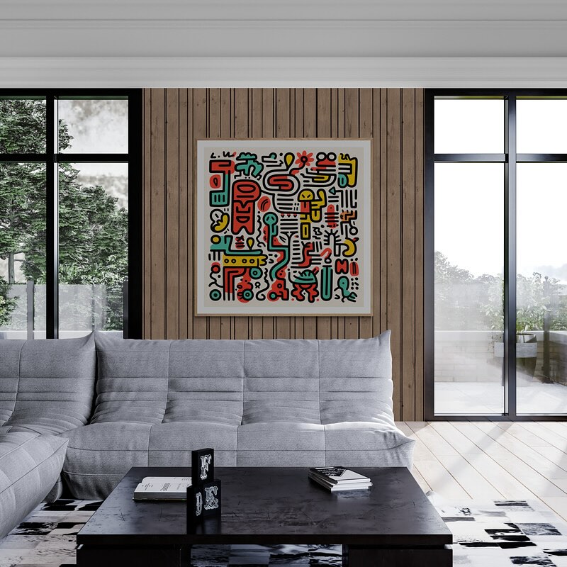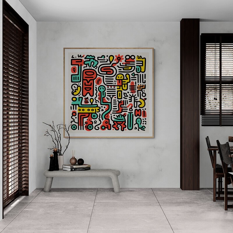 Para obras enmarcadas, sugerimos quitar con cuidado el embalaje protector y colgarla con la ayuda de dos personas, usando clavos resistentes. En el caso de obras de gran tamaño, si es posible, utiliza tornillos y tacos de pared.