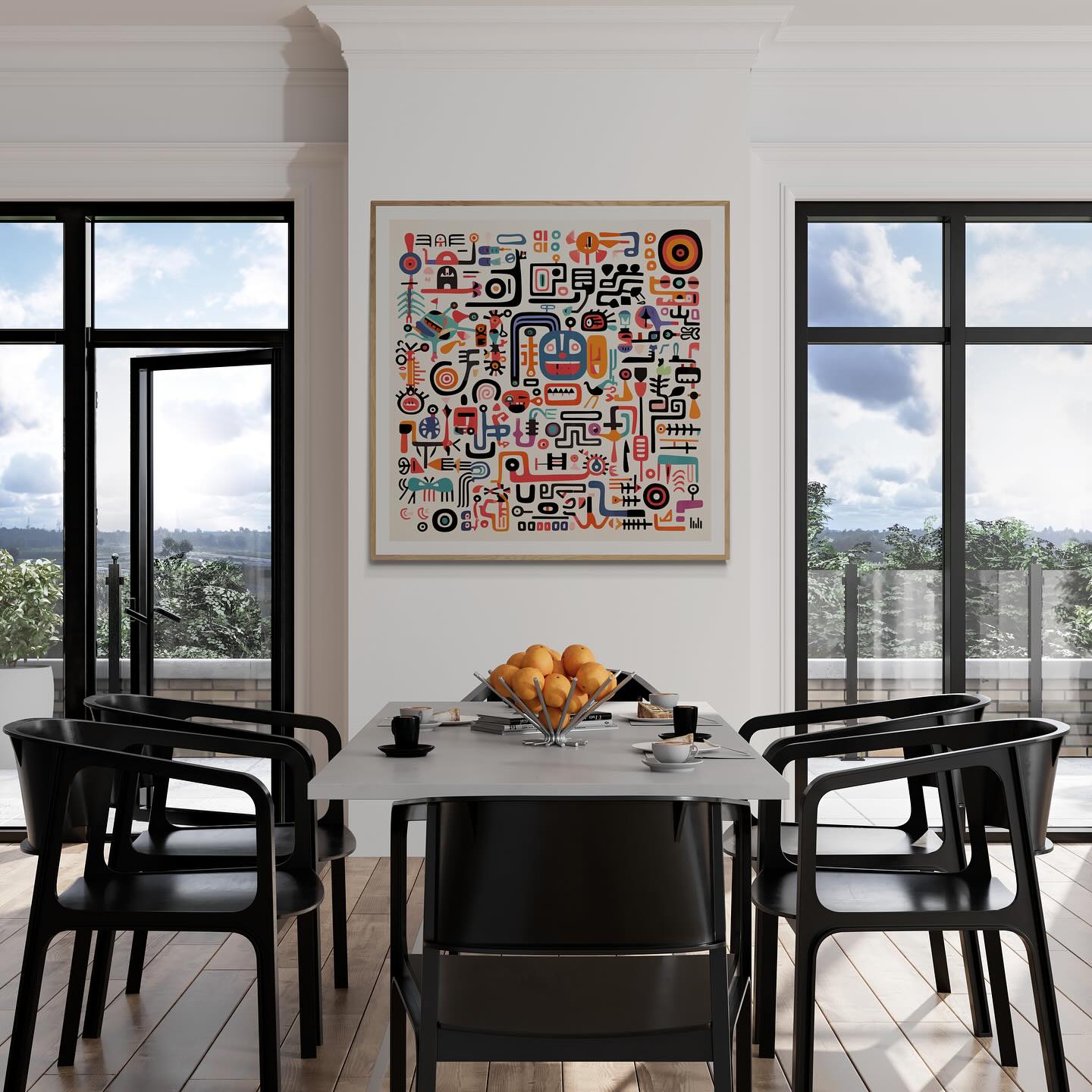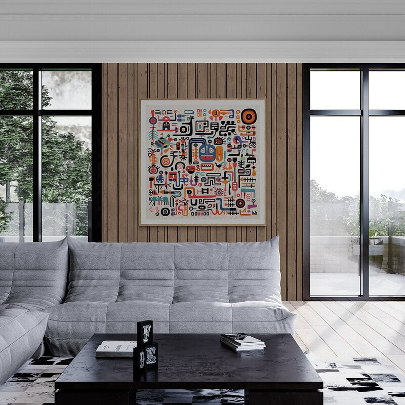Para obras enmarcadas, sugerimos quitar con cuidado el embalaje protector y colgarla con la ayuda de dos personas, usando clavos resistentes. En el caso de obras de gran tamaño, si es posible, utiliza tornillos y tacos de pared.