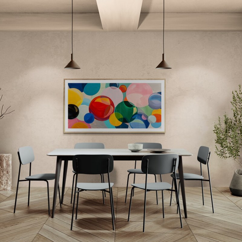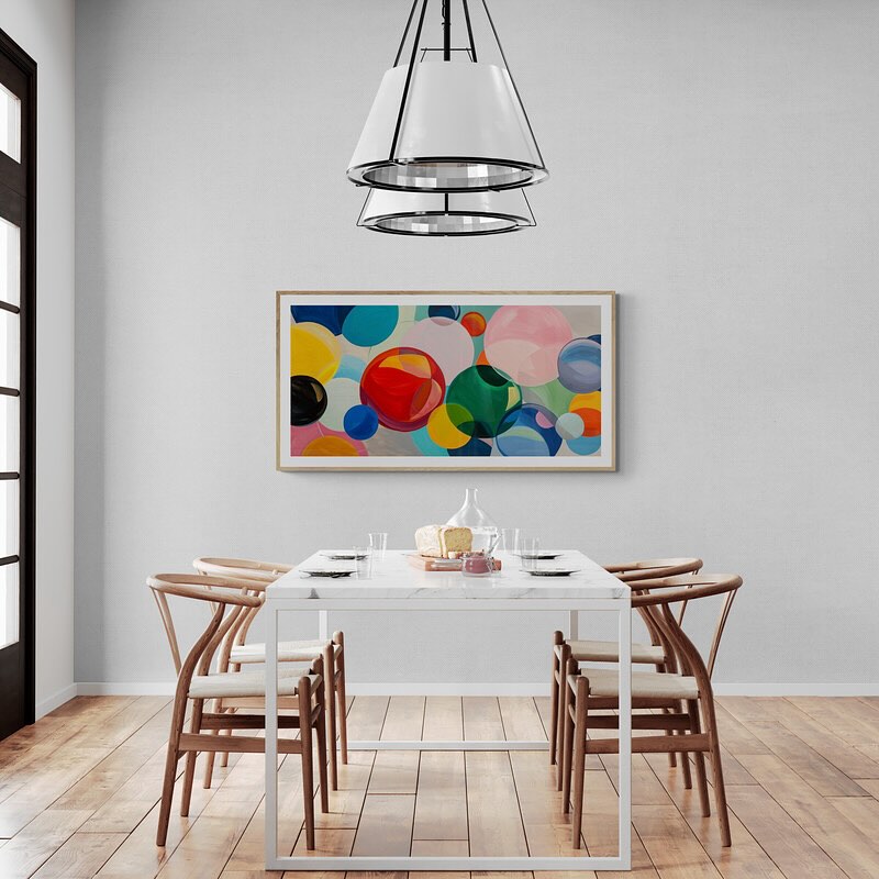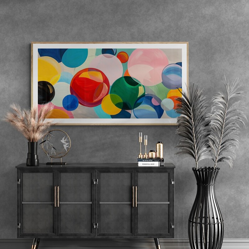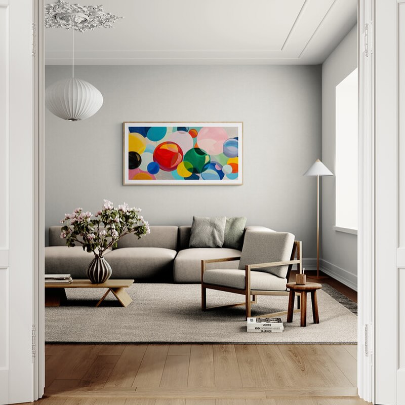 Para obras enmarcadas, sugerimos quitar con cuidado el embalaje protector y colgarla con la ayuda de dos personas, usando clavos resistentes. En el caso de obras de gran tamaño, si es posible, utiliza tornillos y tacos de pared.