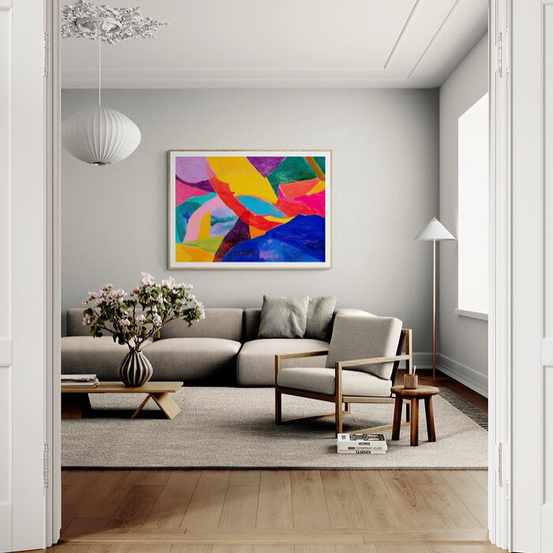 Para obras enmarcadas, sugerimos quitar con cuidado el embalaje protector y colgarla con la ayuda de dos personas, usando clavos resistentes. En el caso de obras de gran tamaño, si es posible, utiliza tornillos y tacos de pared.
