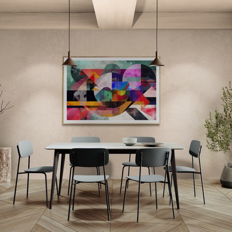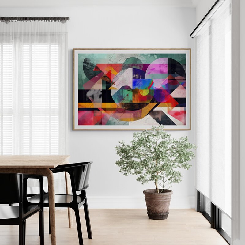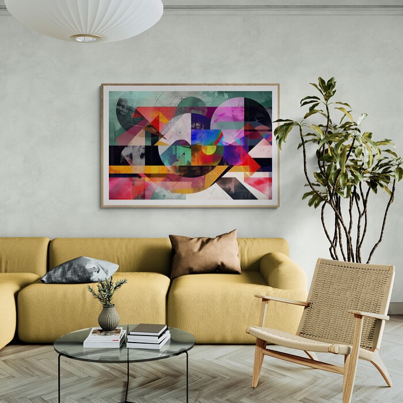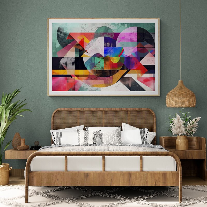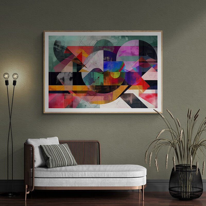Geometric patterns and vibrant colors, showcasing a diverse range of shapes and compositions. A harmonious blend of precision and creativity in interesting colors.