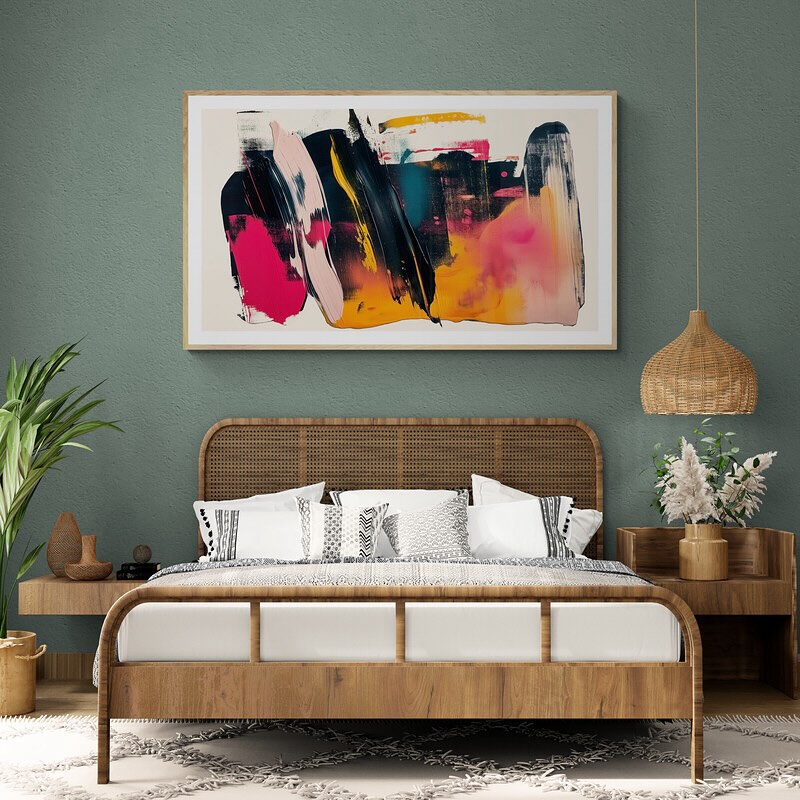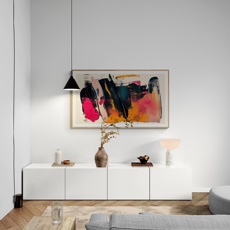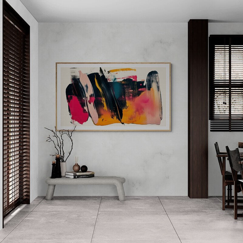 Para obras enmarcadas, sugerimos quitar con cuidado el embalaje protector y colgarla con la ayuda de dos personas, usando clavos resistentes. En el caso de obras de gran tamaño, si es posible, utiliza tornillos y tacos de pared.