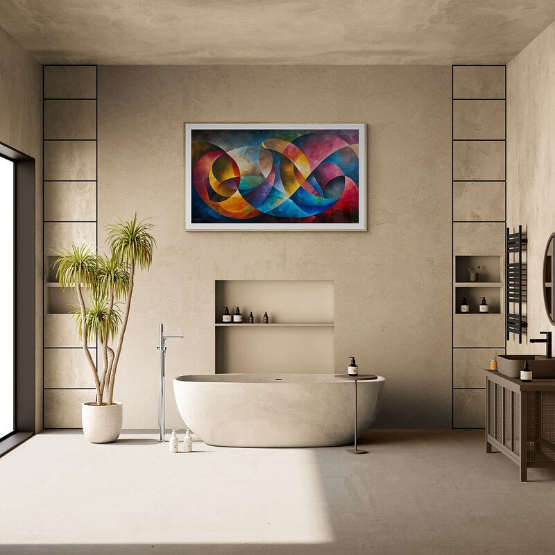Para obras enmarcadas, sugerimos quitar con cuidado el embalaje protector y colgarla con la ayuda de dos personas, usando clavos resistentes. En el caso de obras de gran tamaño, si es posible, utiliza tornillos y tacos de pared.