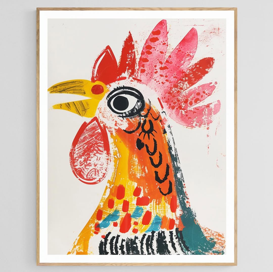 Cute Chinese chicken, head close-up multi color illustration, white background.