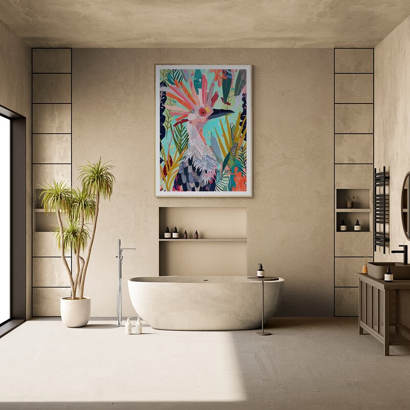 Para obras enmarcadas, sugerimos quitar con cuidado el embalaje protector y colgarla con la ayuda de dos personas, usando clavos resistentes. En el caso de obras de gran tamaño, si es posible, utiliza tornillos y tacos de pared.