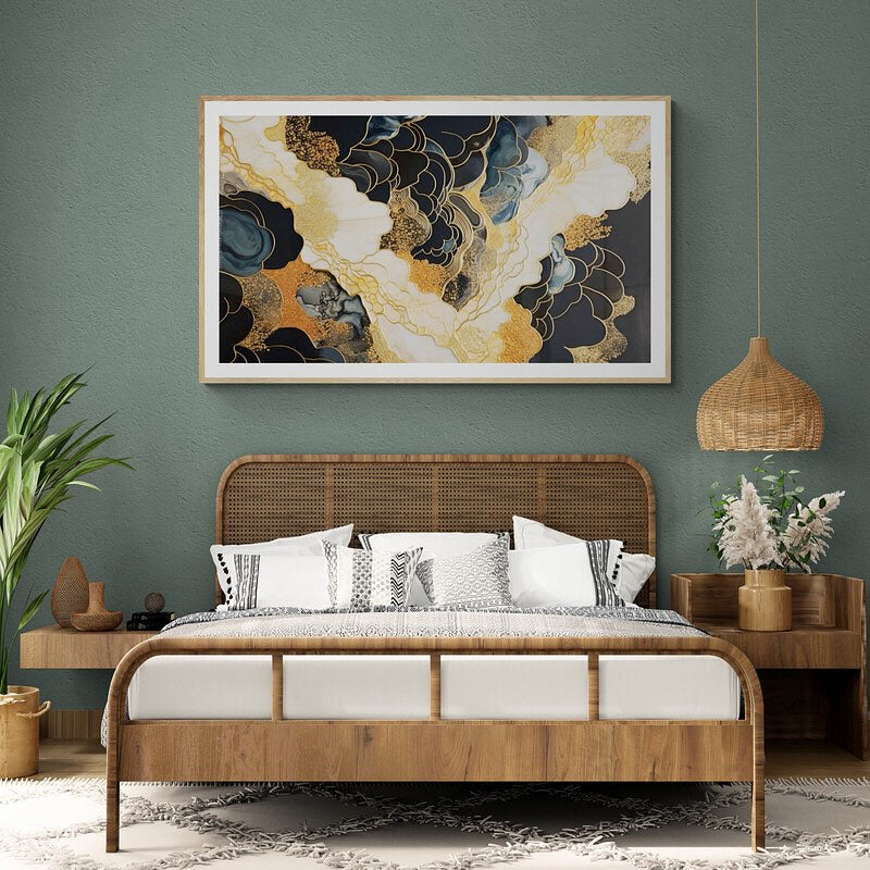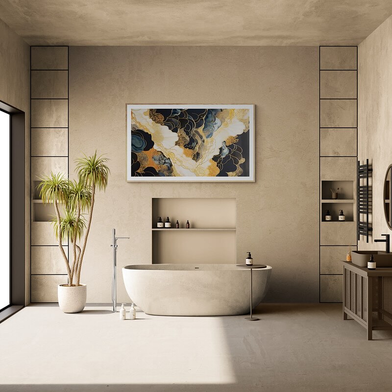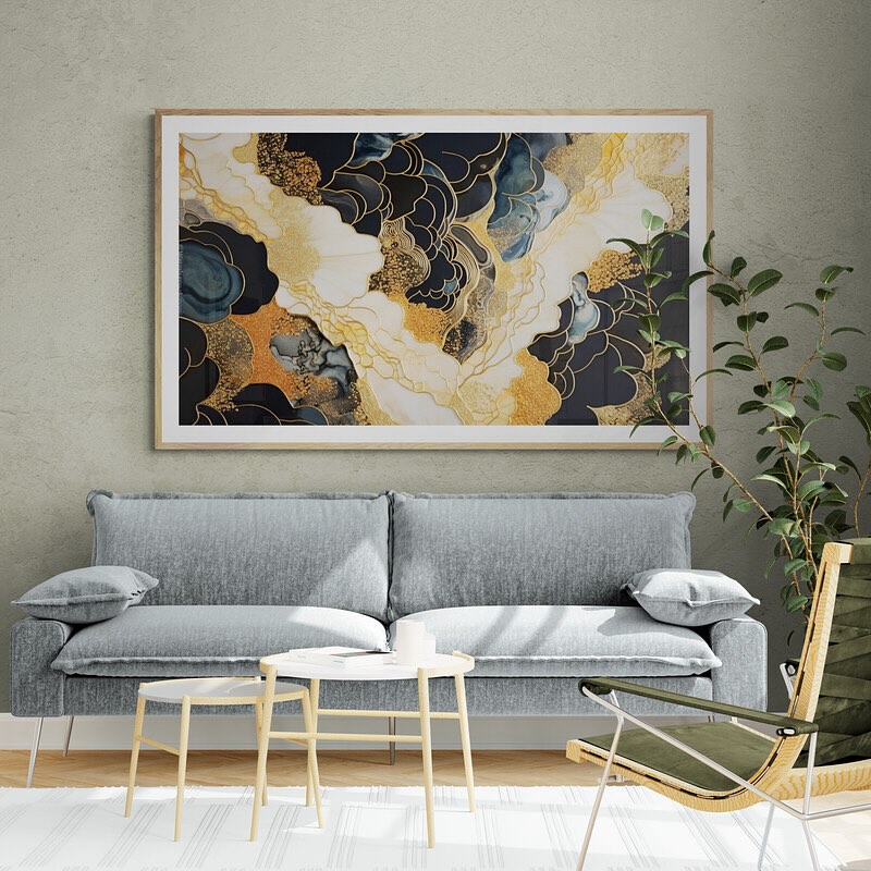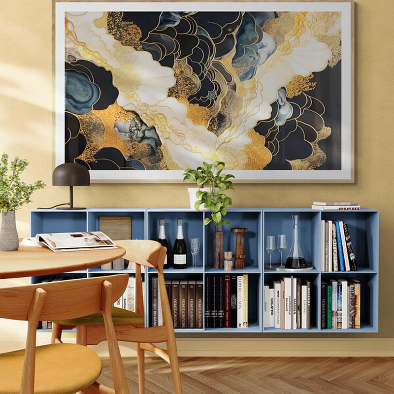 Para obras enmarcadas, sugerimos quitar con cuidado el embalaje protector y colgarla con la ayuda de dos personas, usando clavos resistentes. En el caso de obras de gran tamaño, si es posible, utiliza tornillos y tacos de pared.