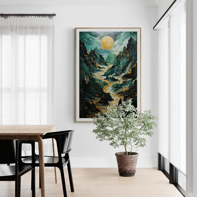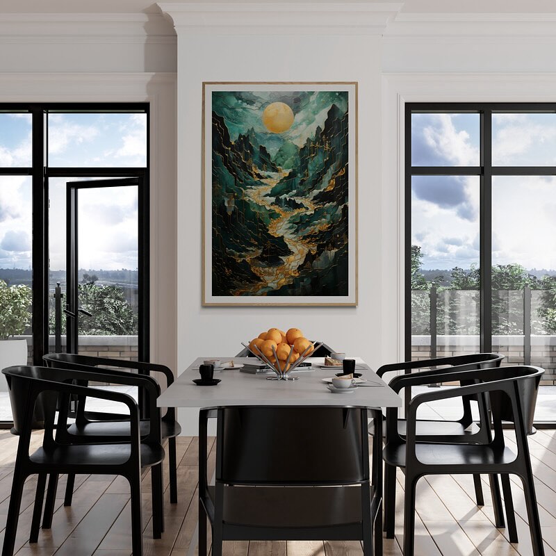 Para obras enmarcadas, sugerimos quitar con cuidado el embalaje protector y colgarla con la ayuda de dos personas, usando clavos resistentes. En el caso de obras de gran tamaño, si es posible, utiliza tornillos y tacos de pared.