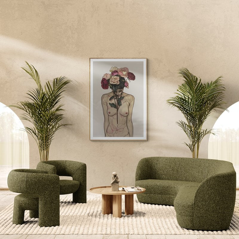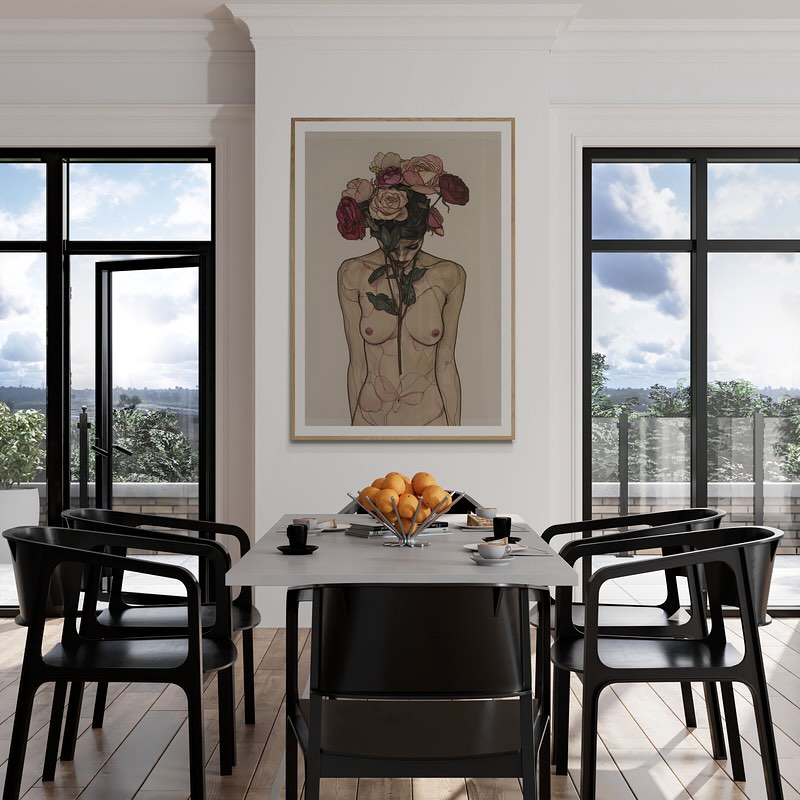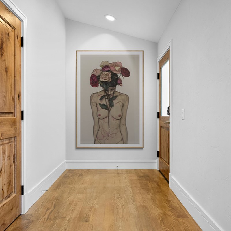 Para obras enmarcadas, sugerimos quitar con cuidado el embalaje protector y colgarla con la ayuda de dos personas, usando clavos resistentes. En el caso de obras de gran tamaño, si es posible, utiliza tornillos y tacos de pared.