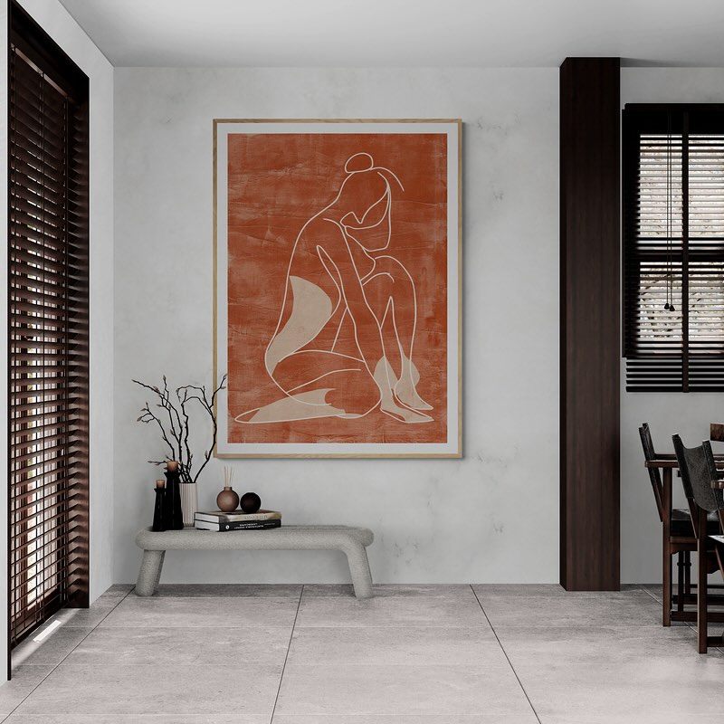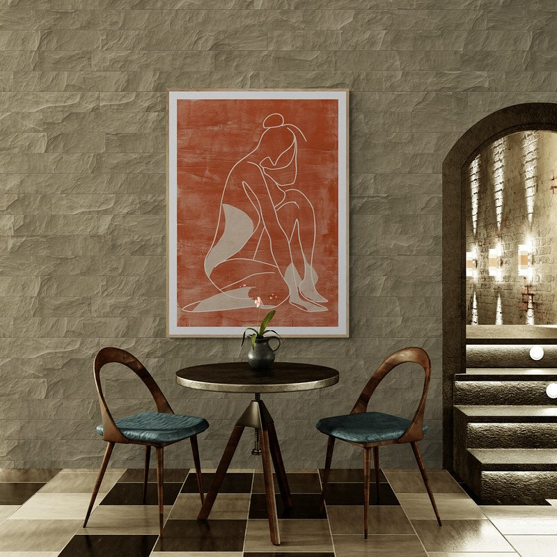 Para obras enmarcadas, sugerimos quitar con cuidado el embalaje protector y colgarla con la ayuda de dos personas, usando clavos resistentes. En el caso de obras de gran tamaño, si es posible, utiliza tornillos y tacos de pared.