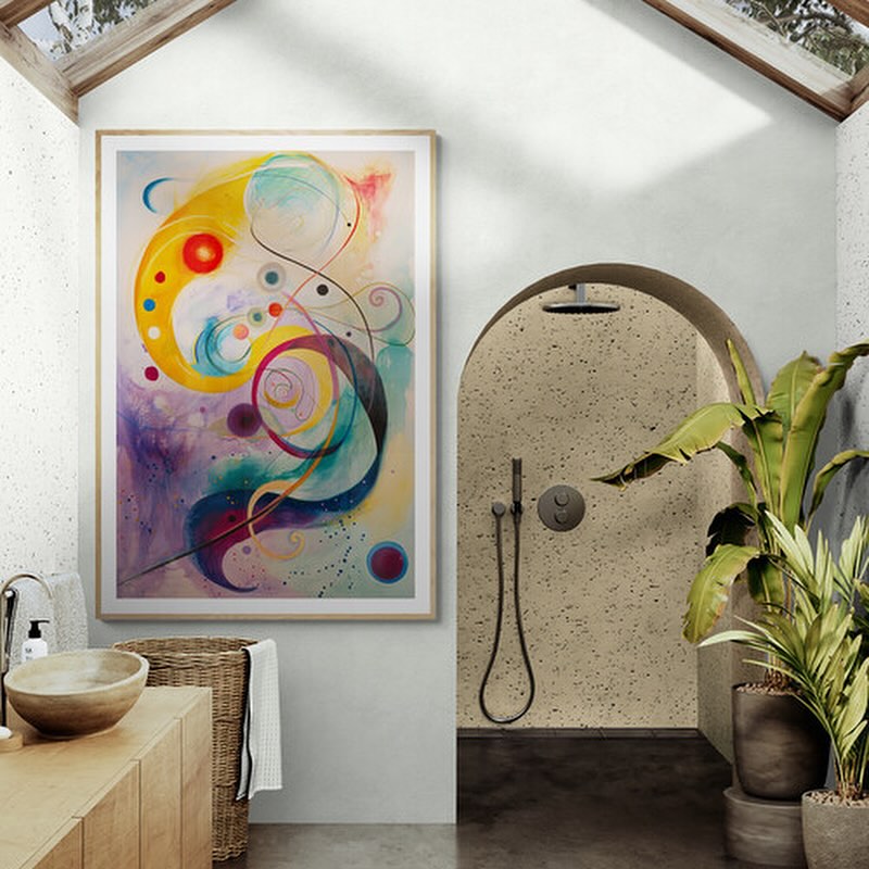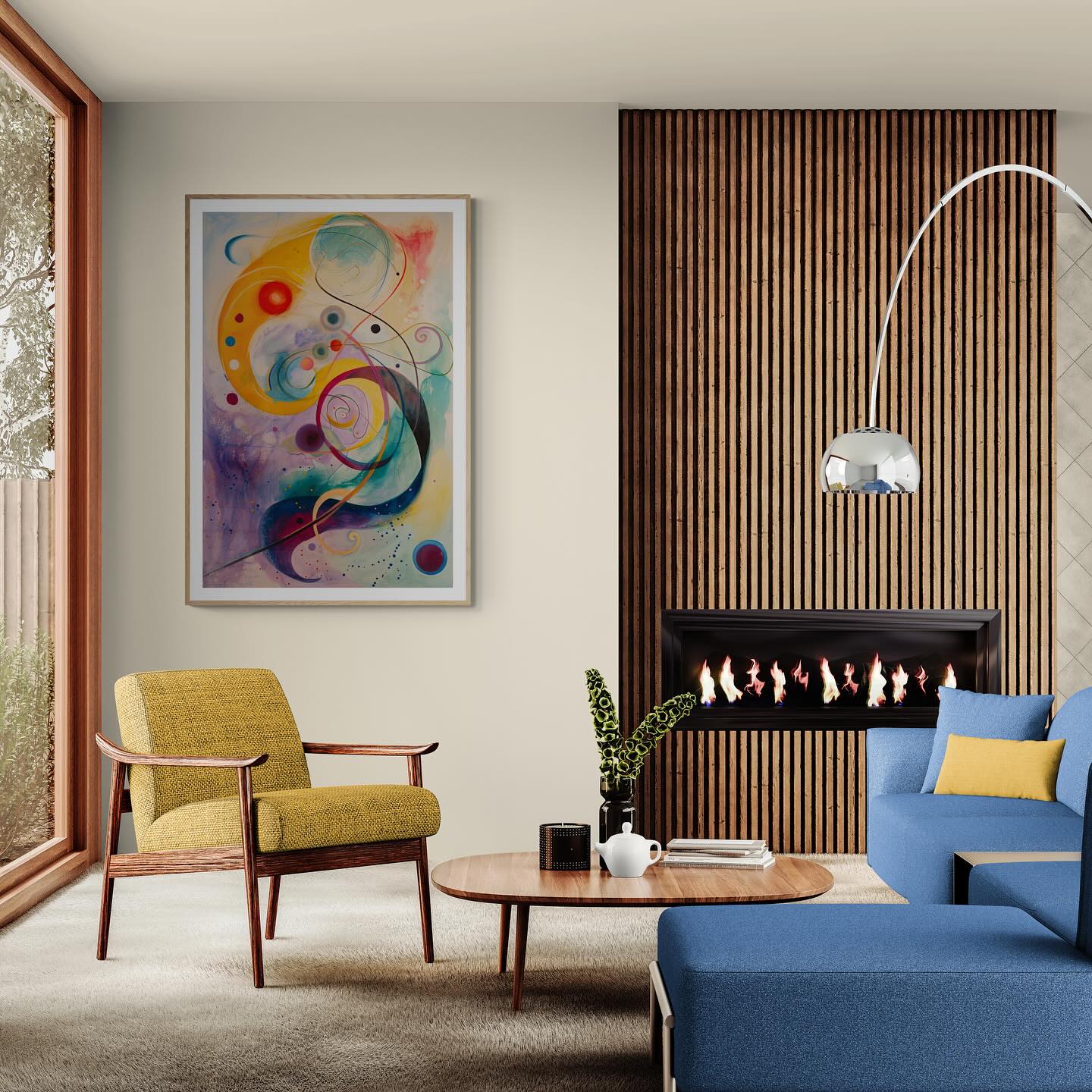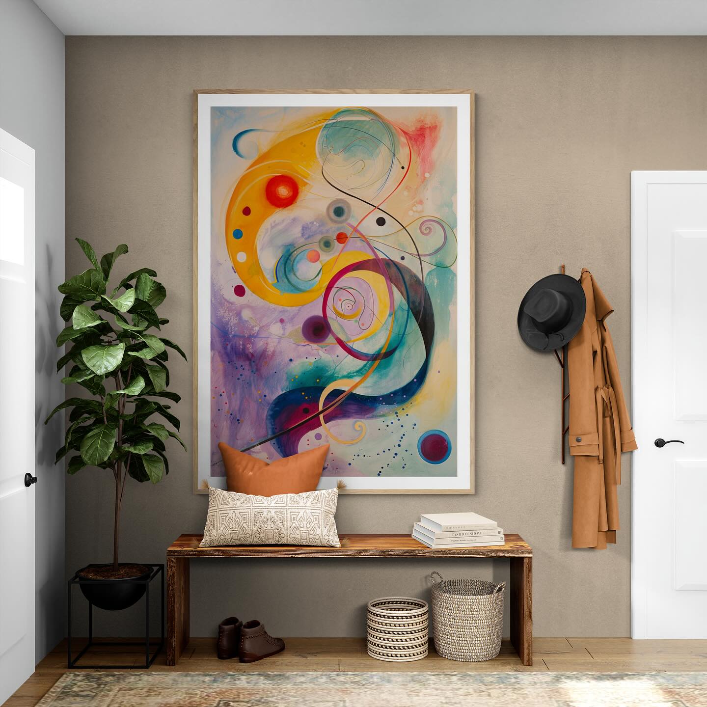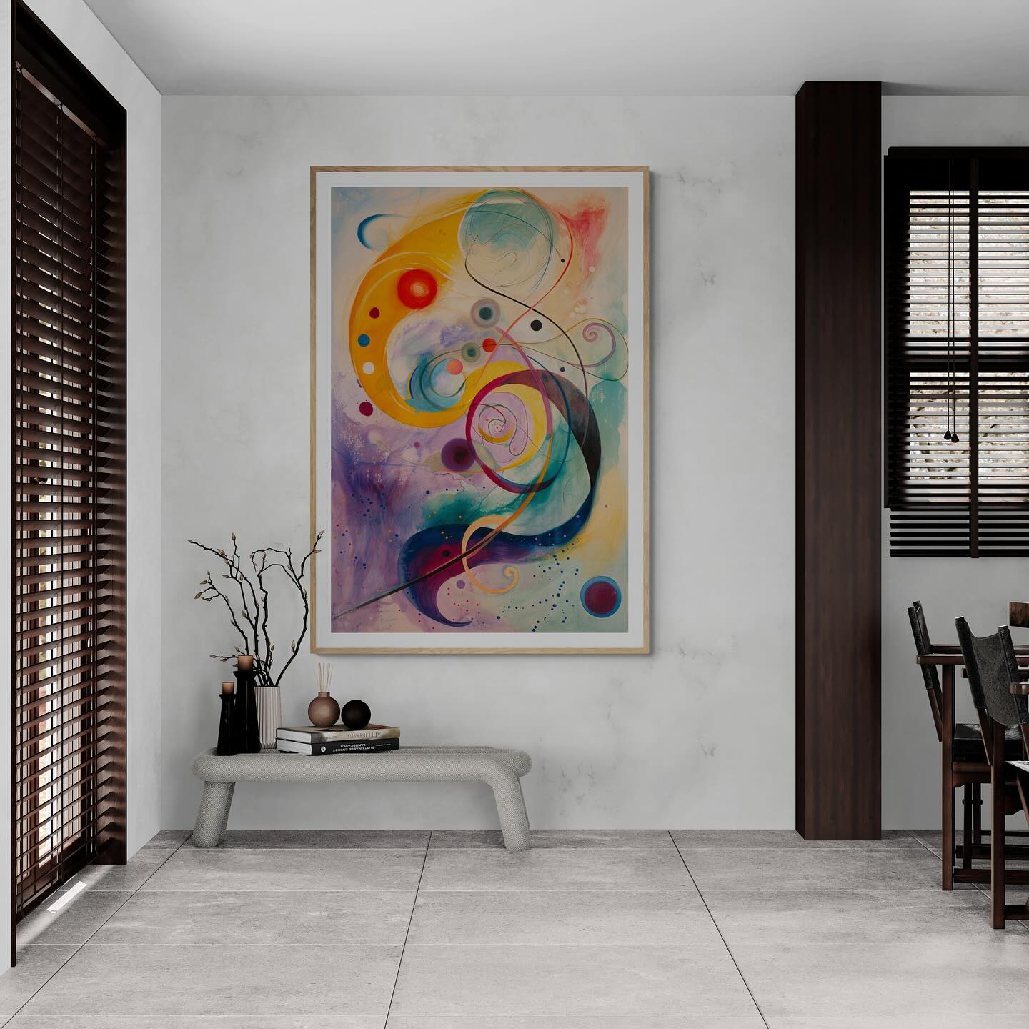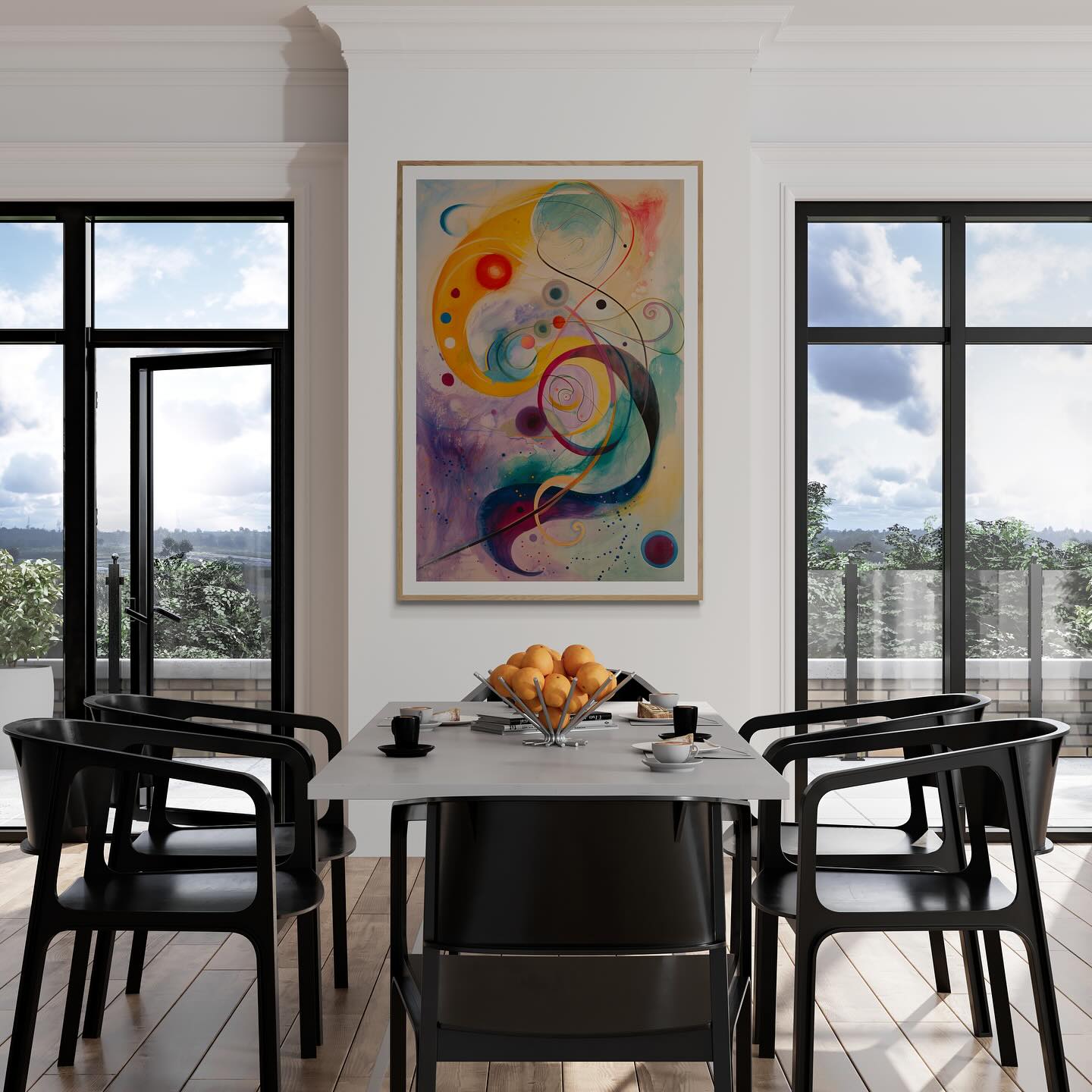 Synesthetic energy of Wassily Kandinsky, where abstract shapes and colors perform a visual symphony.