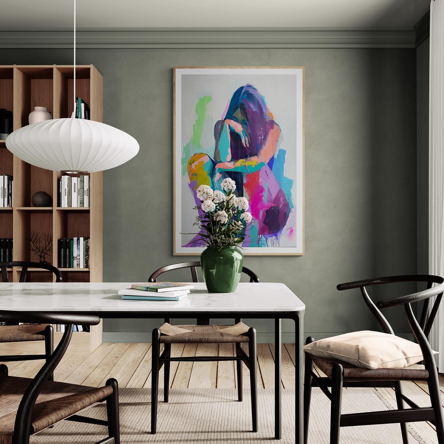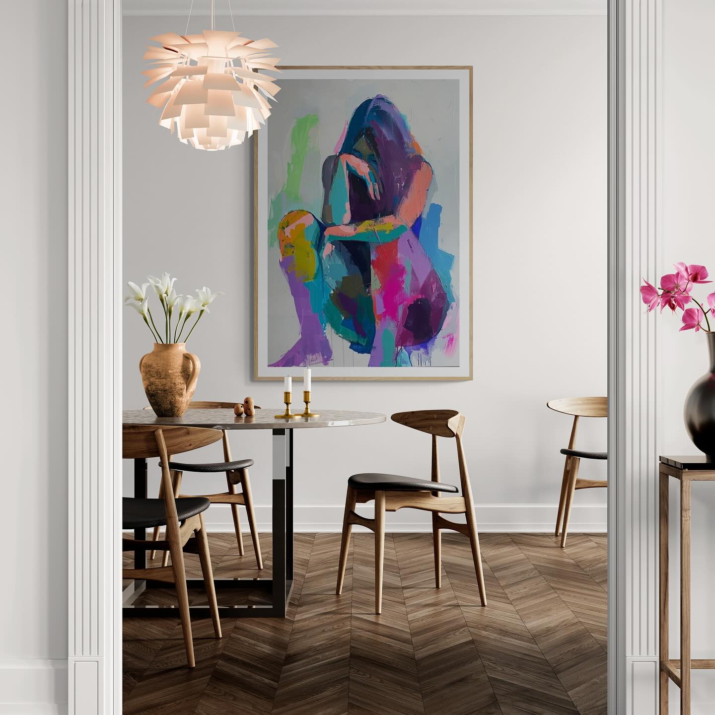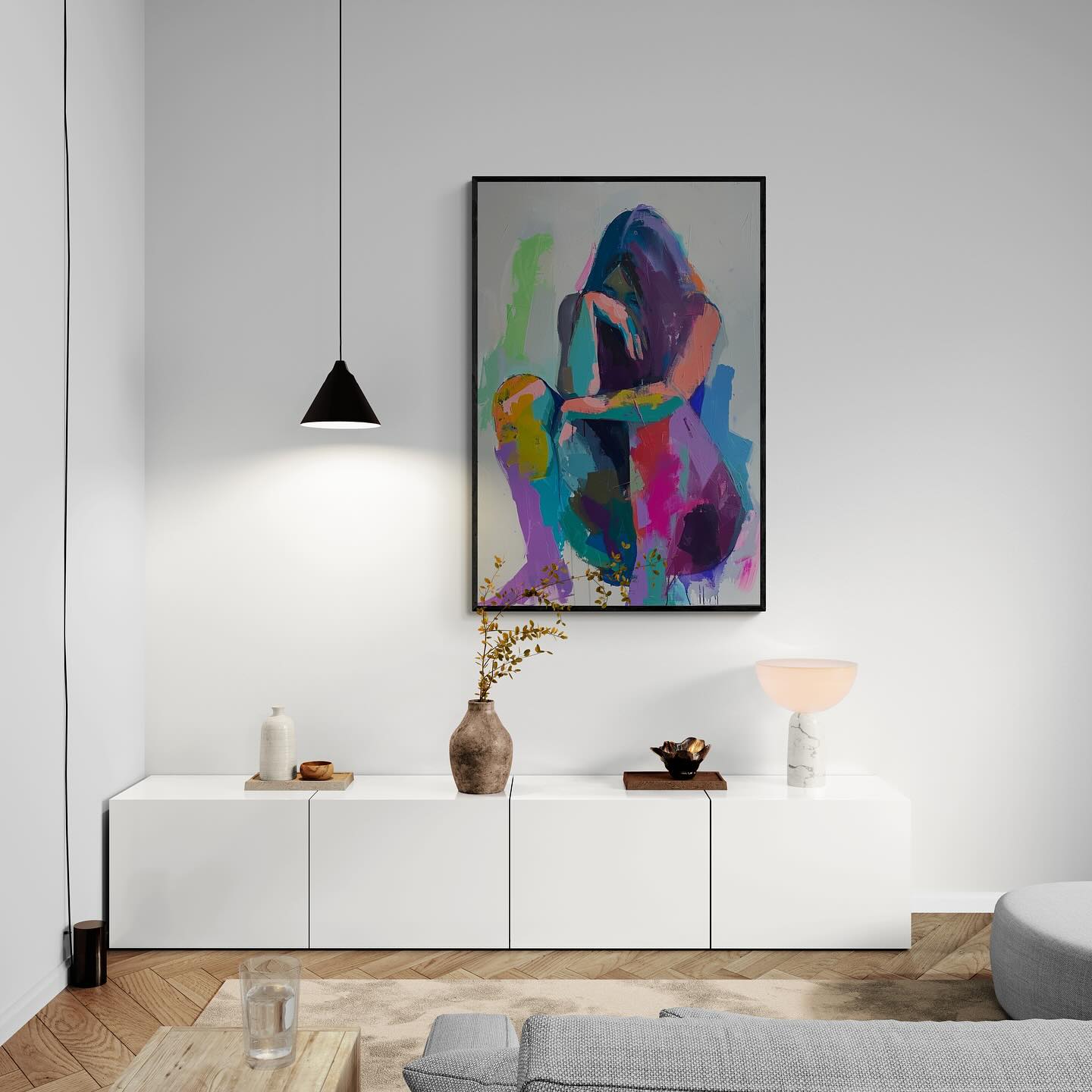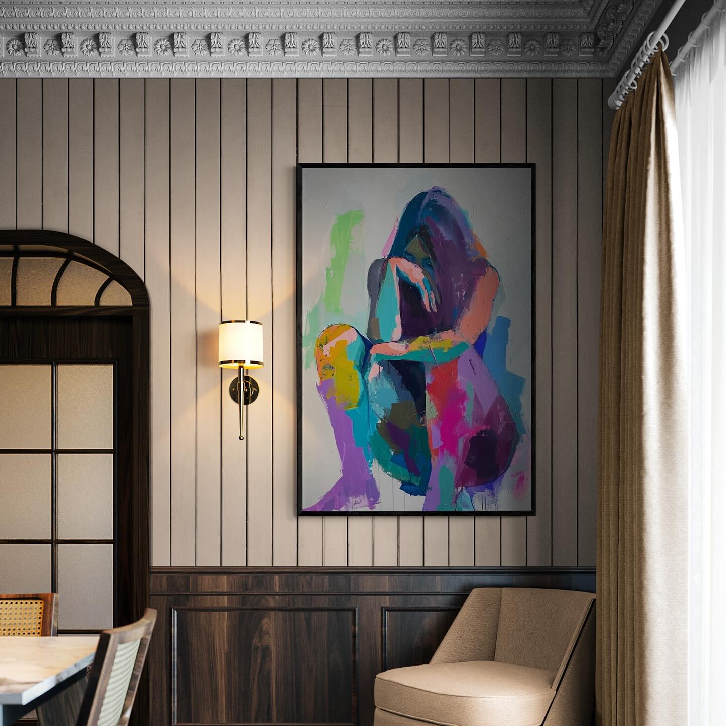 Para obras enmarcadas, sugerimos quitar con cuidado el embalaje protector y colgarla con la ayuda de dos personas, usando clavos resistentes. En el caso de obras de gran tamaño, si es posible, utiliza tornillos y tacos de pared.