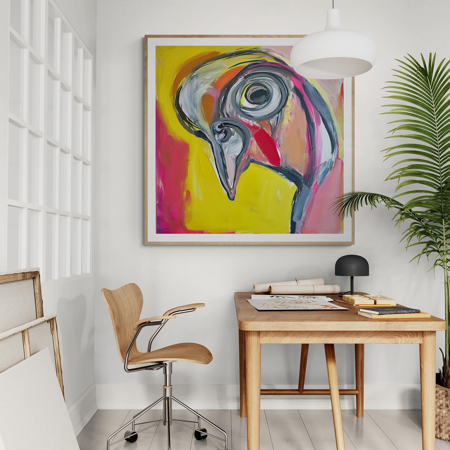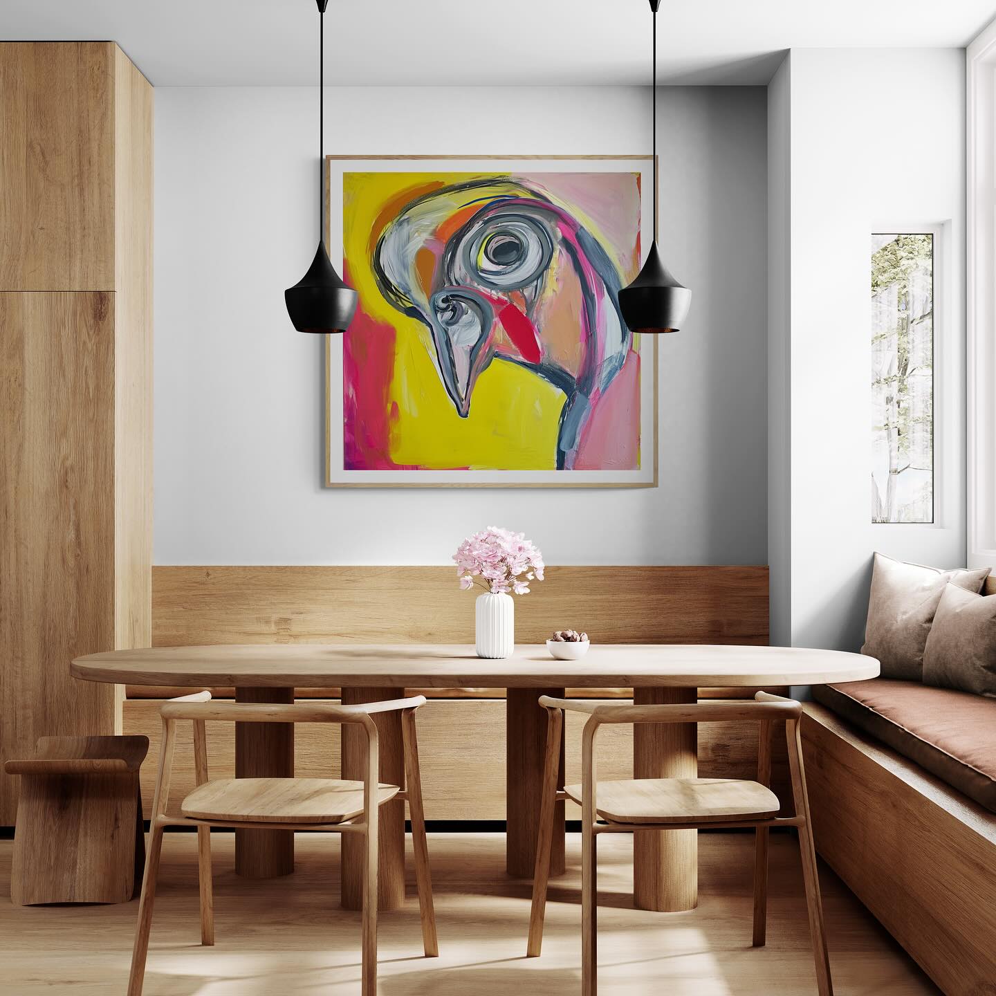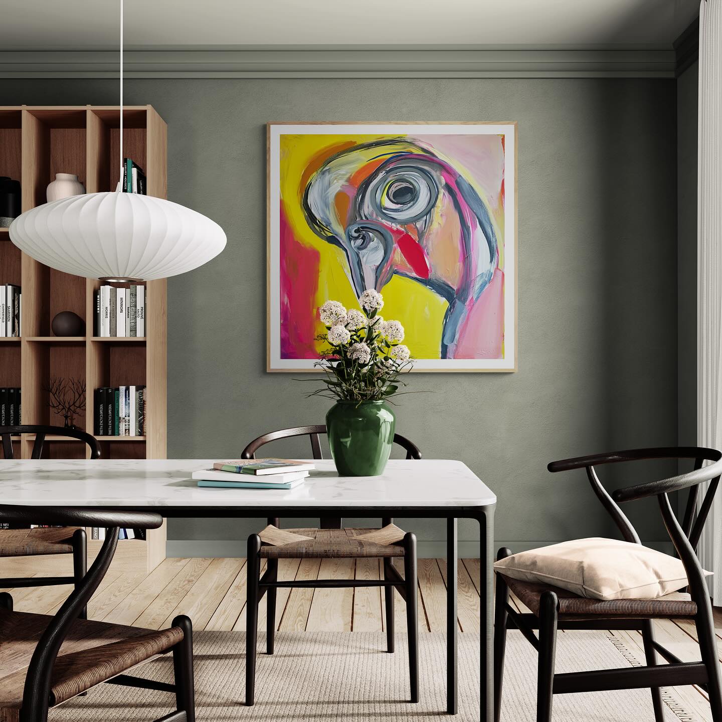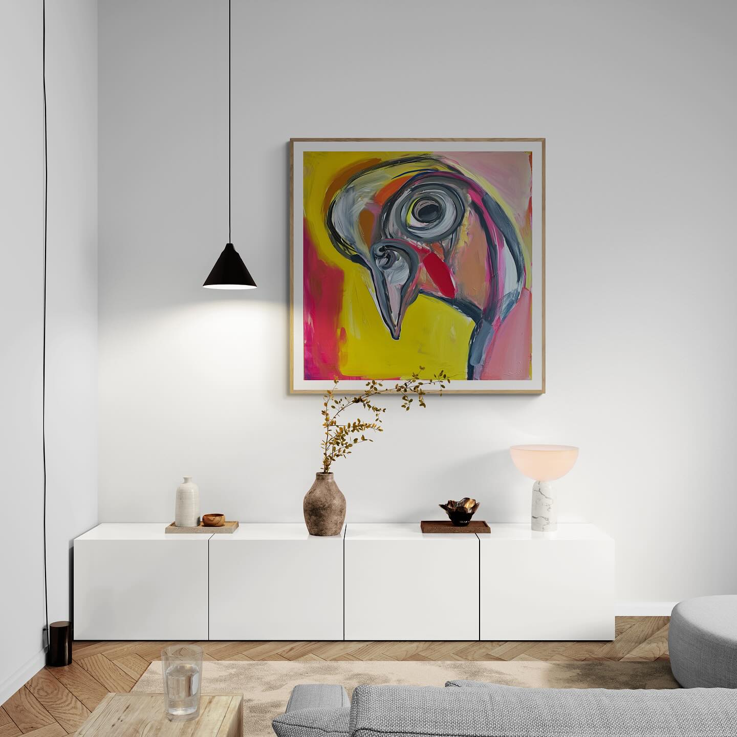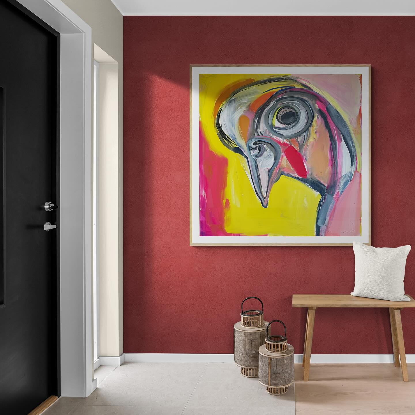 Para obras enmarcadas, sugerimos quitar con cuidado el embalaje protector y colgarla con la ayuda de dos personas, usando clavos resistentes. En el caso de obras de gran tamaño, si es posible, utiliza tornillos y tacos de pared.