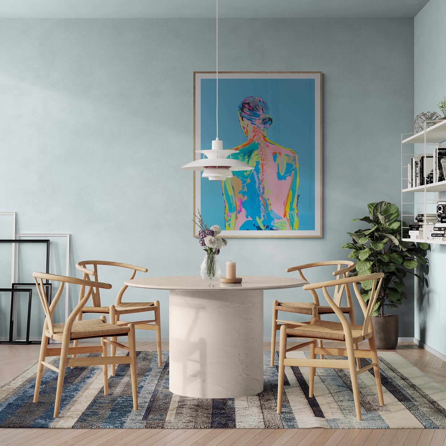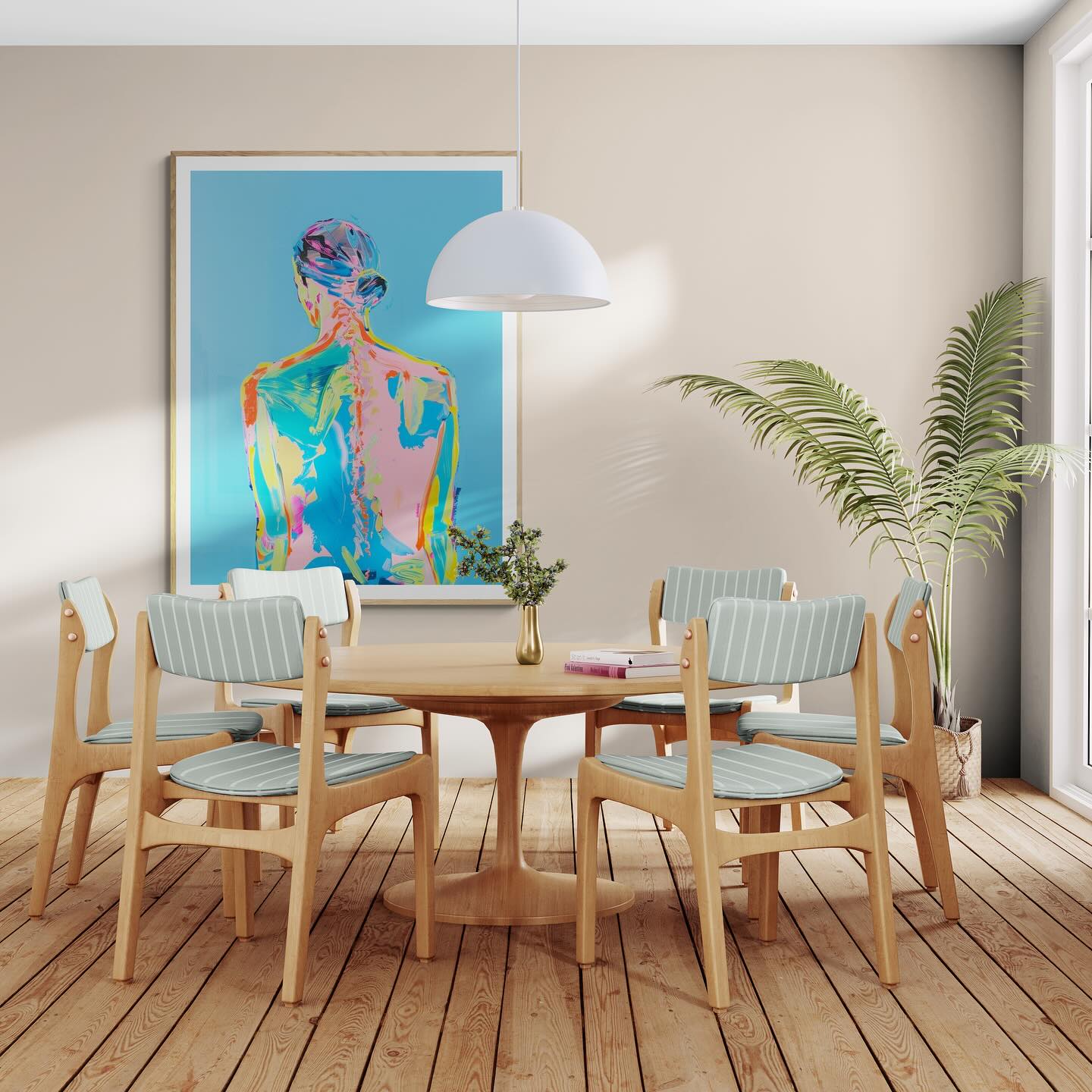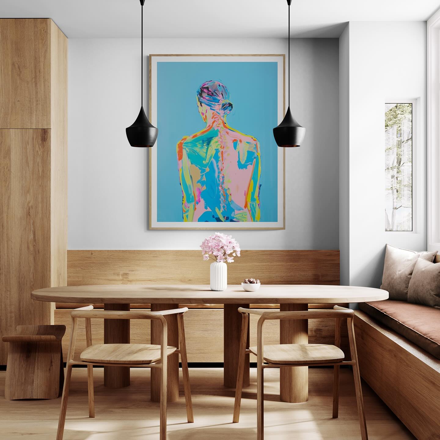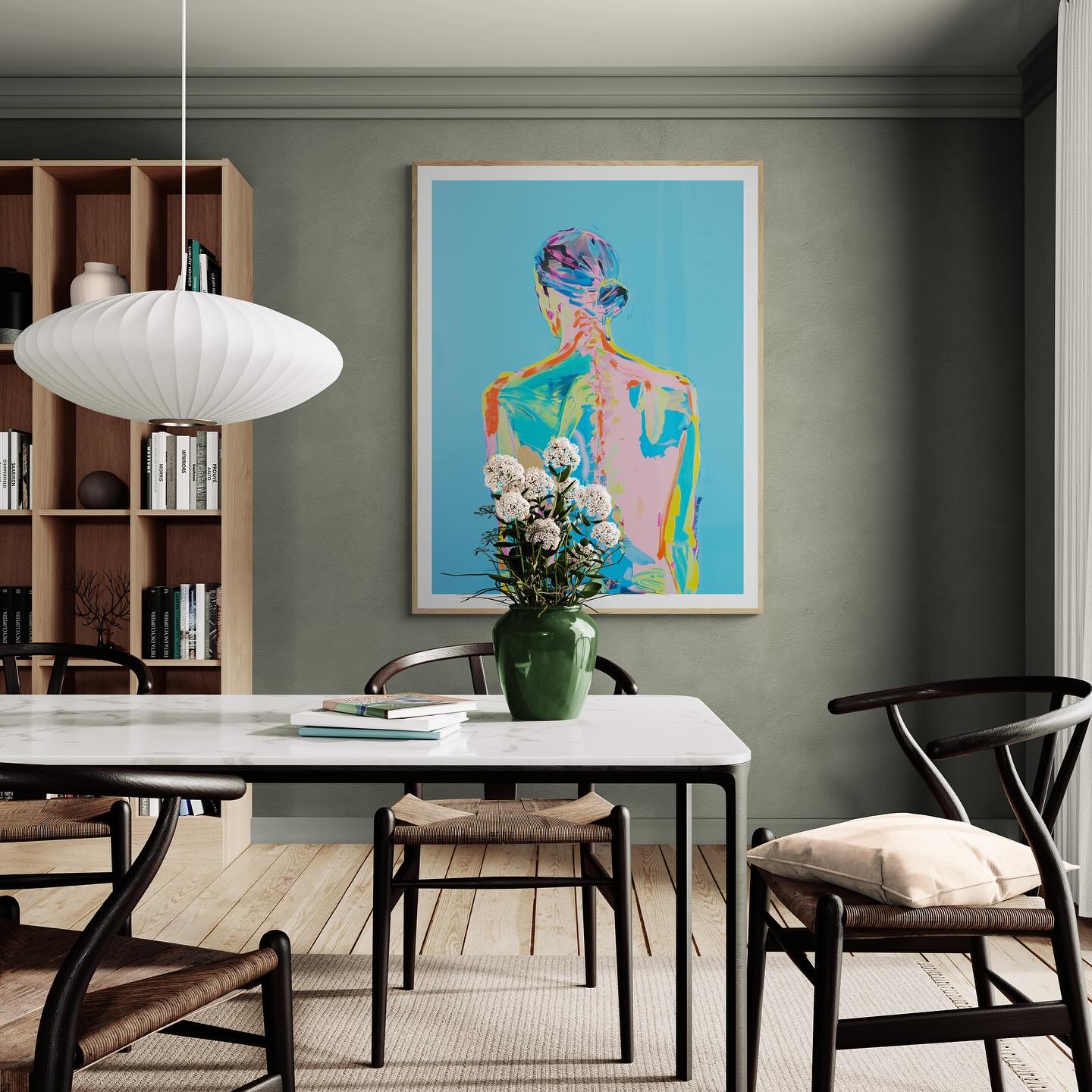 Para obras enmarcadas, sugerimos quitar con cuidado el embalaje protector y colgarla con la ayuda de dos personas, usando clavos resistentes. En el caso de obras de gran tamaño, si es posible, utiliza tornillos y tacos de pared.