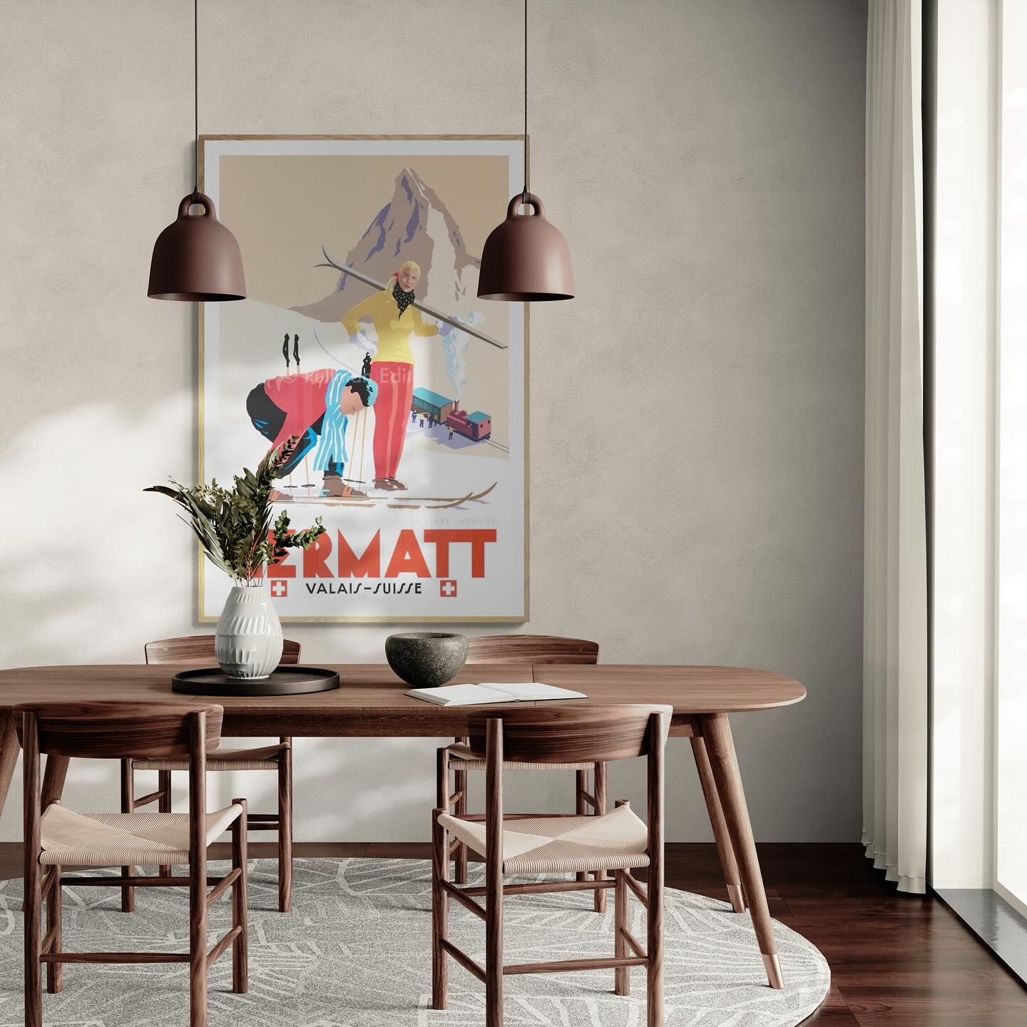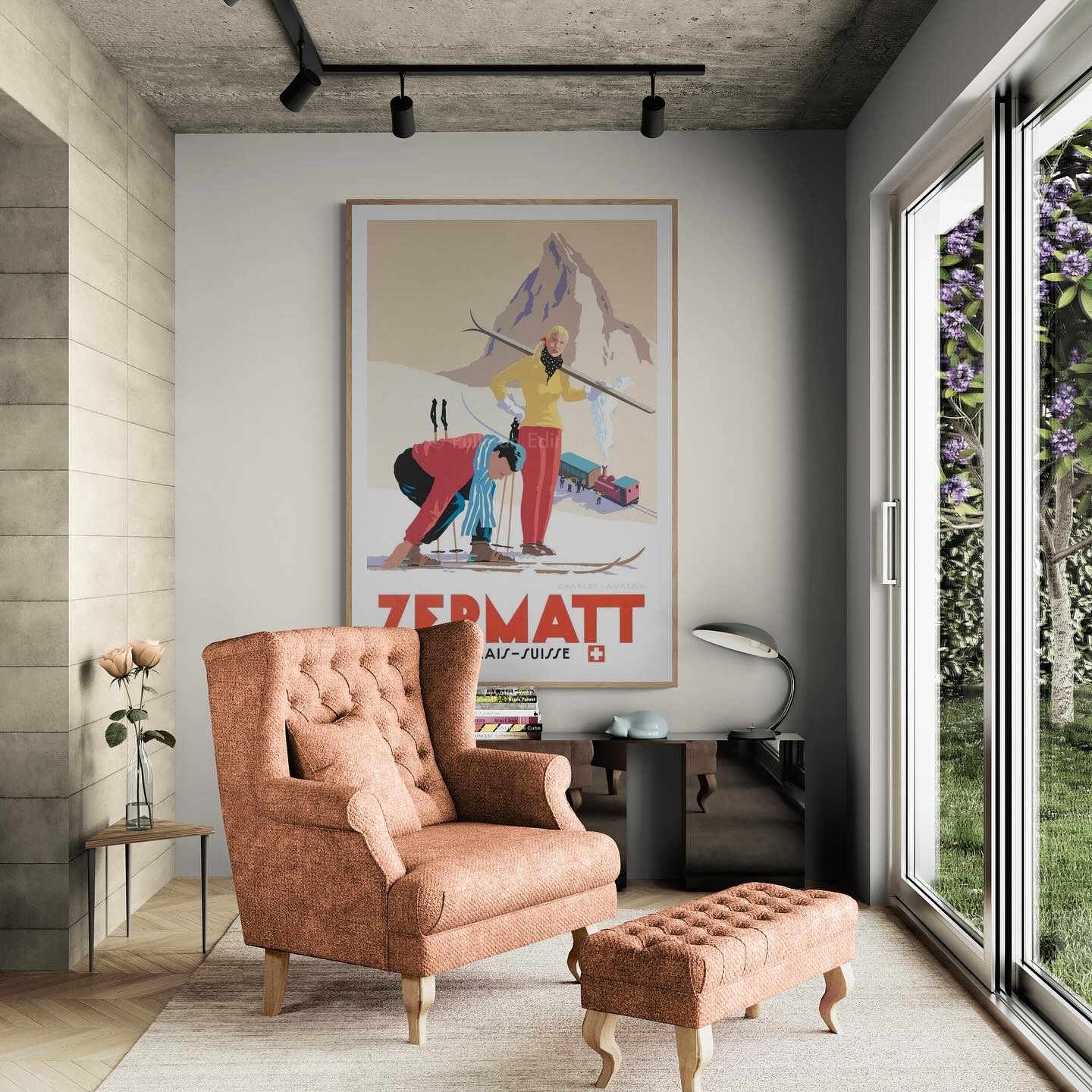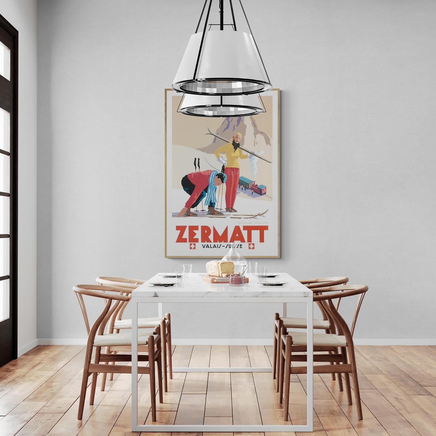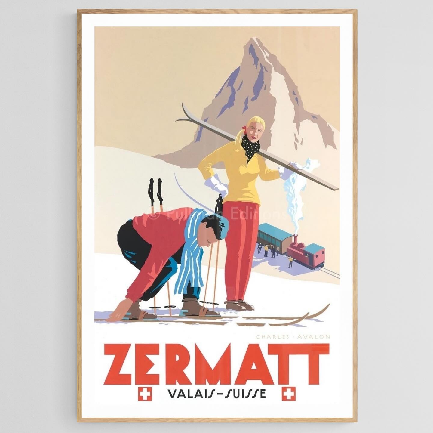Zermatt vintage skiing póster