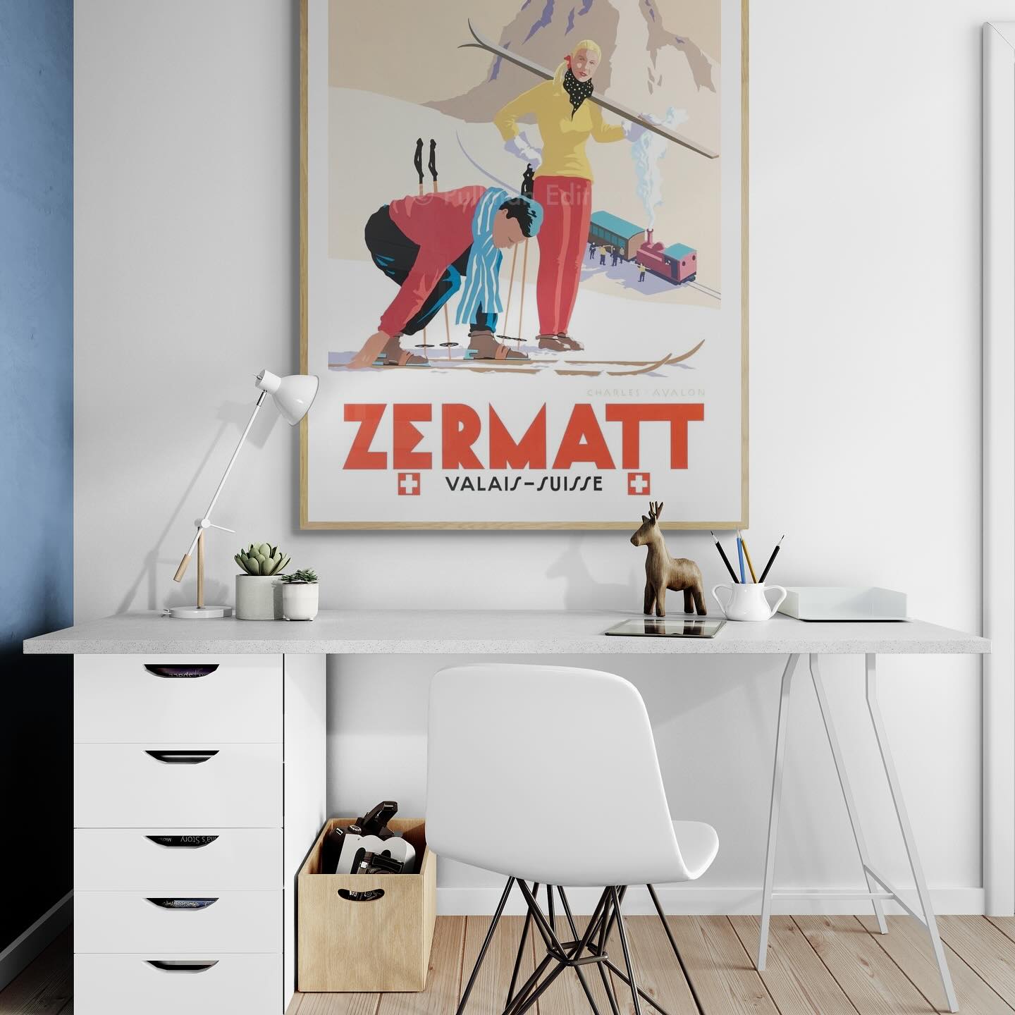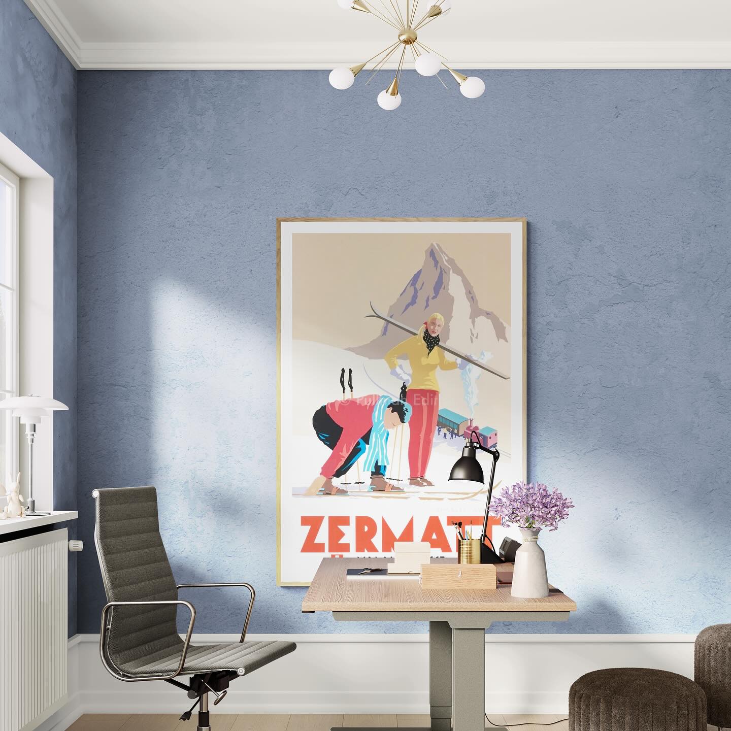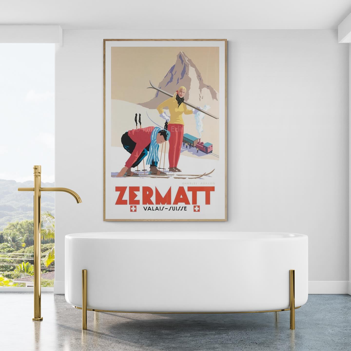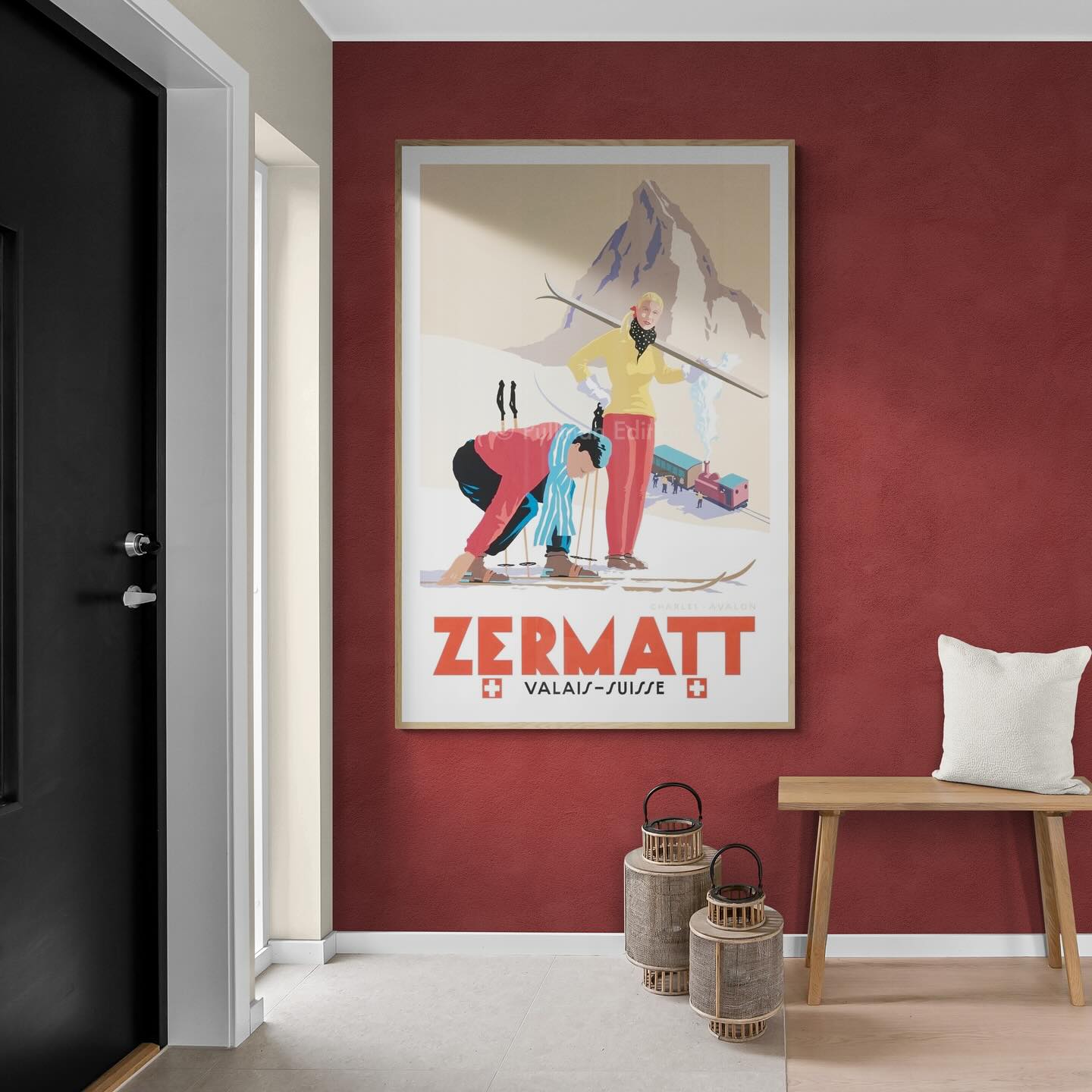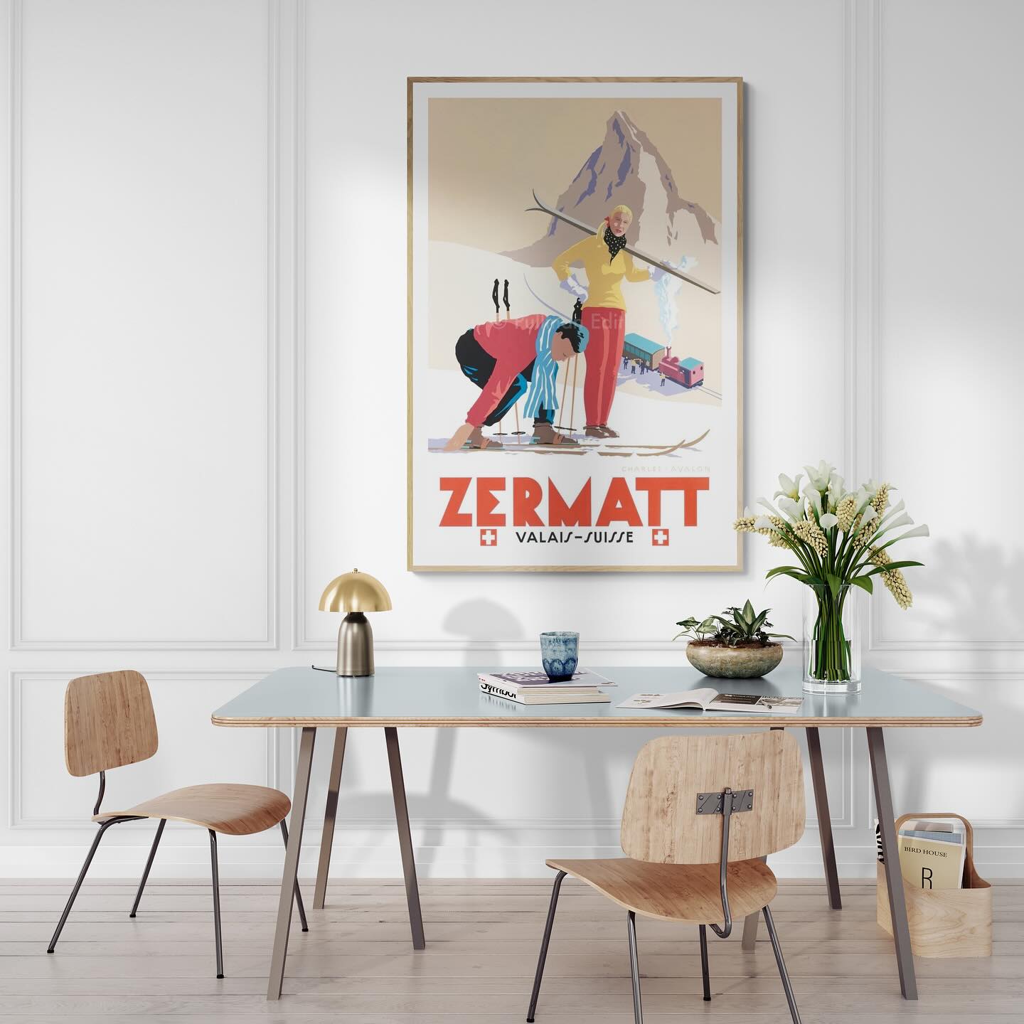 Zermatt vintage skiing póster