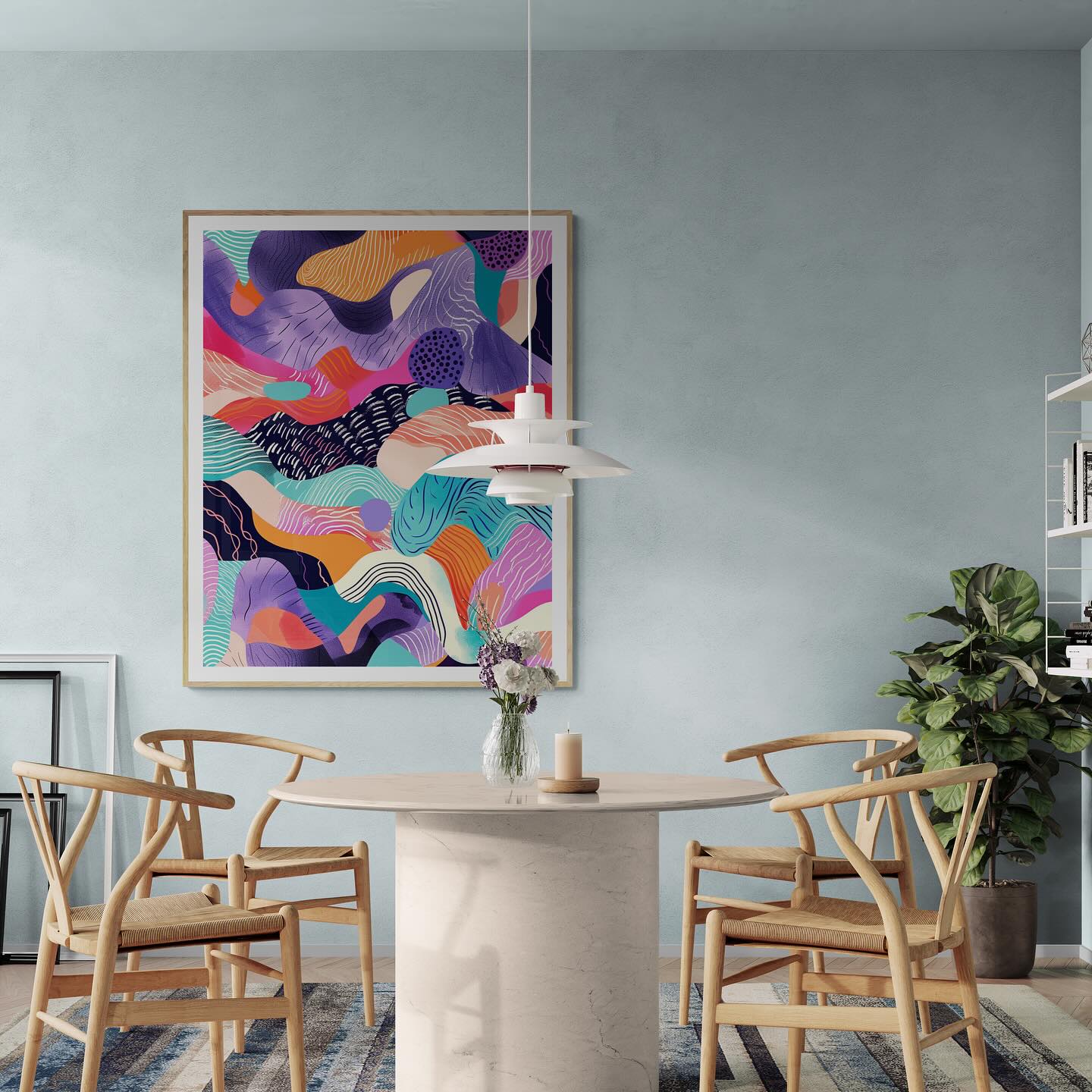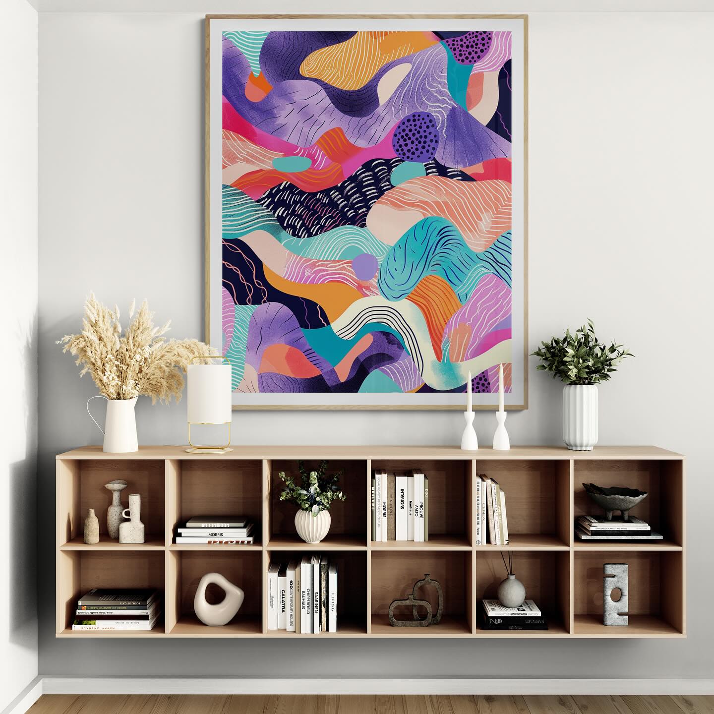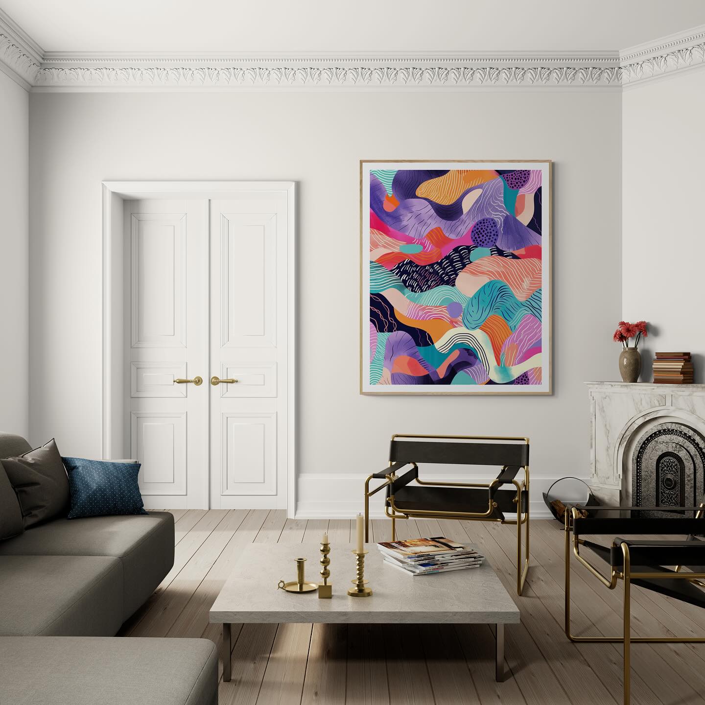 Para obras enmarcadas, sugerimos quitar con cuidado el embalaje protector y colgarla con la ayuda de dos personas, usando clavos resistentes. En el caso de obras de gran tamaño, si es posible, utiliza tornillos y tacos de pared.