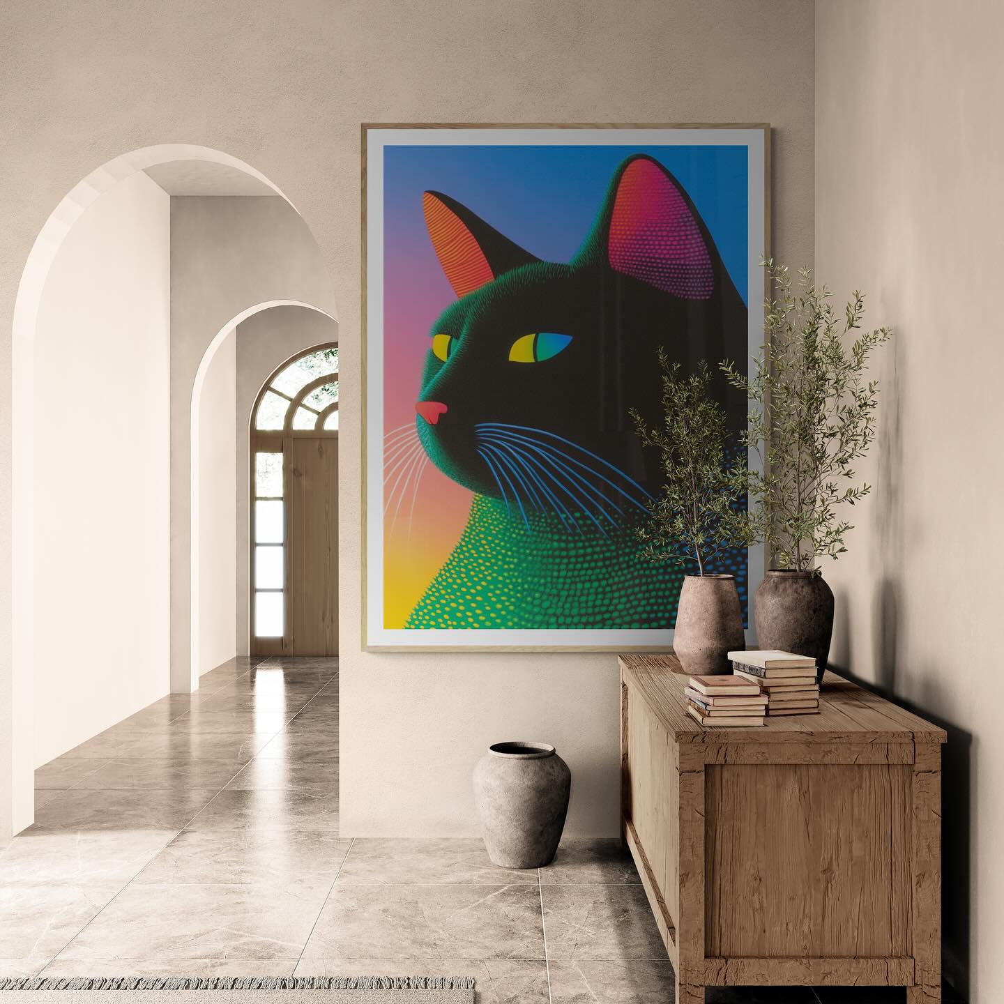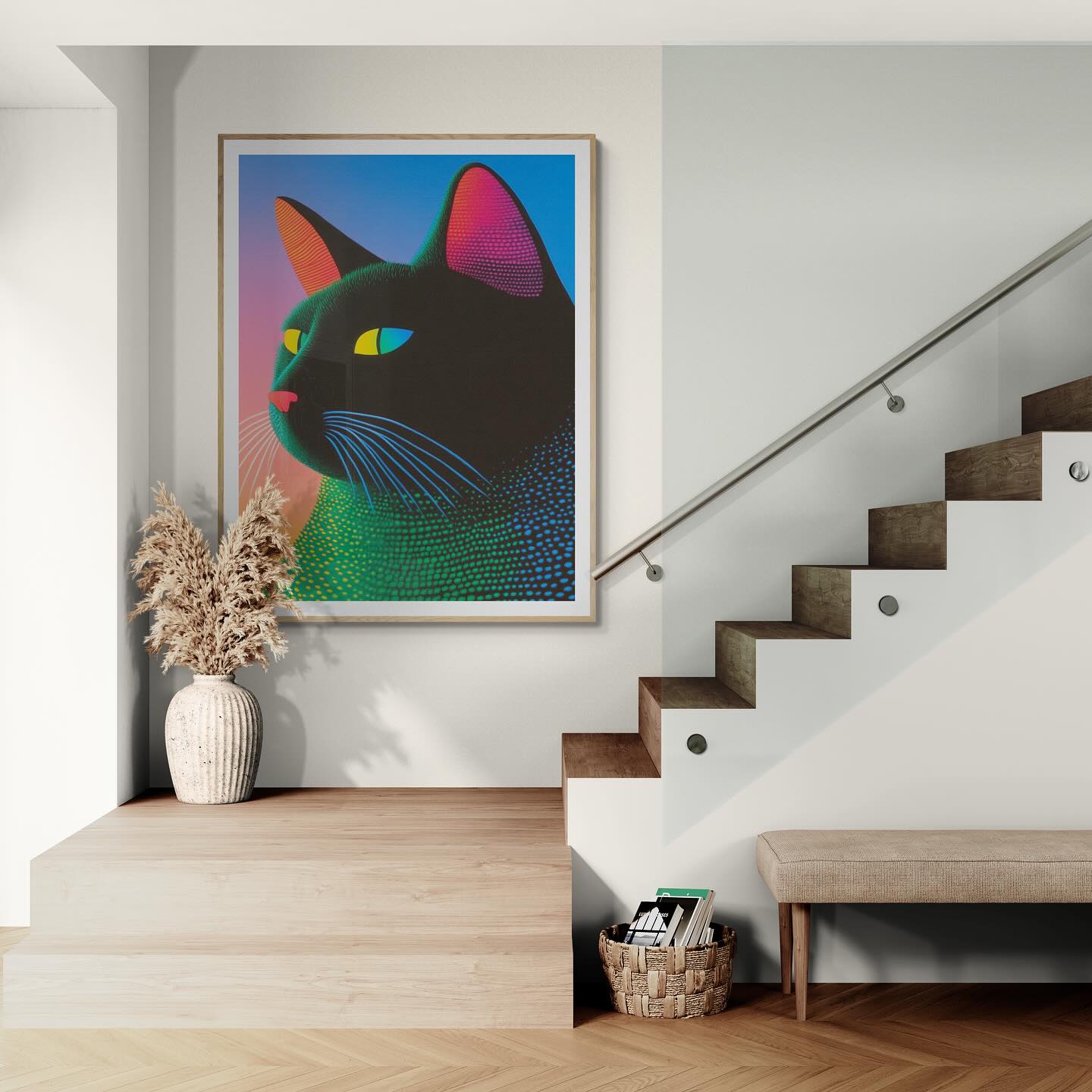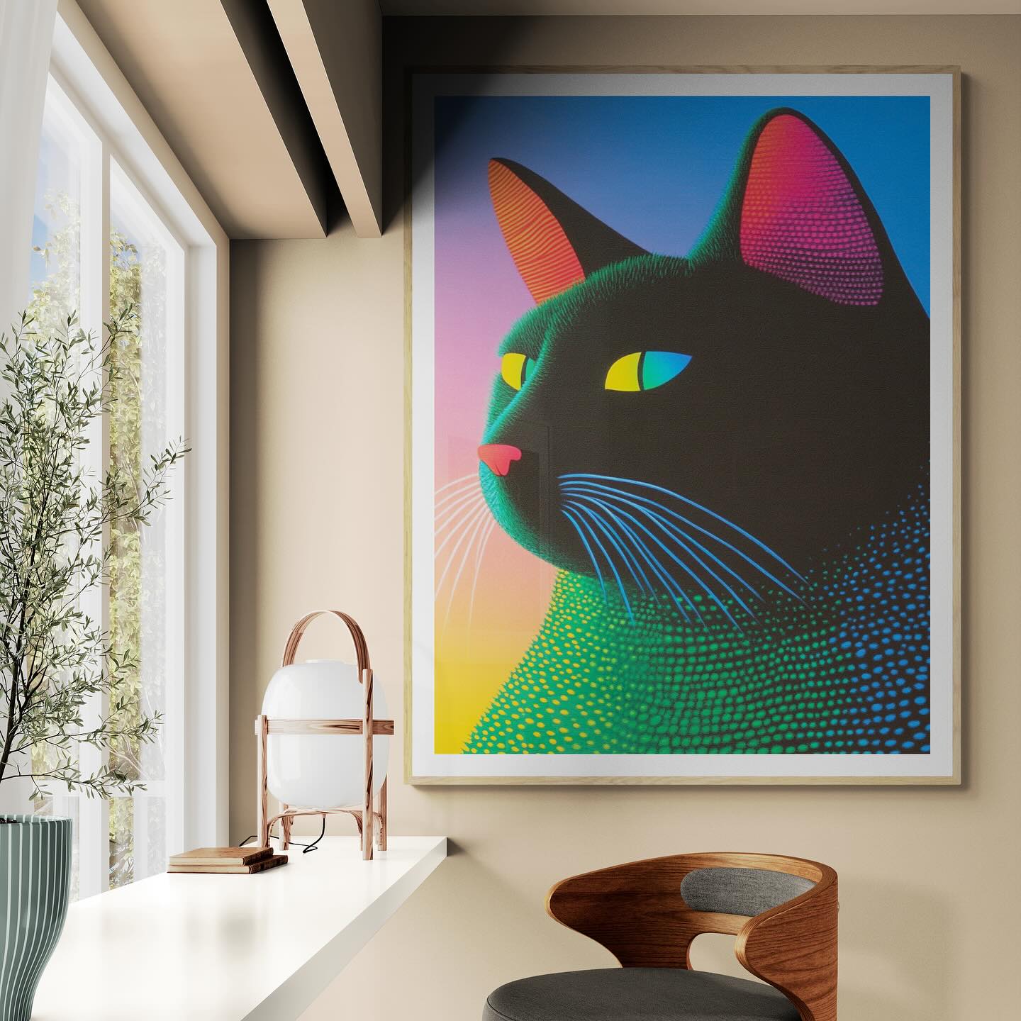 A black and white cat, surreal illustration, furry texture, soft and bright