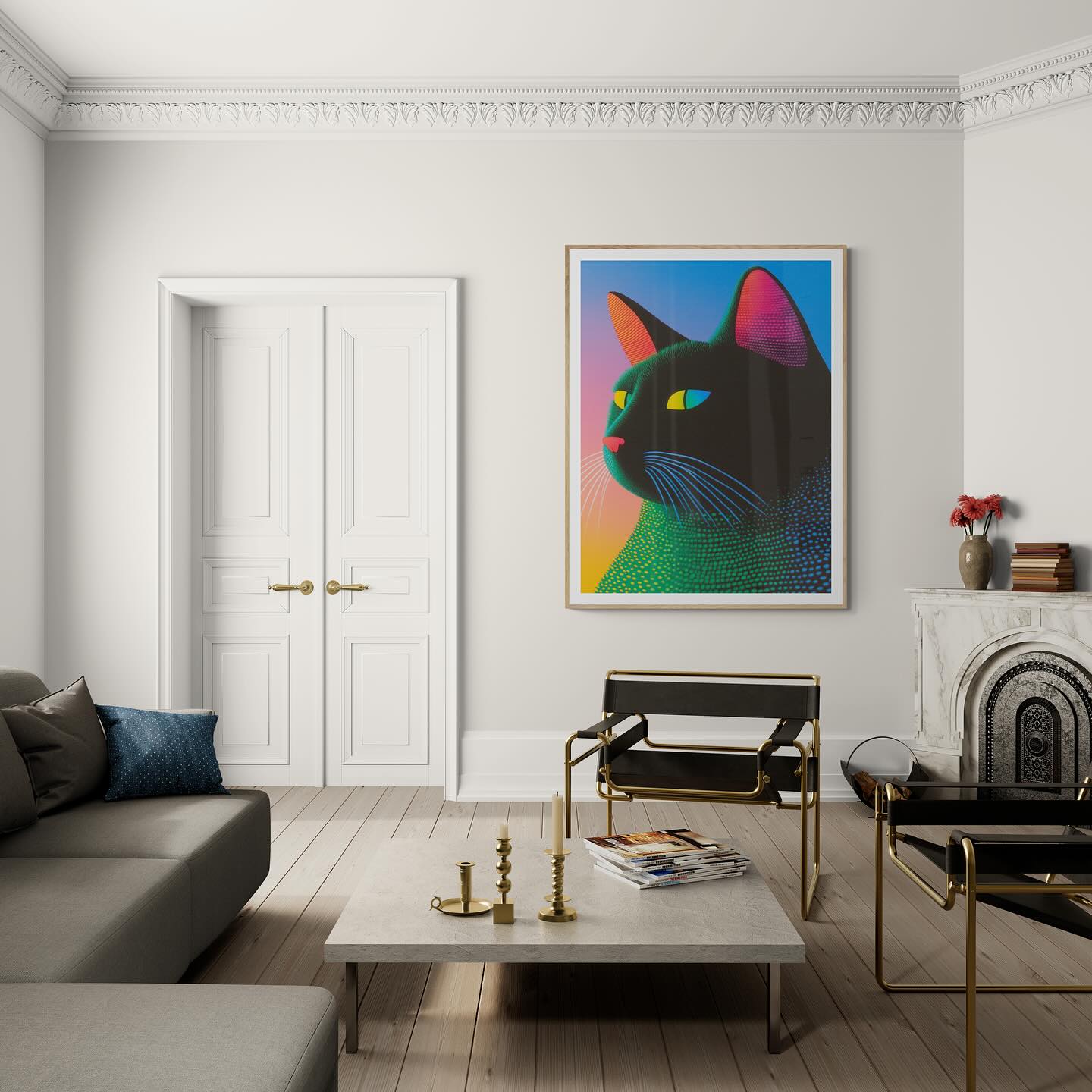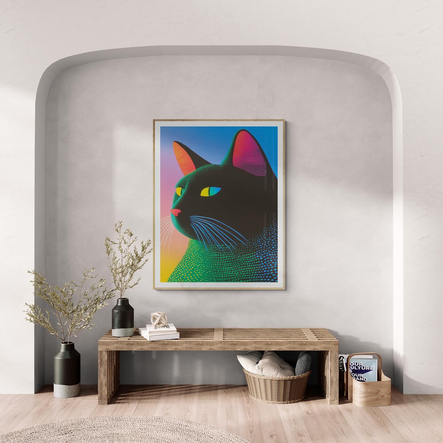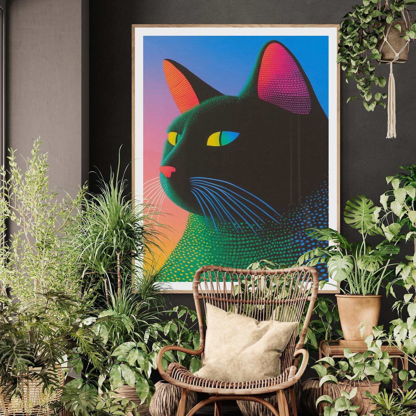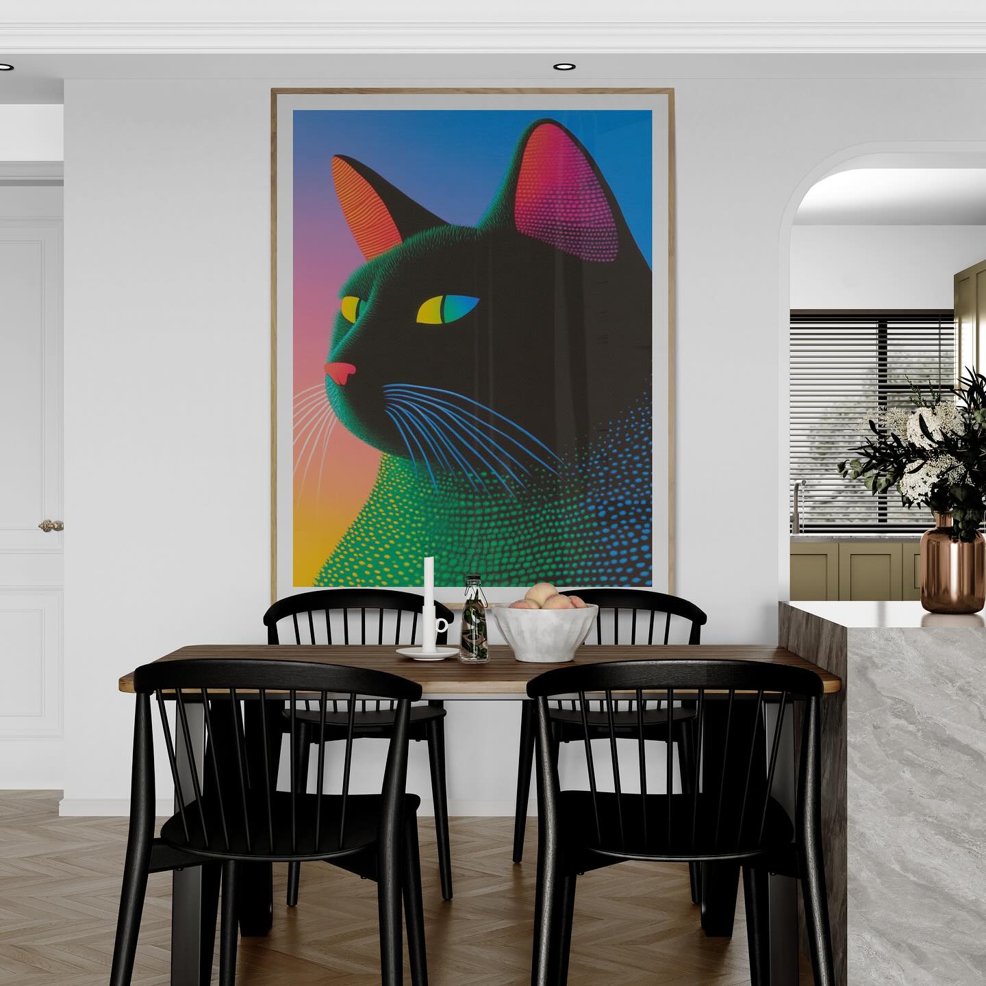 A black and white cat, surreal illustration, furry texture, soft and bright