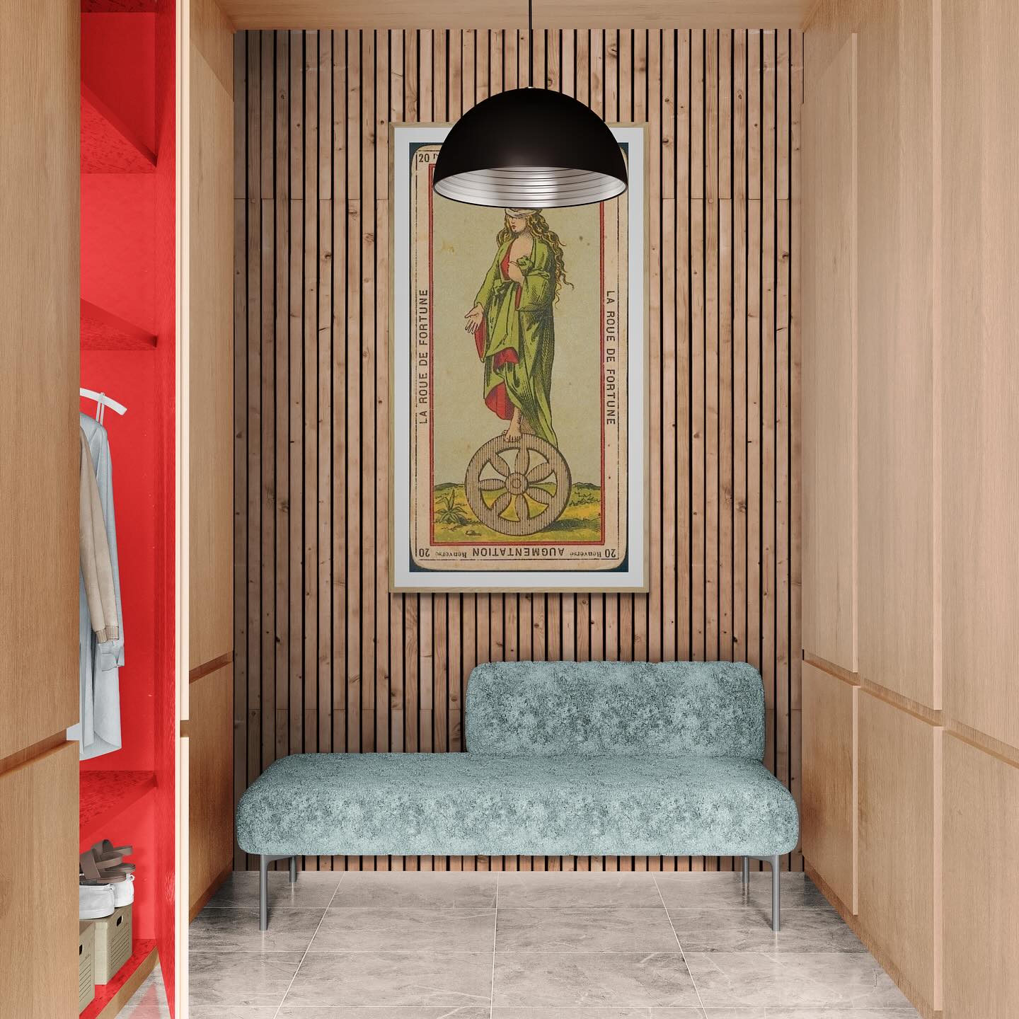 Para obras enmarcadas, sugerimos quitar con cuidado el embalaje protector y colgarla con la ayuda de dos personas, usando clavos resistentes. En el caso de obras de gran tamaño, si es posible, utiliza tornillos y tacos de pared.