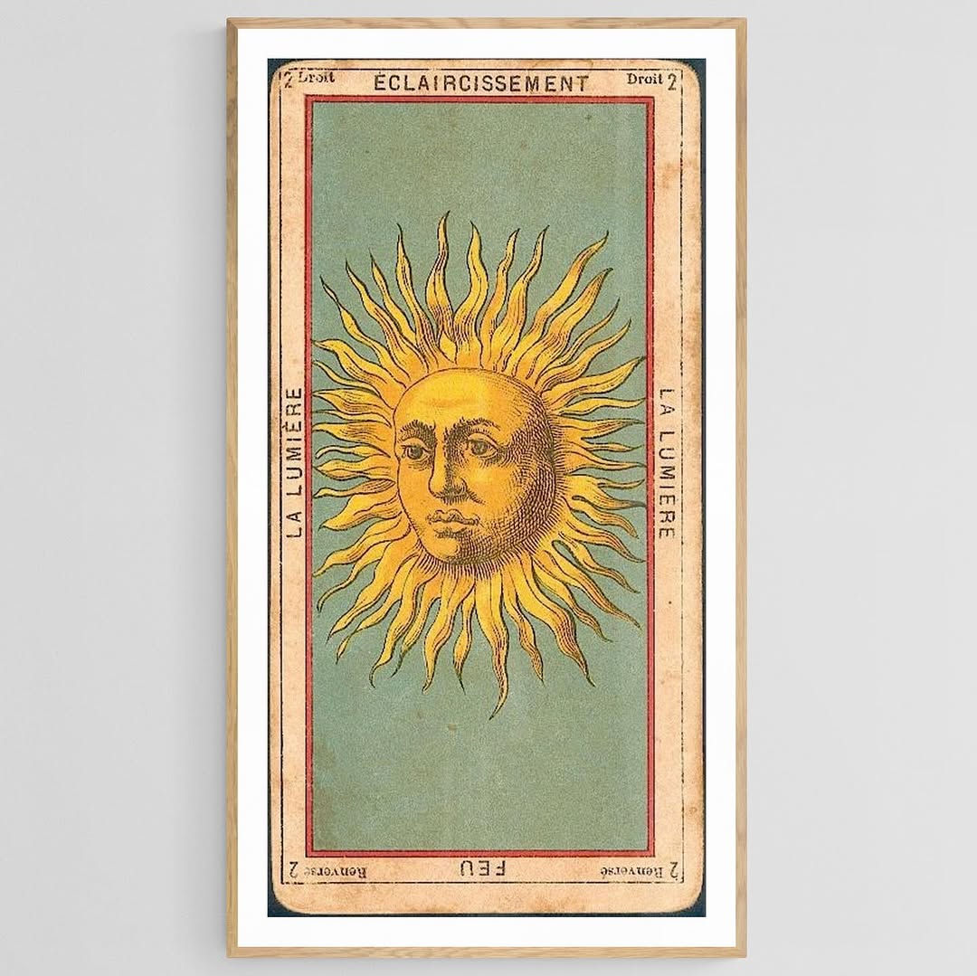 Eclaircissement La Lumiere vintage tarot card in French.