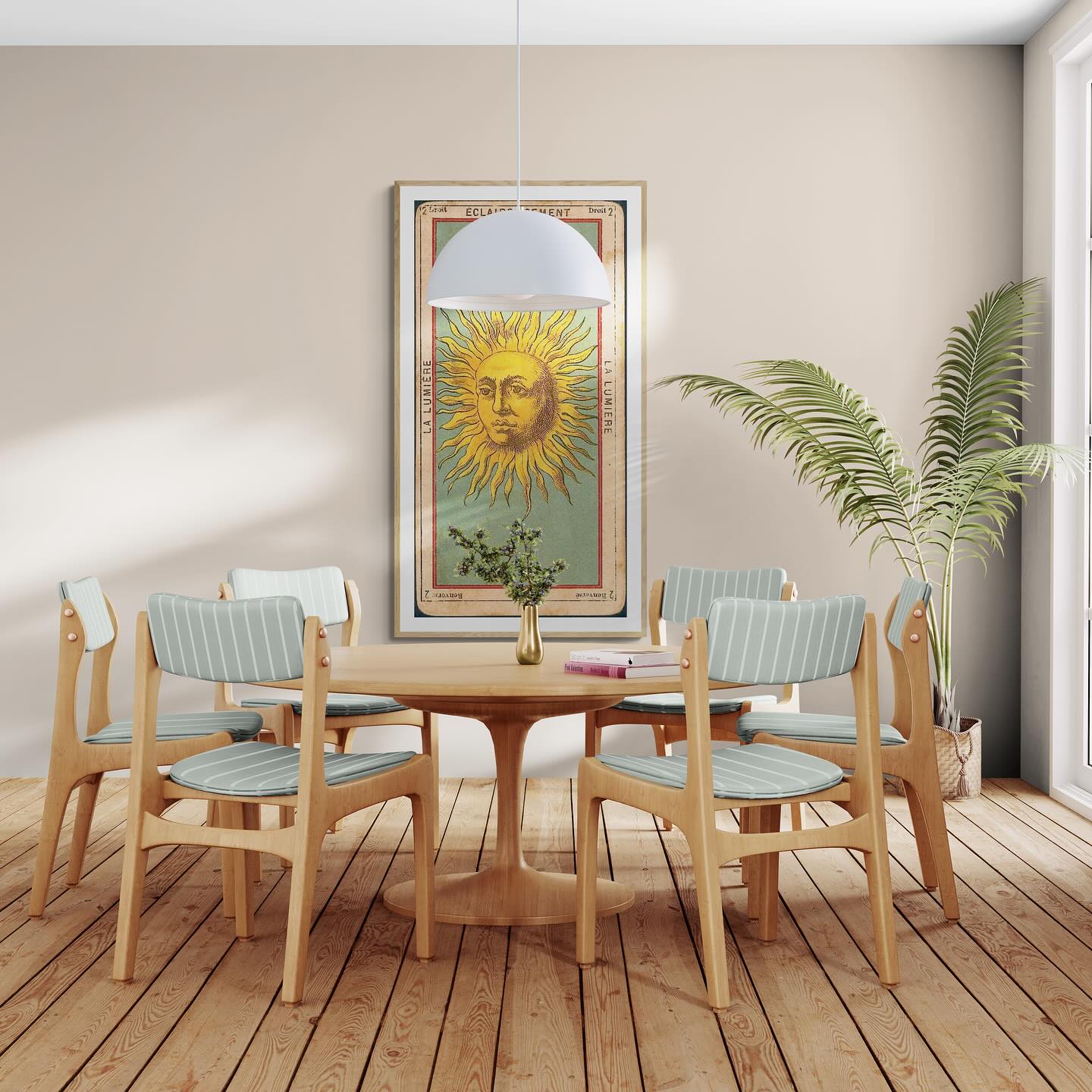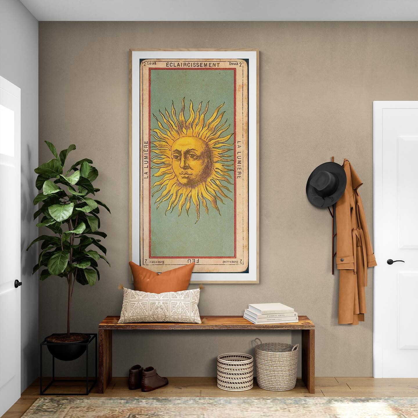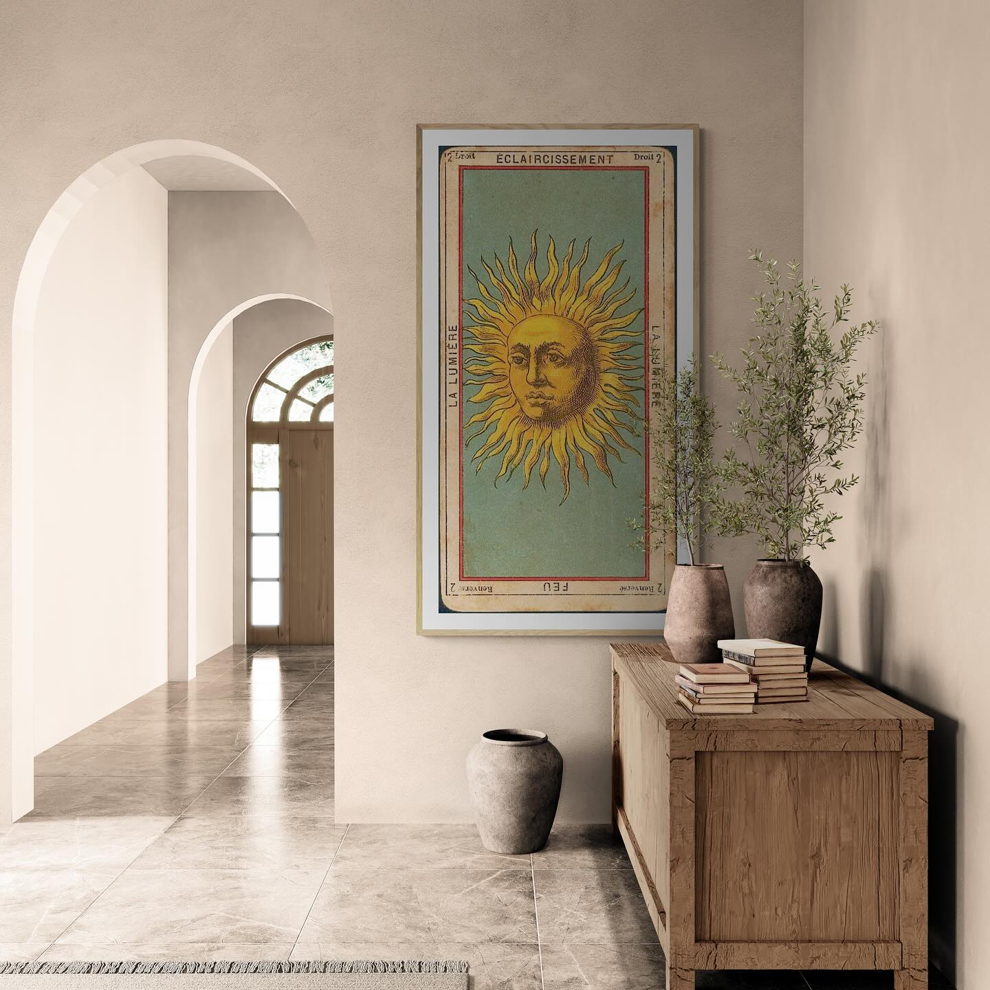 Para obras enmarcadas, sugerimos quitar con cuidado el embalaje protector y colgarla con la ayuda de dos personas, usando clavos resistentes. En el caso de obras de gran tamaño, si es posible, utiliza tornillos y tacos de pared.