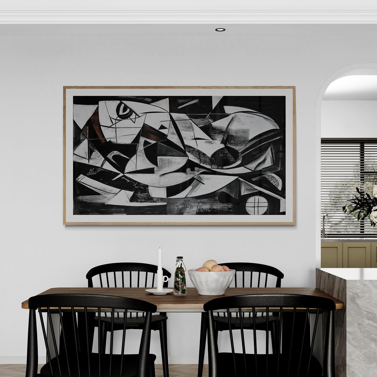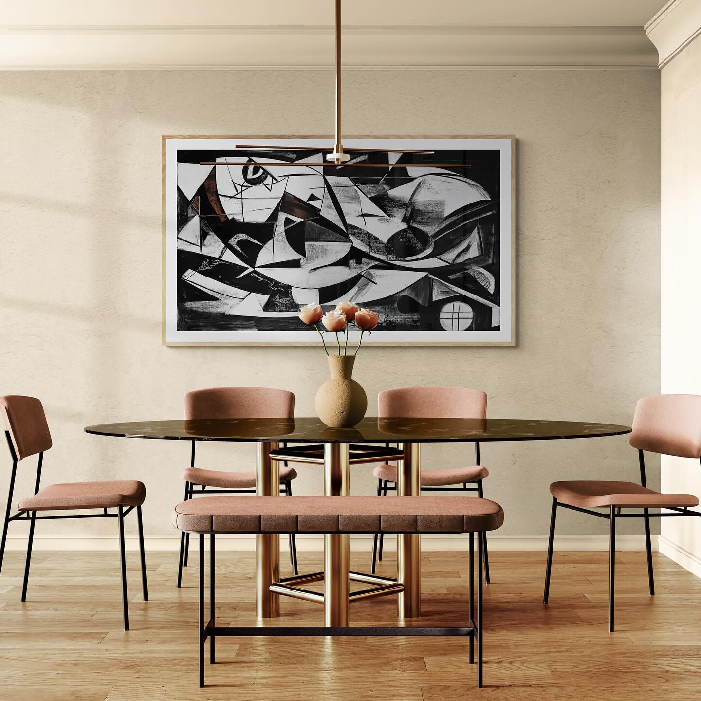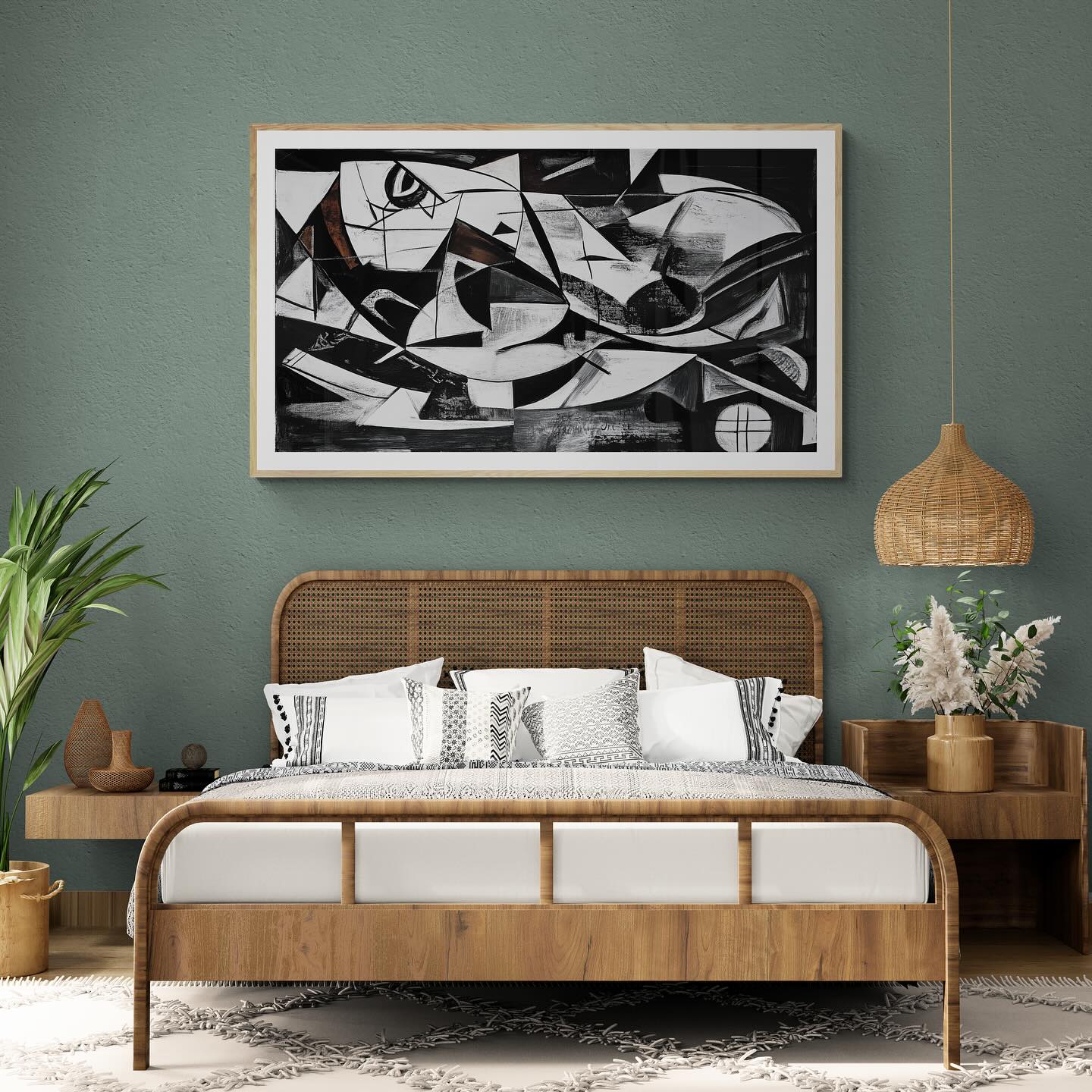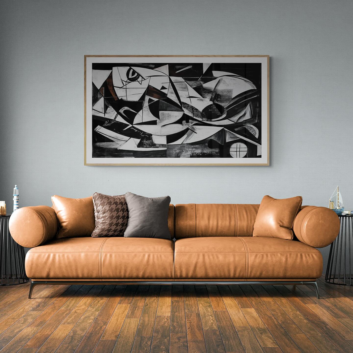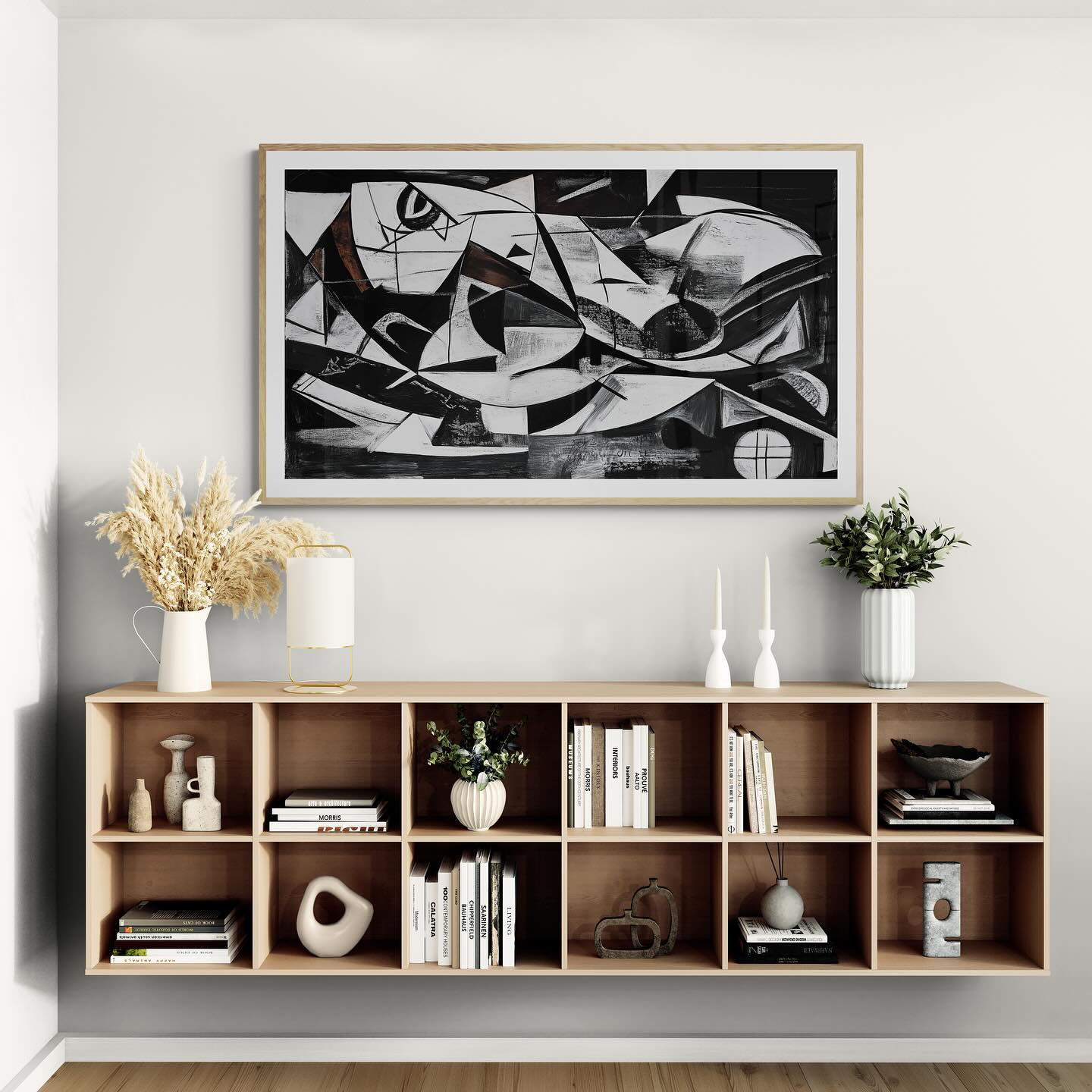 Para obras enmarcadas, sugerimos quitar con cuidado el embalaje protector y colgarla con la ayuda de dos personas, usando clavos resistentes. En el caso de obras de gran tamaño, si es posible, utiliza tornillos y tacos de pared.