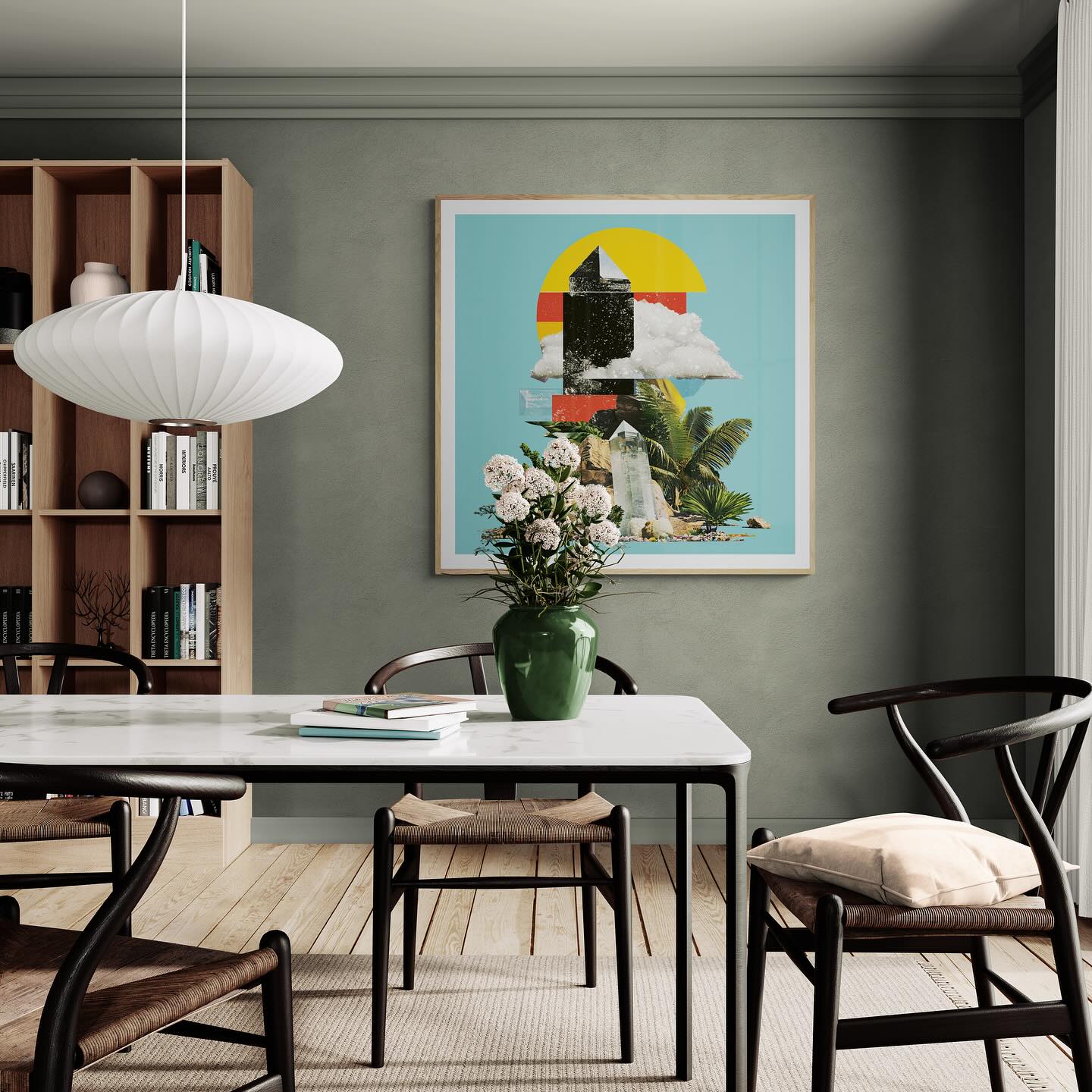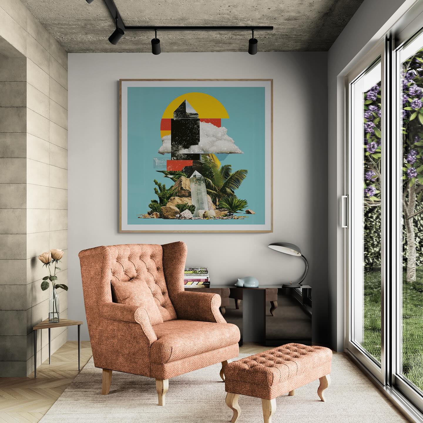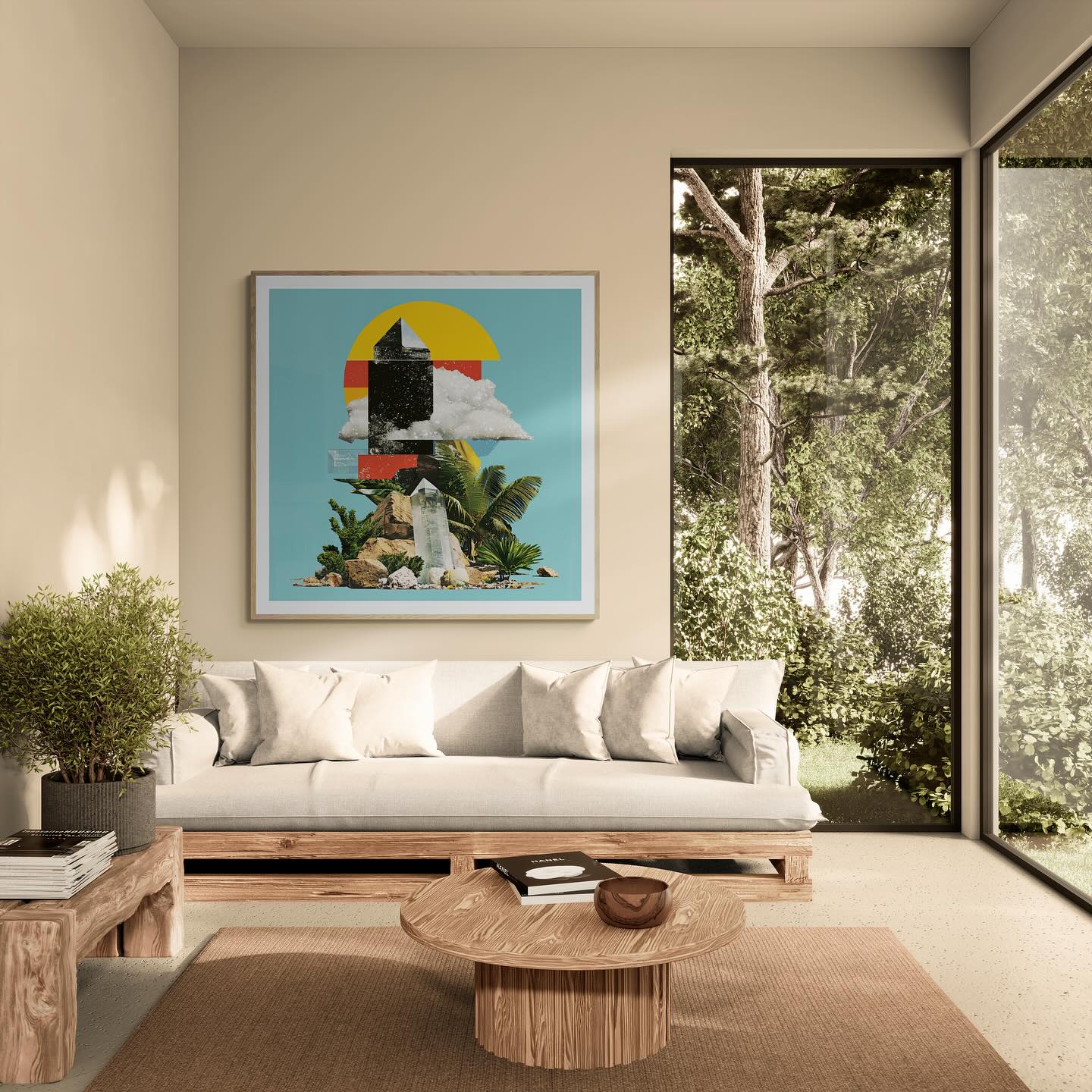 Para obras enmarcadas, sugerimos quitar con cuidado el embalaje protector y colgarla con la ayuda de dos personas, usando clavos resistentes. En el caso de obras de gran tamaño, si es posible, utiliza tornillos y tacos de pared.