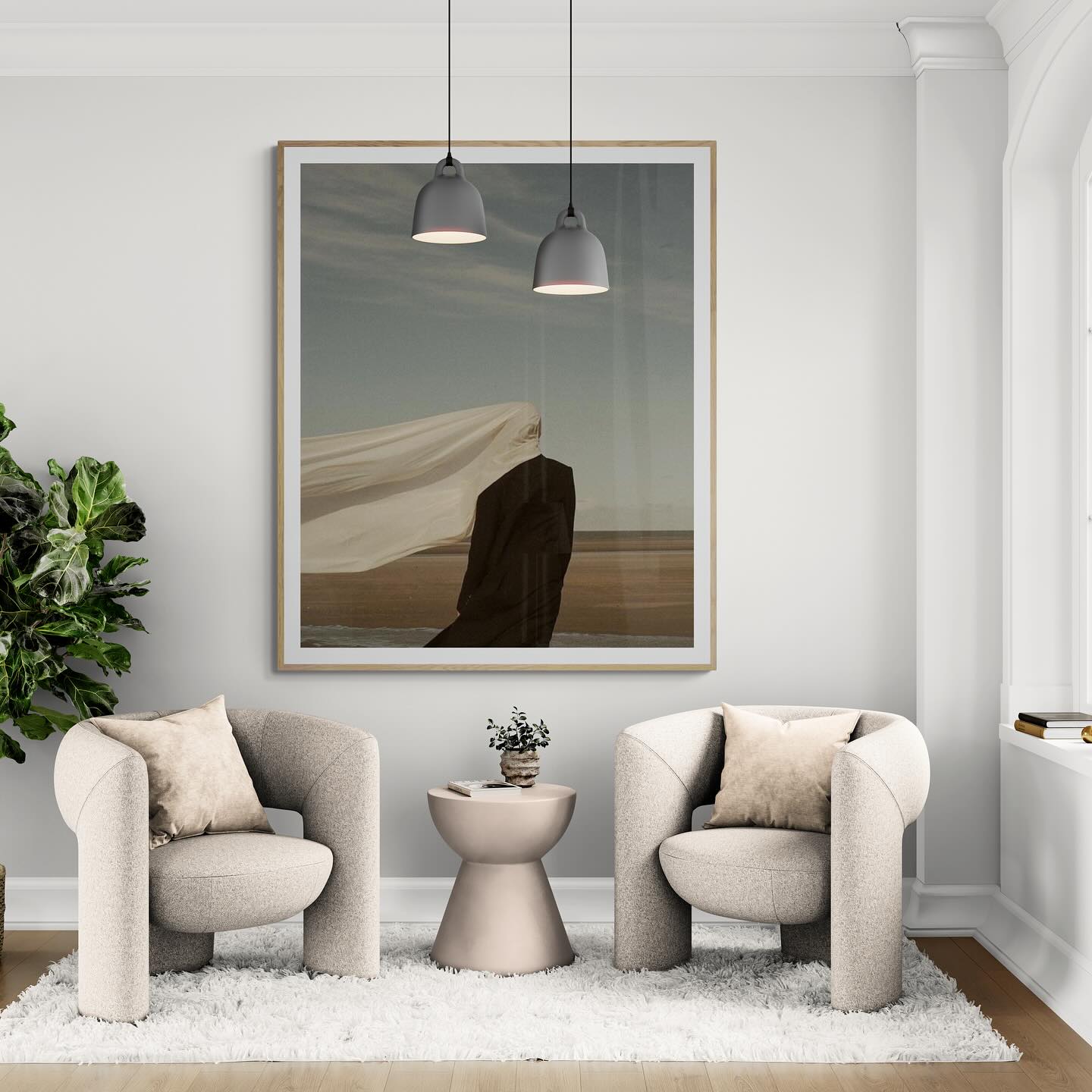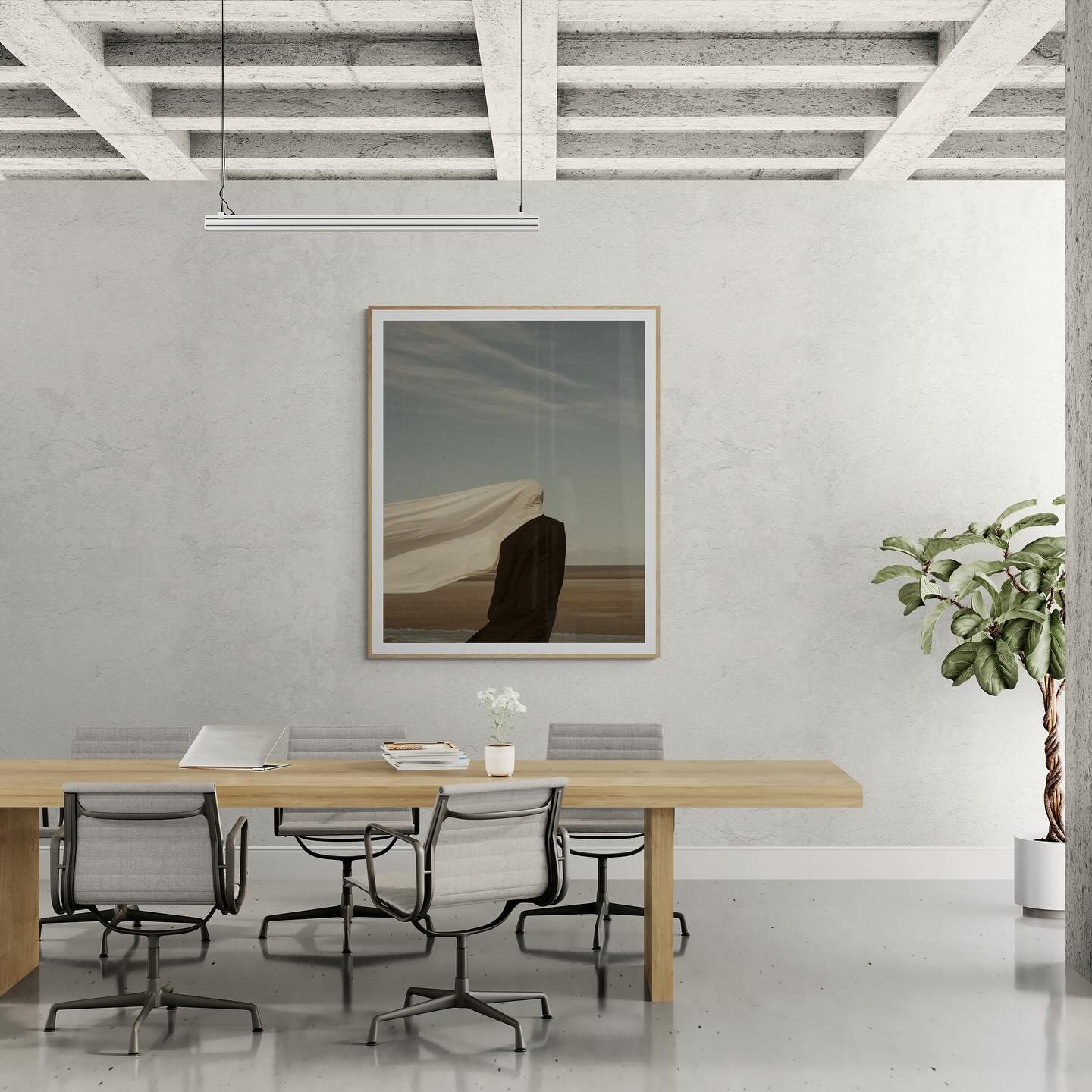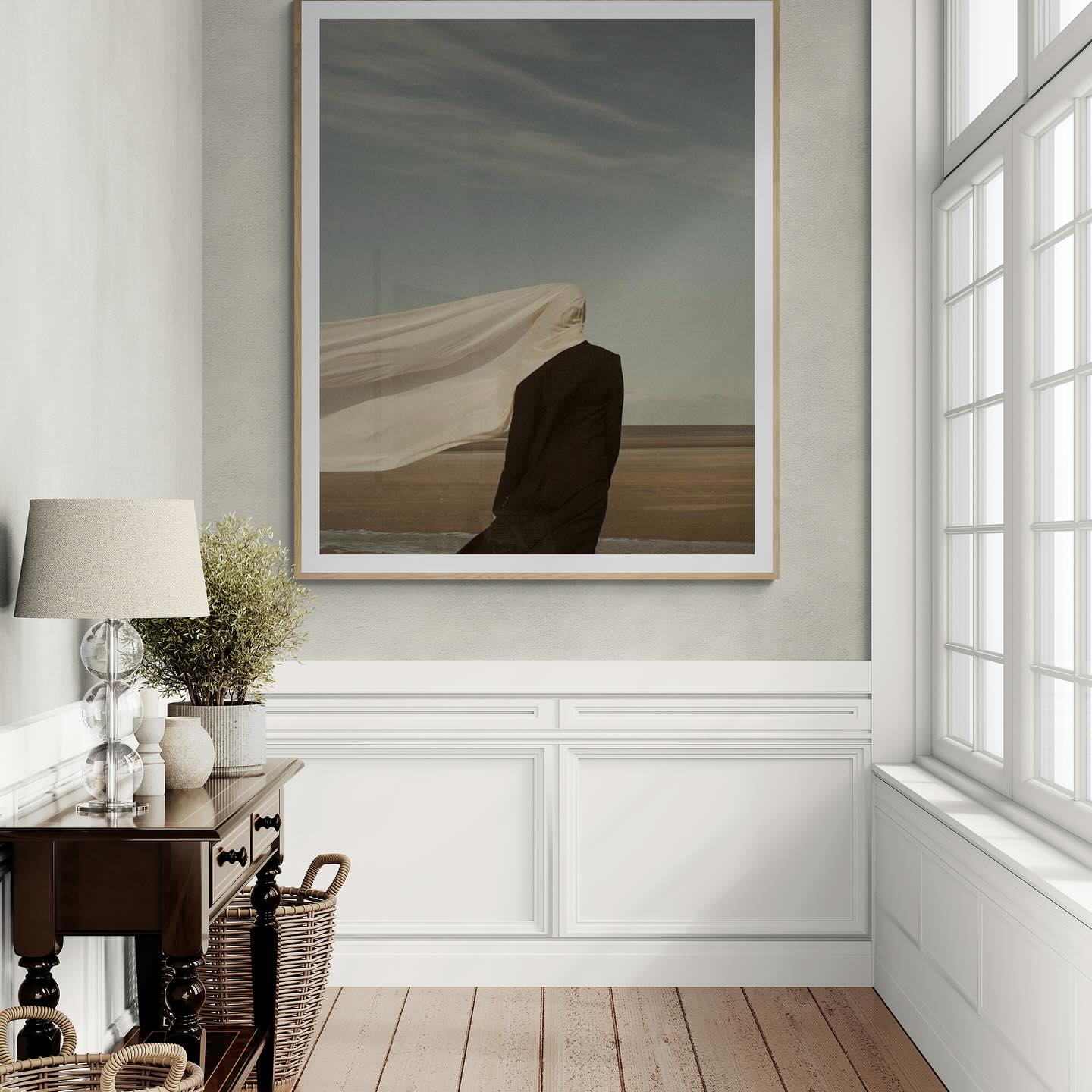 Para obras enmarcadas, sugerimos quitar con cuidado el embalaje protector y colgarla con la ayuda de dos personas, usando clavos resistentes. En el caso de obras de gran tamaño, si es posible, utiliza tornillos y tacos de pared.