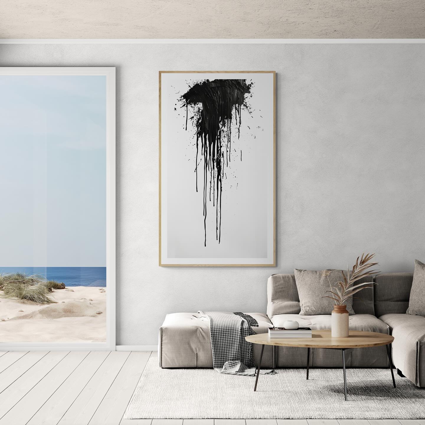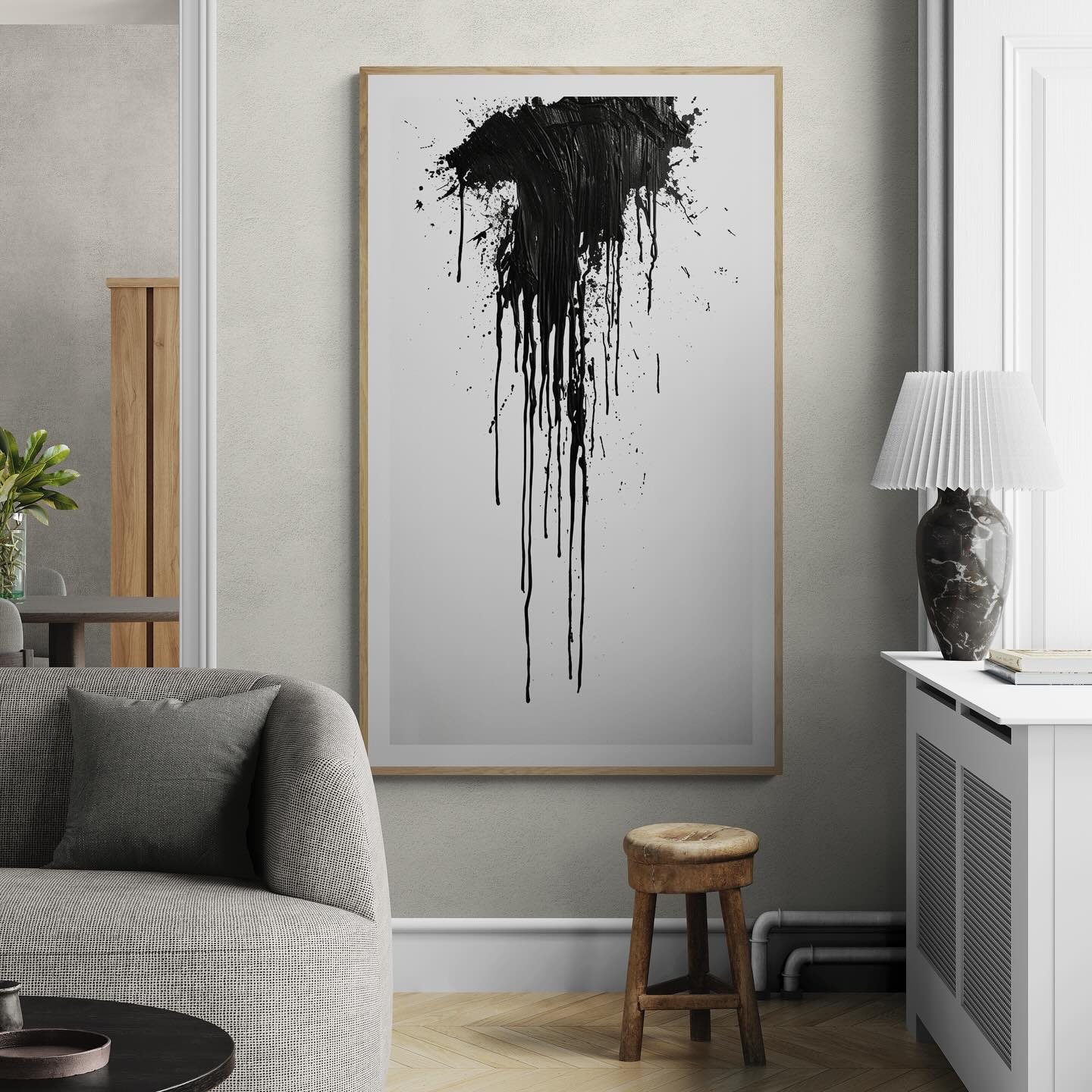 Para obras enmarcadas, sugerimos quitar con cuidado el embalaje protector y colgarla con la ayuda de dos personas, usando clavos resistentes. En el caso de obras de gran tamaño, si es posible, utiliza tornillos y tacos de pared.