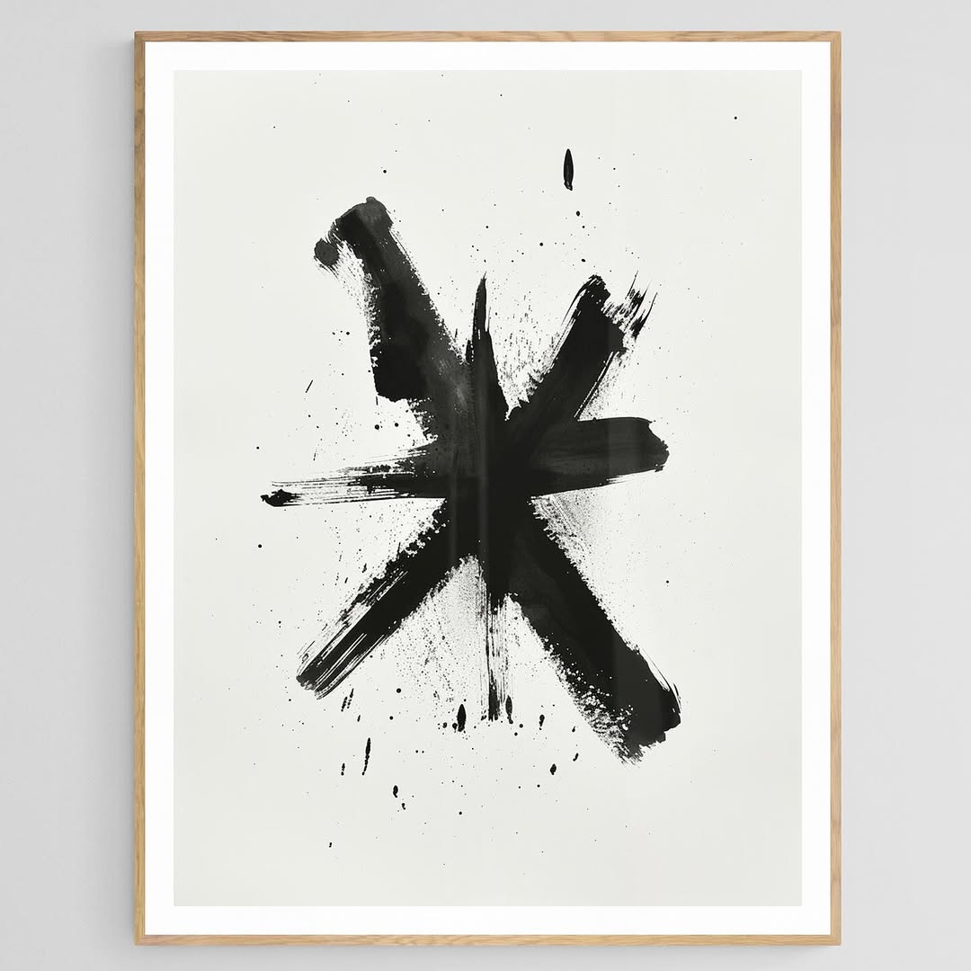 Black minimalist star in brush strokes.
