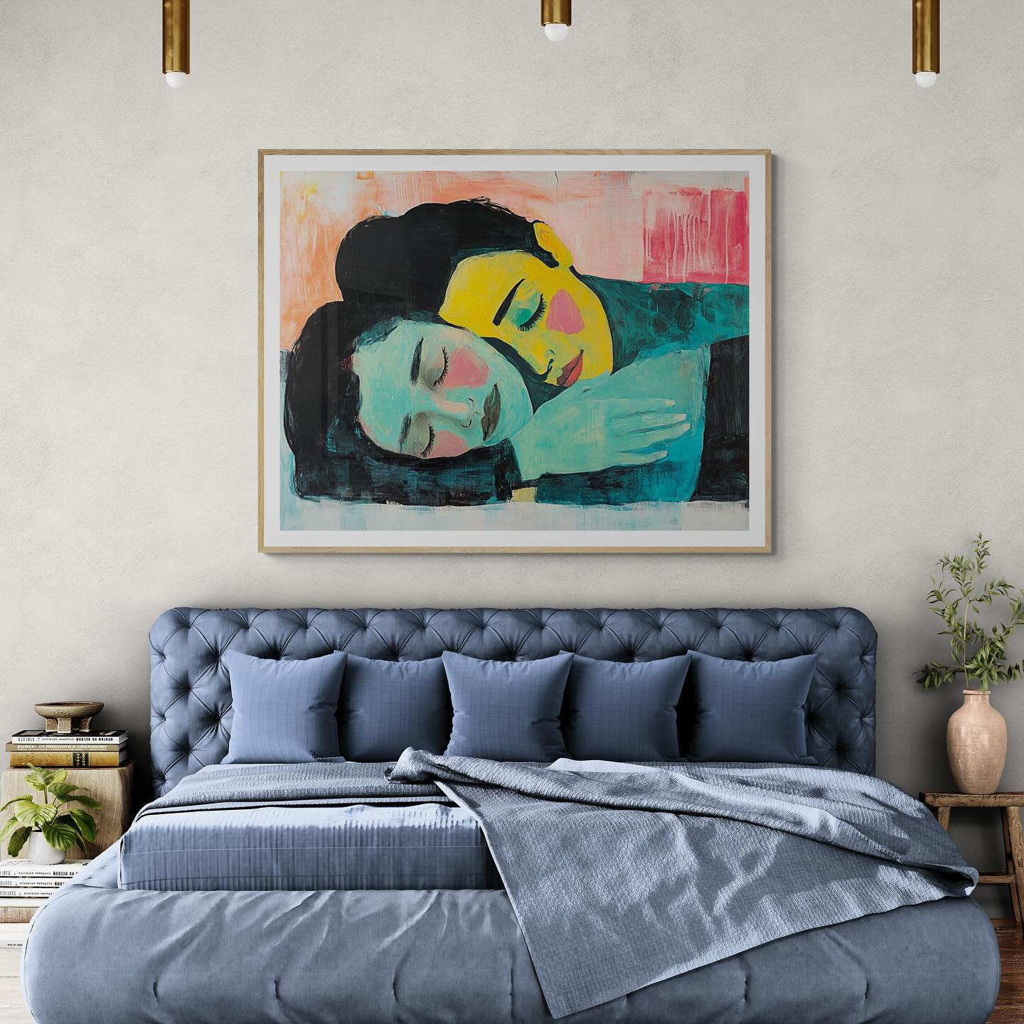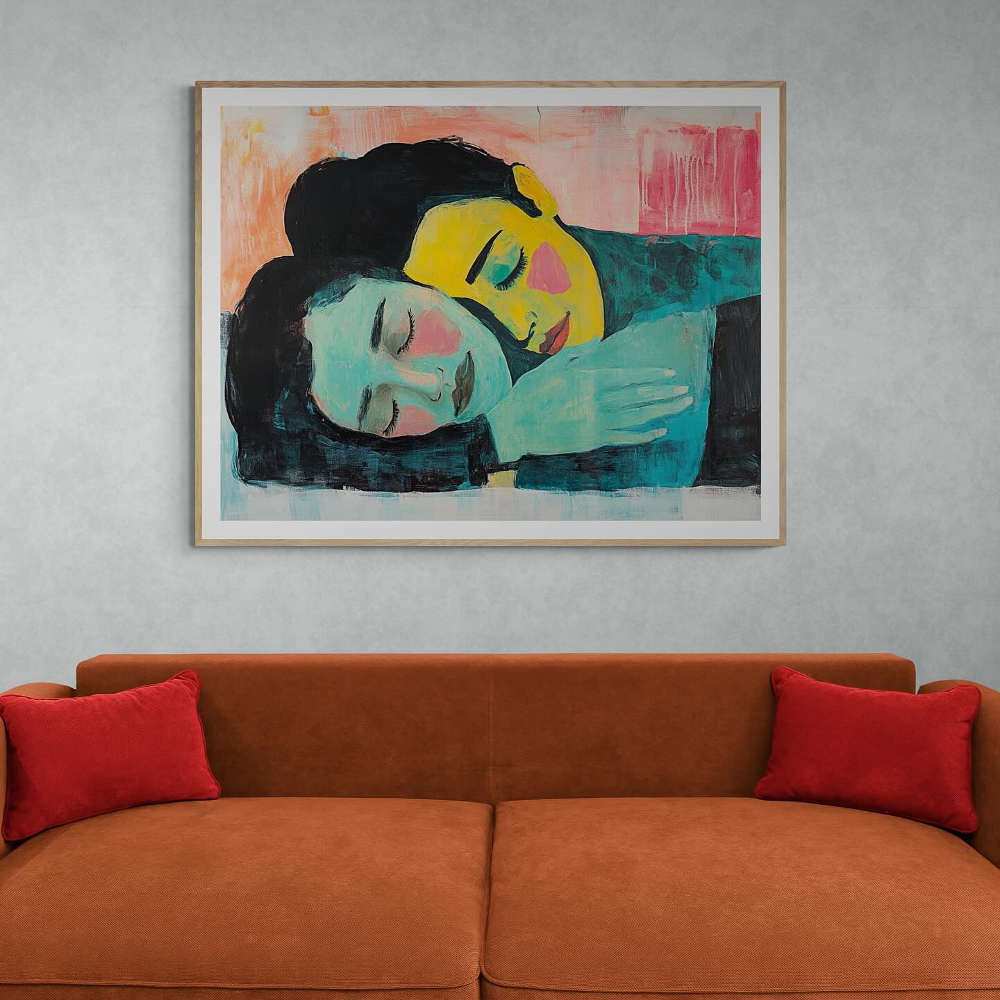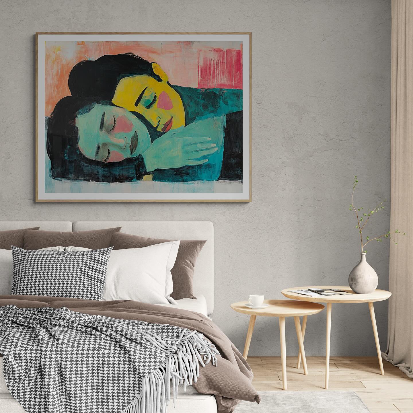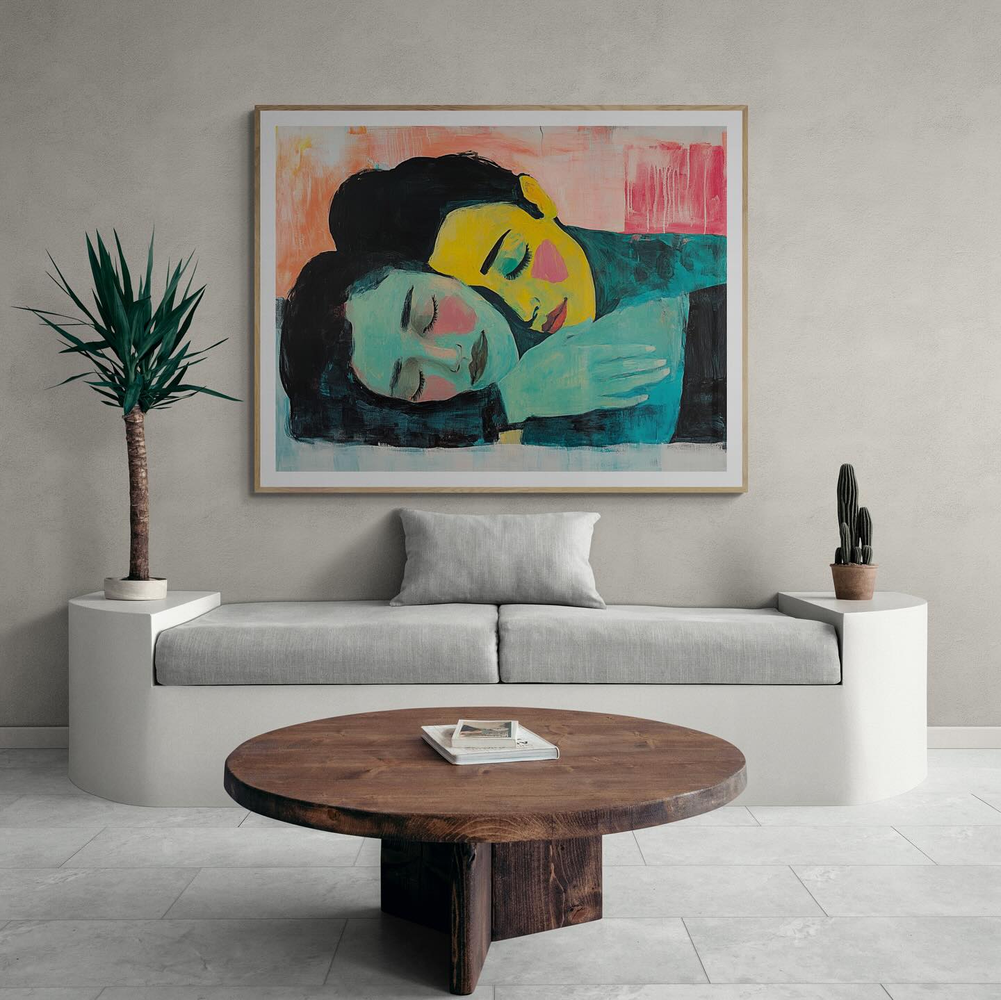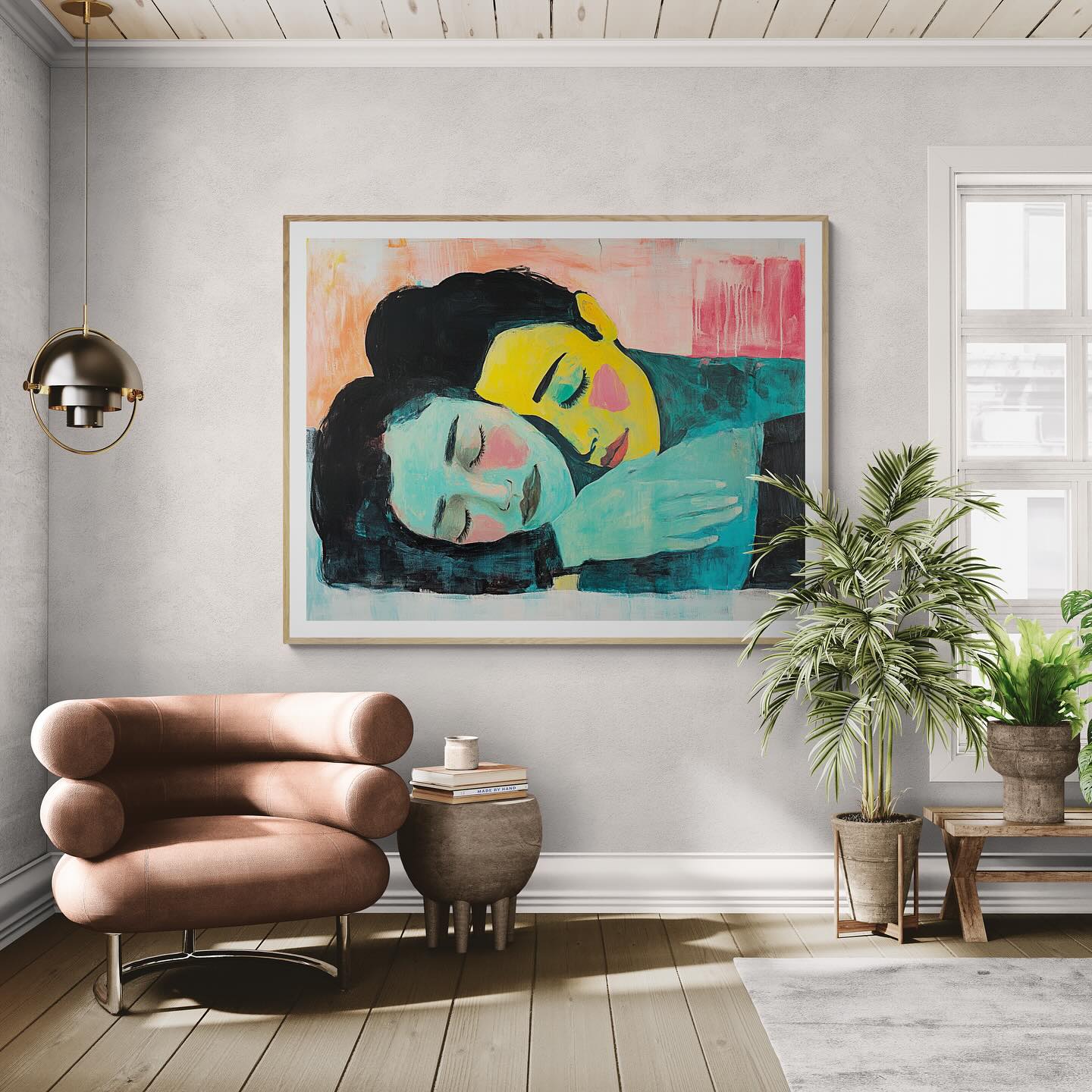 Para obras enmarcadas, sugerimos quitar con cuidado el embalaje protector y colgarla con la ayuda de dos personas, usando clavos resistentes. En el caso de obras de gran tamaño, si es posible, utiliza tornillos y tacos de pared.