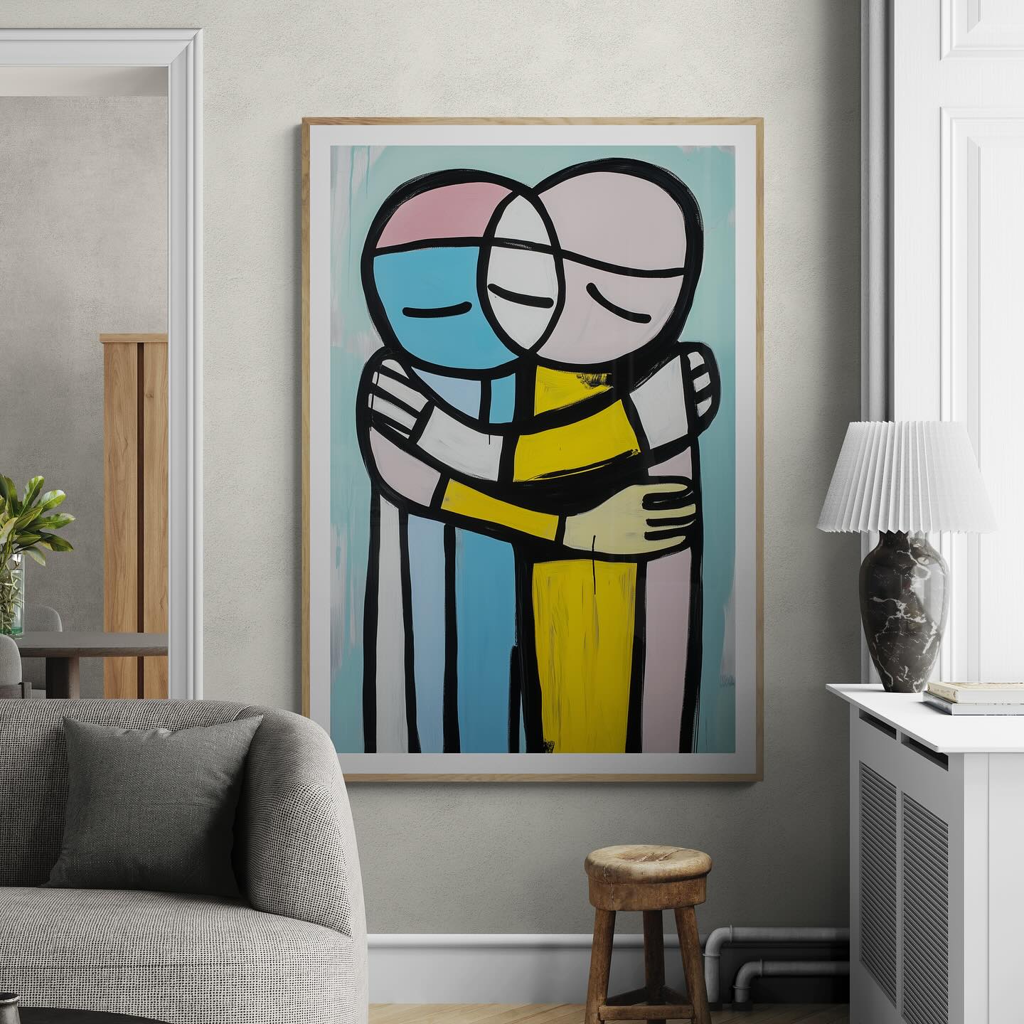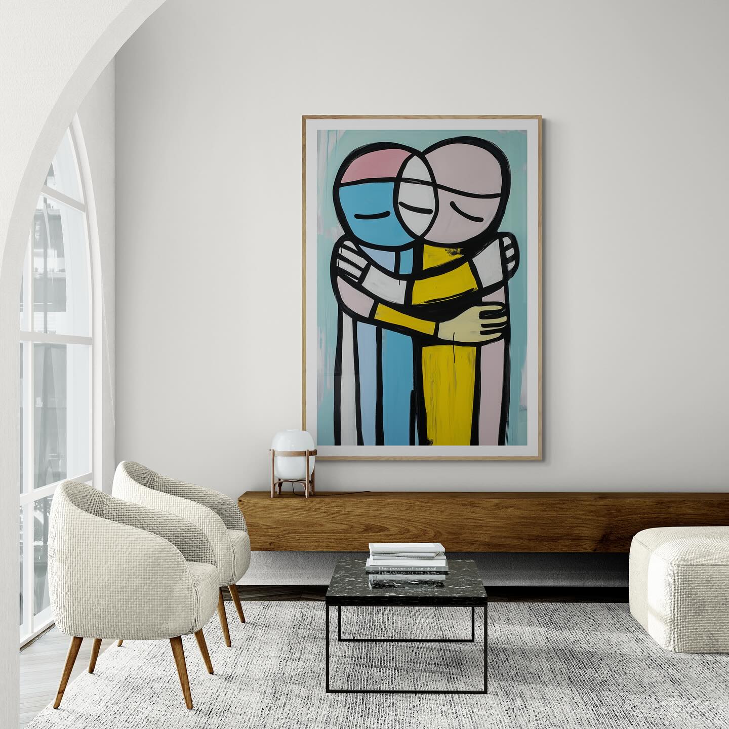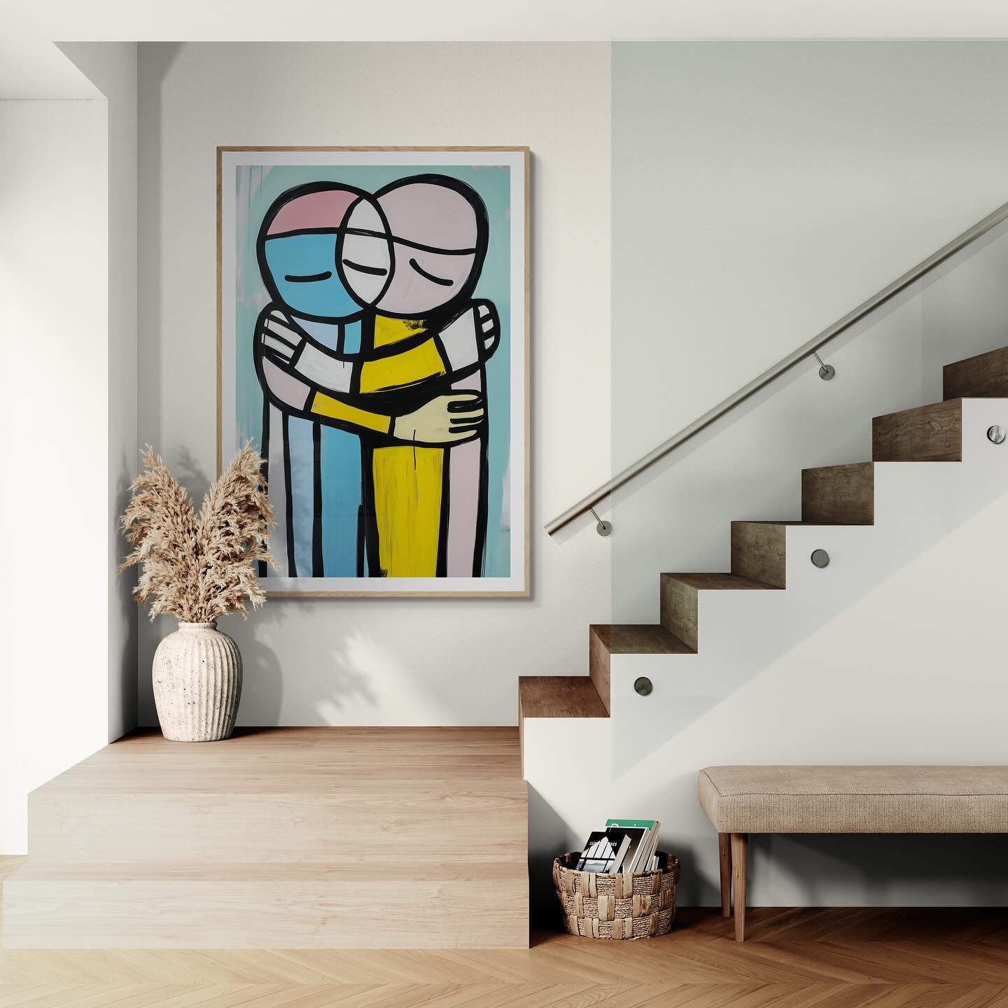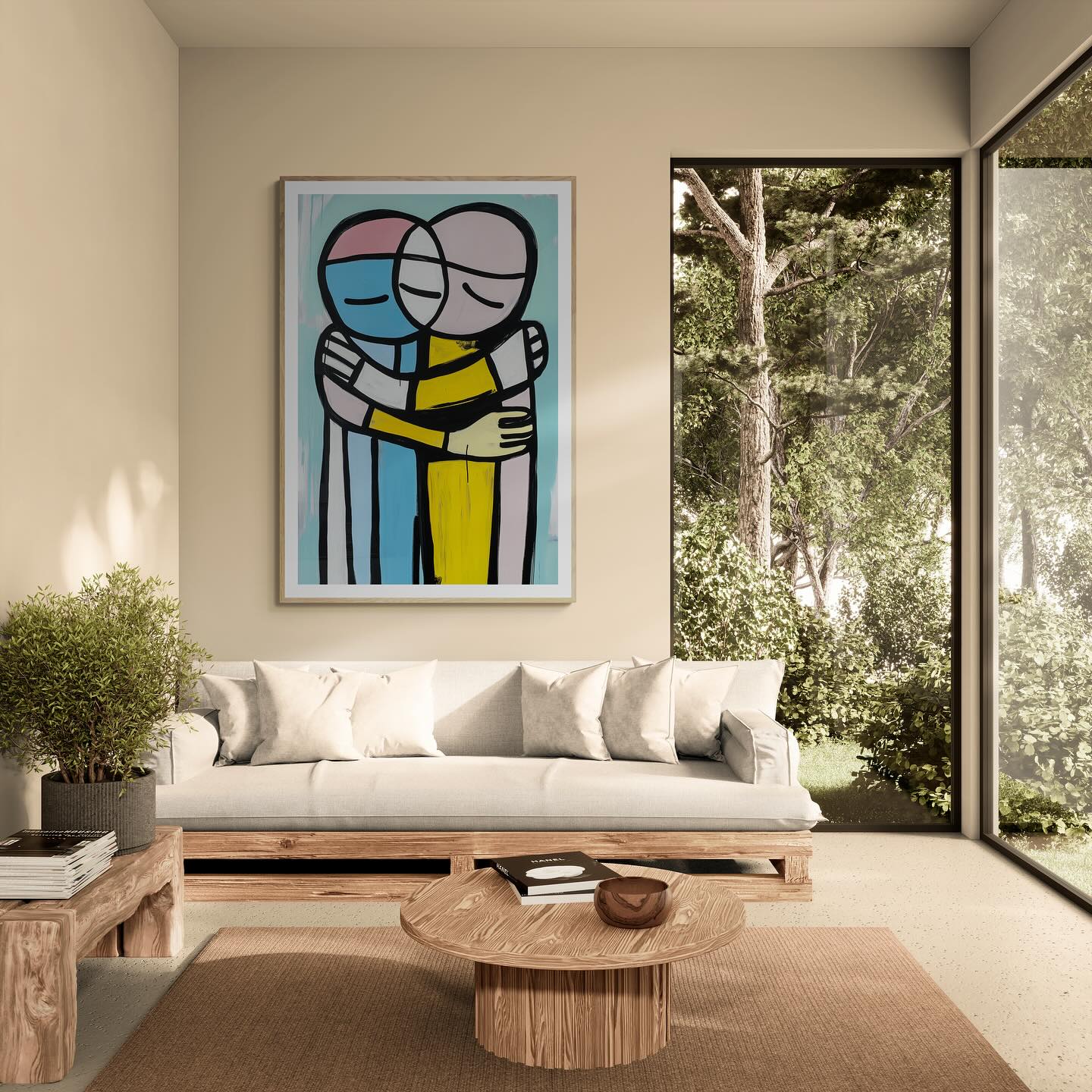 Para obras enmarcadas, sugerimos quitar con cuidado el embalaje protector y colgarla con la ayuda de dos personas, usando clavos resistentes. En el caso de obras de gran tamaño, si es posible, utiliza tornillos y tacos de pared.