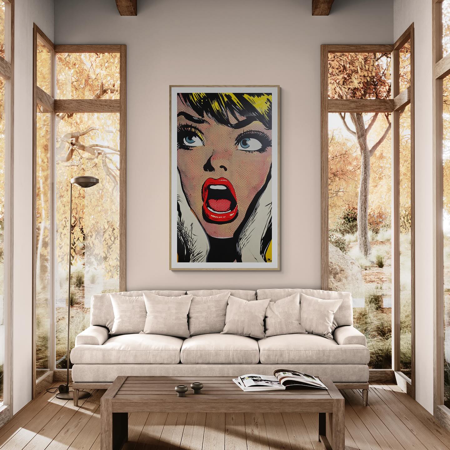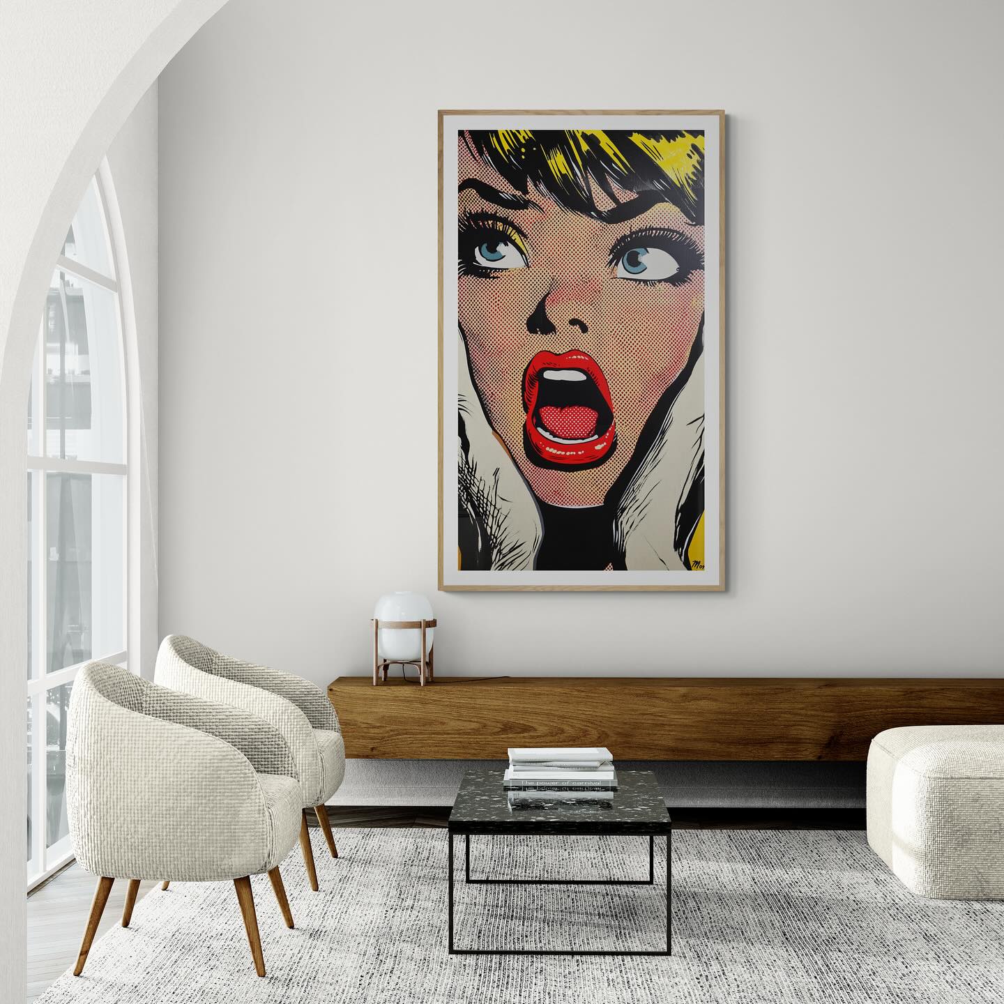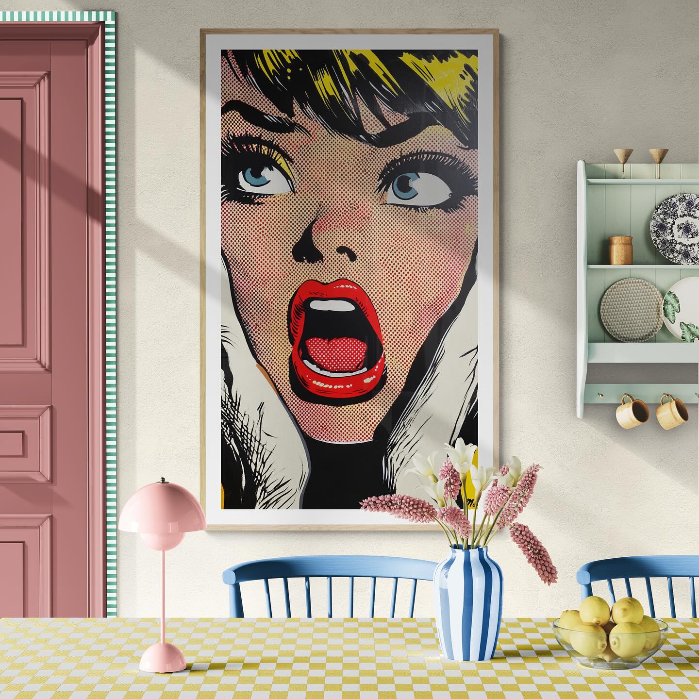 Woman shouting 1950s comic Roy Lichtenstein style.