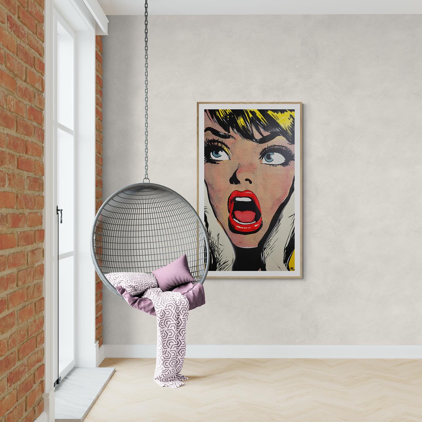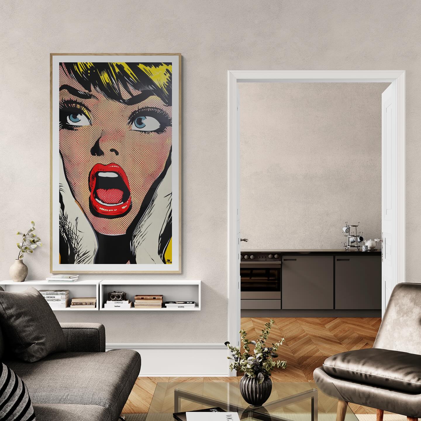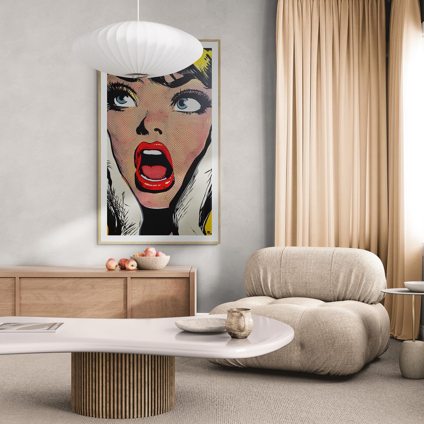 Woman shouting 1950s comic Roy Lichtenstein style.