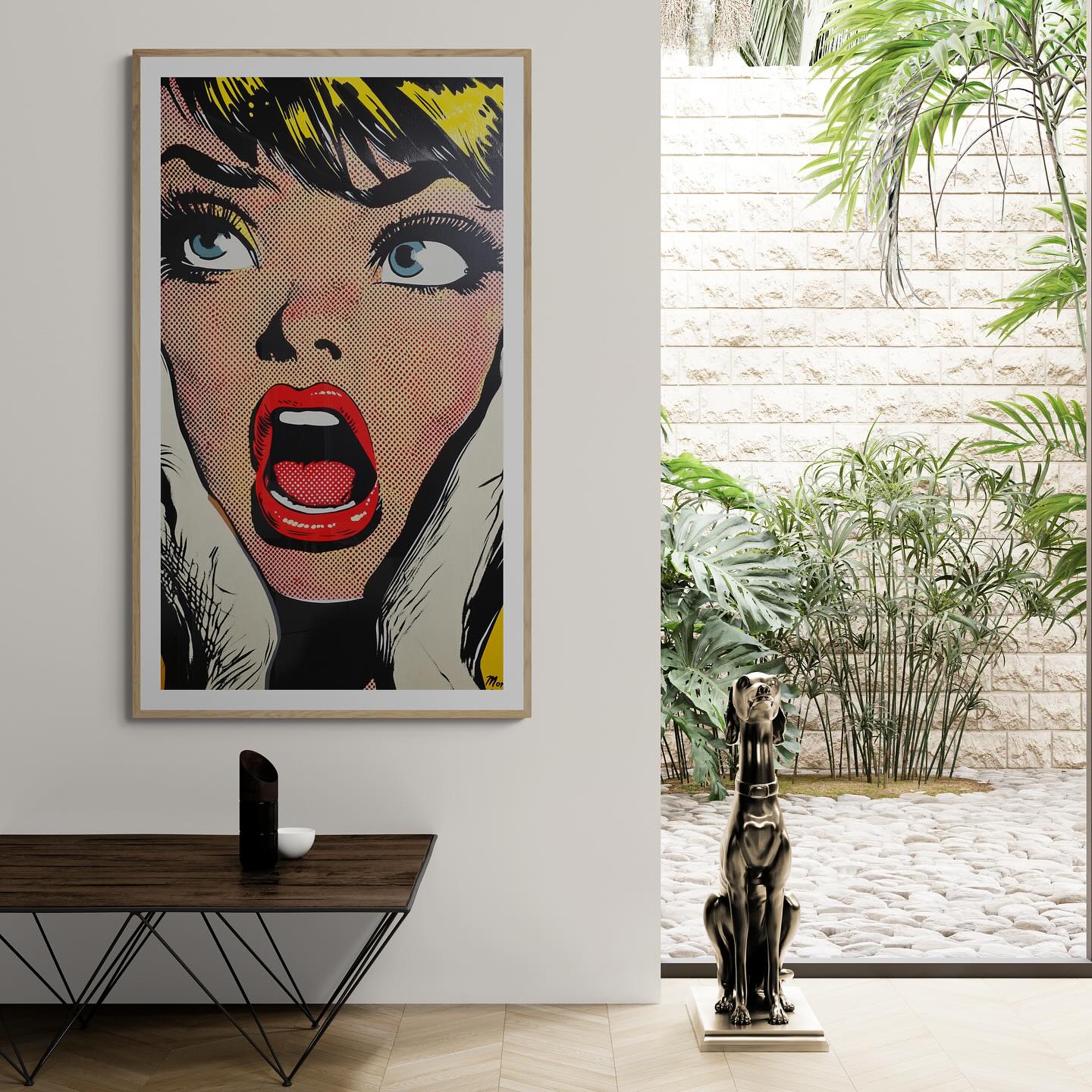 Para obras enmarcadas, sugerimos quitar con cuidado el embalaje protector y colgarla con la ayuda de dos personas, usando clavos resistentes. En el caso de obras de gran tamaño, si es posible, utiliza tornillos y tacos de pared.