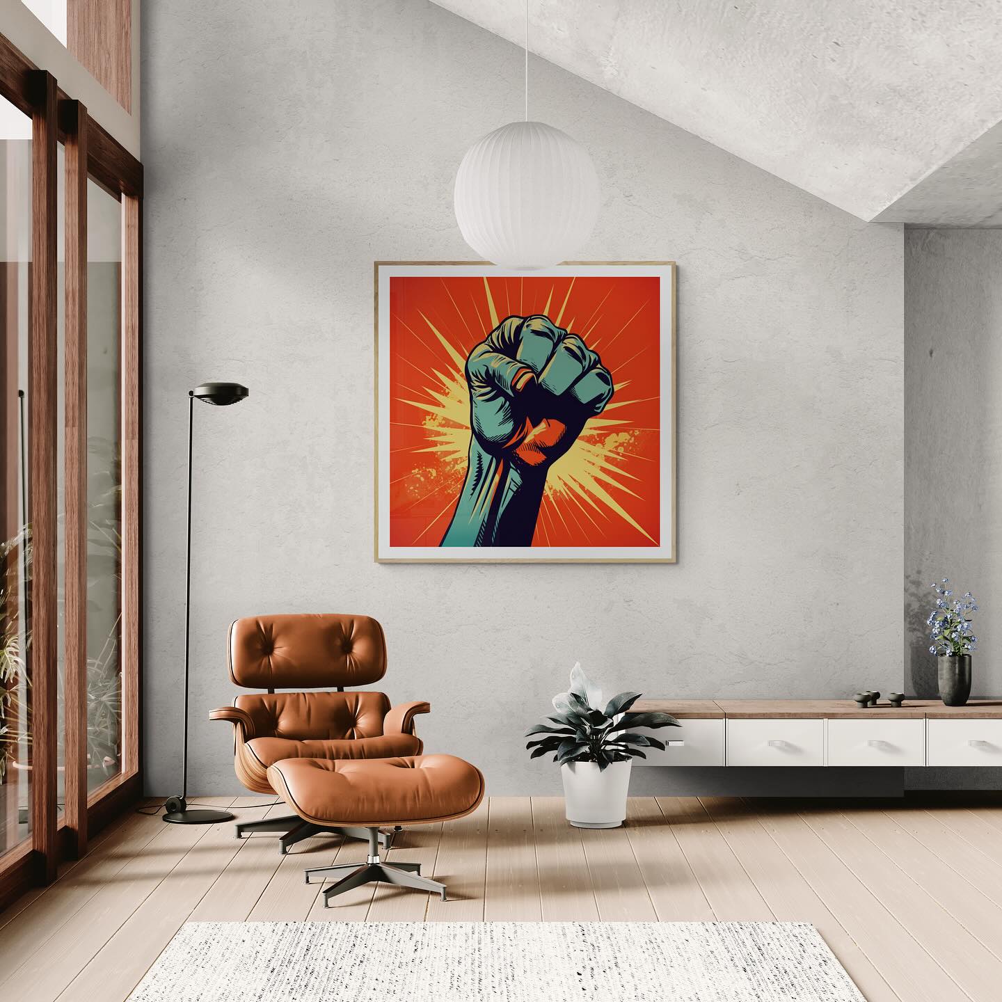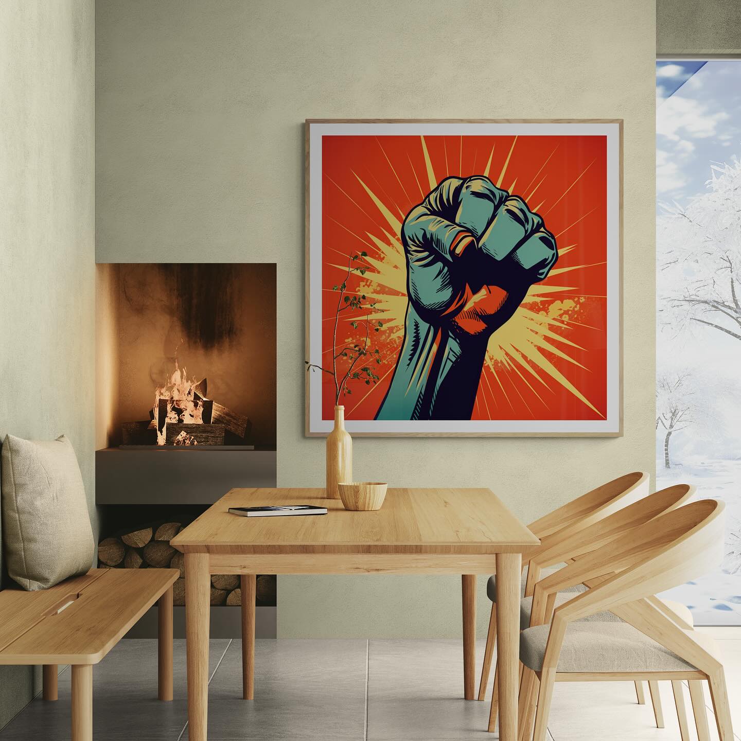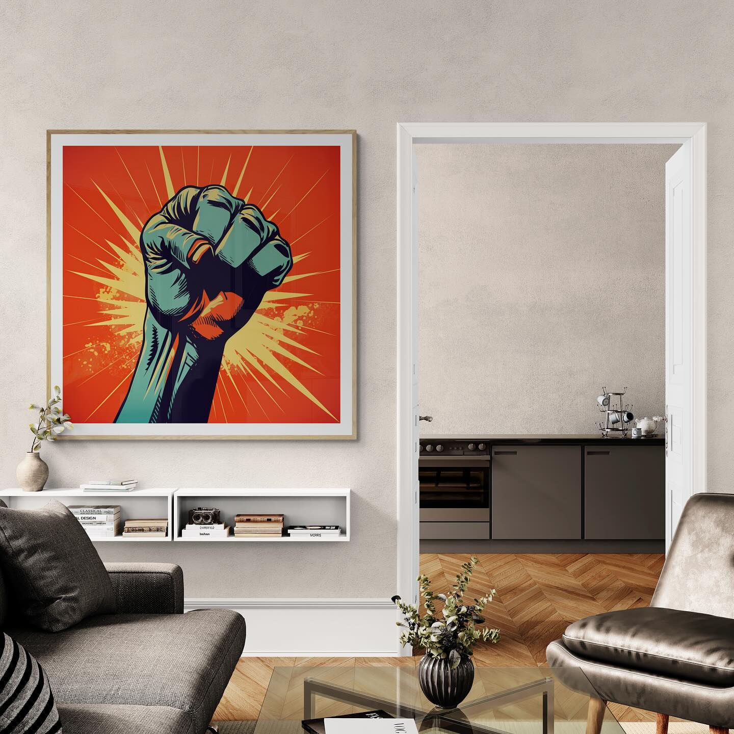 Para obras enmarcadas, sugerimos quitar con cuidado el embalaje protector y colgarla con la ayuda de dos personas, usando clavos resistentes. En el caso de obras de gran tamaño, si es posible, utiliza tornillos y tacos de pared.