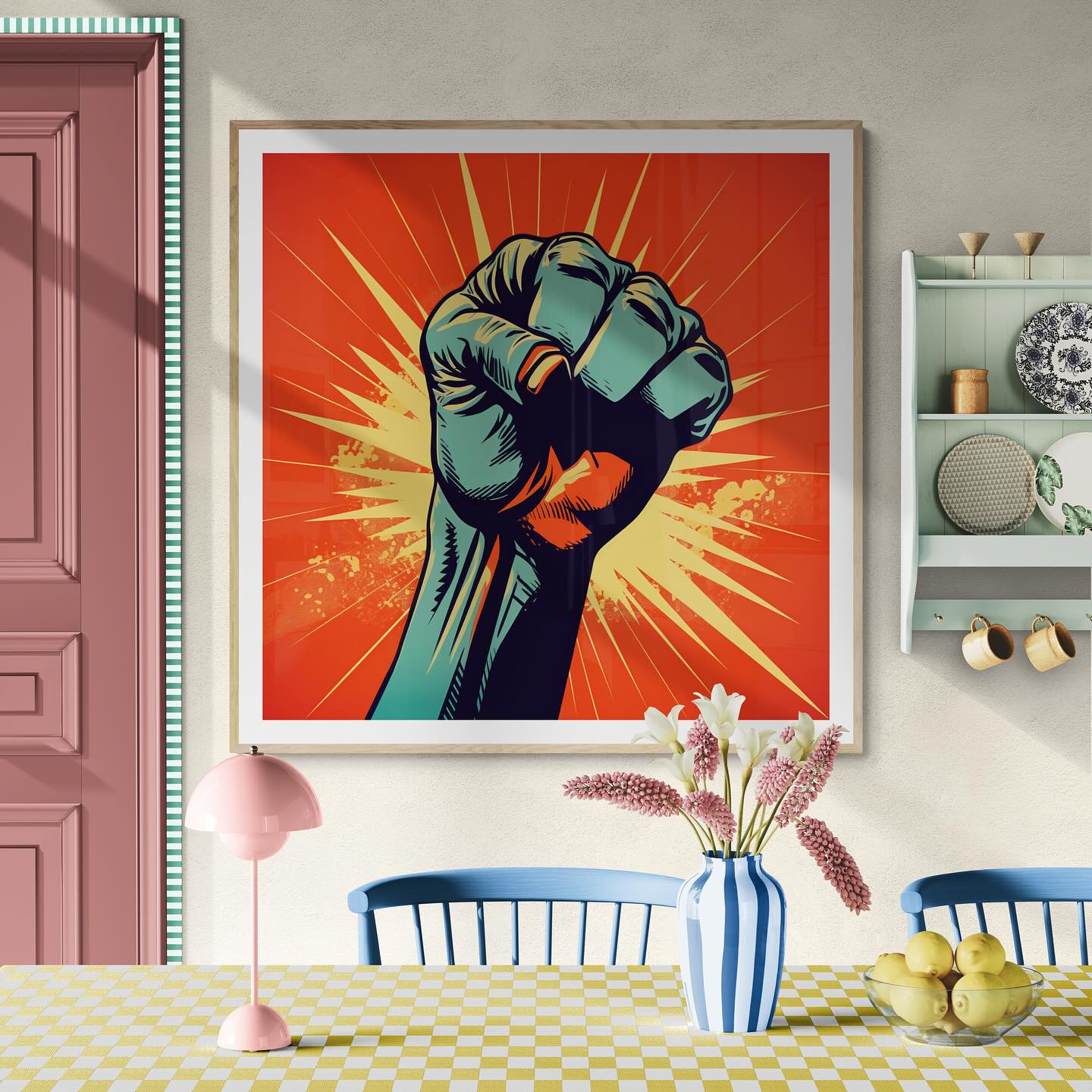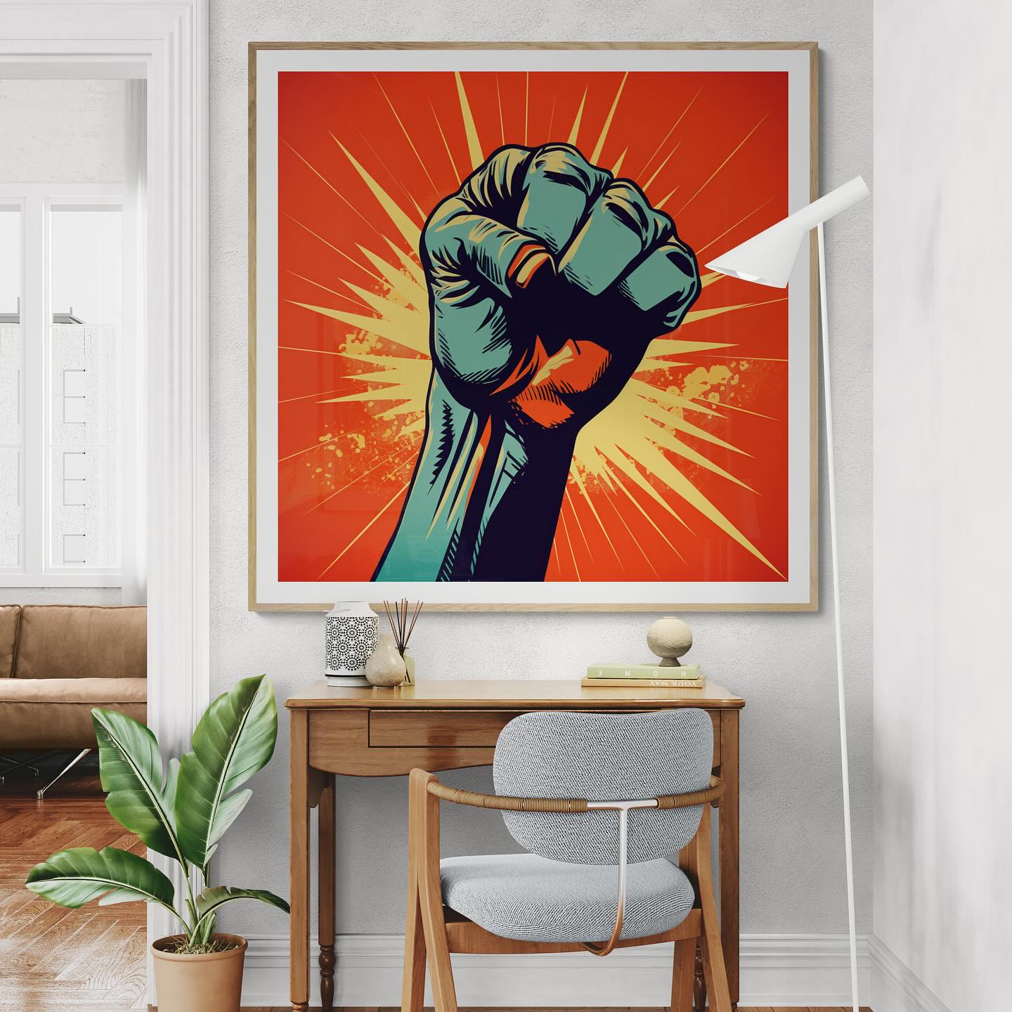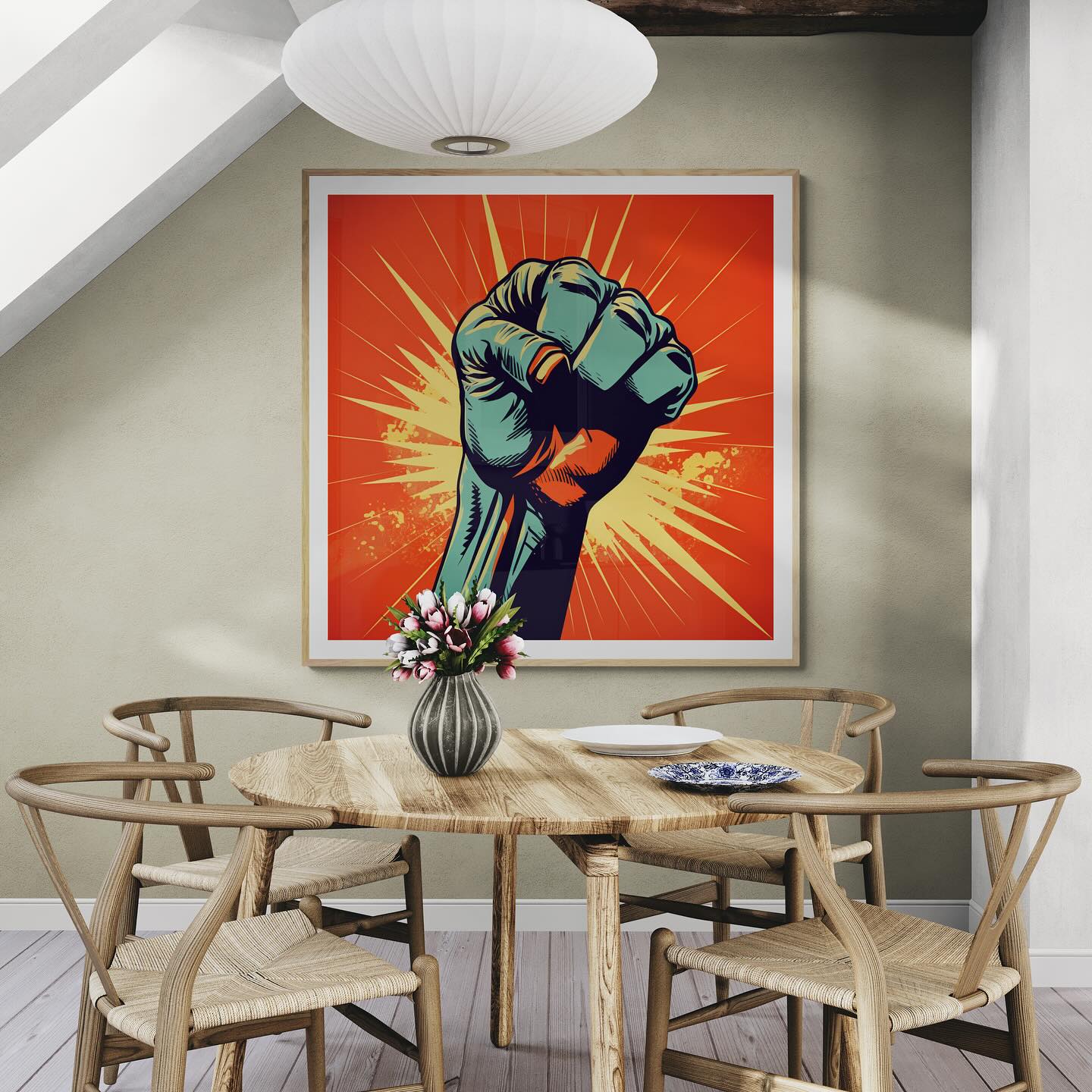Para obras enmarcadas, sugerimos quitar con cuidado el embalaje protector y colgarla con la ayuda de dos personas, usando clavos resistentes. En el caso de obras de gran tamaño, si es posible, utiliza tornillos y tacos de pared.