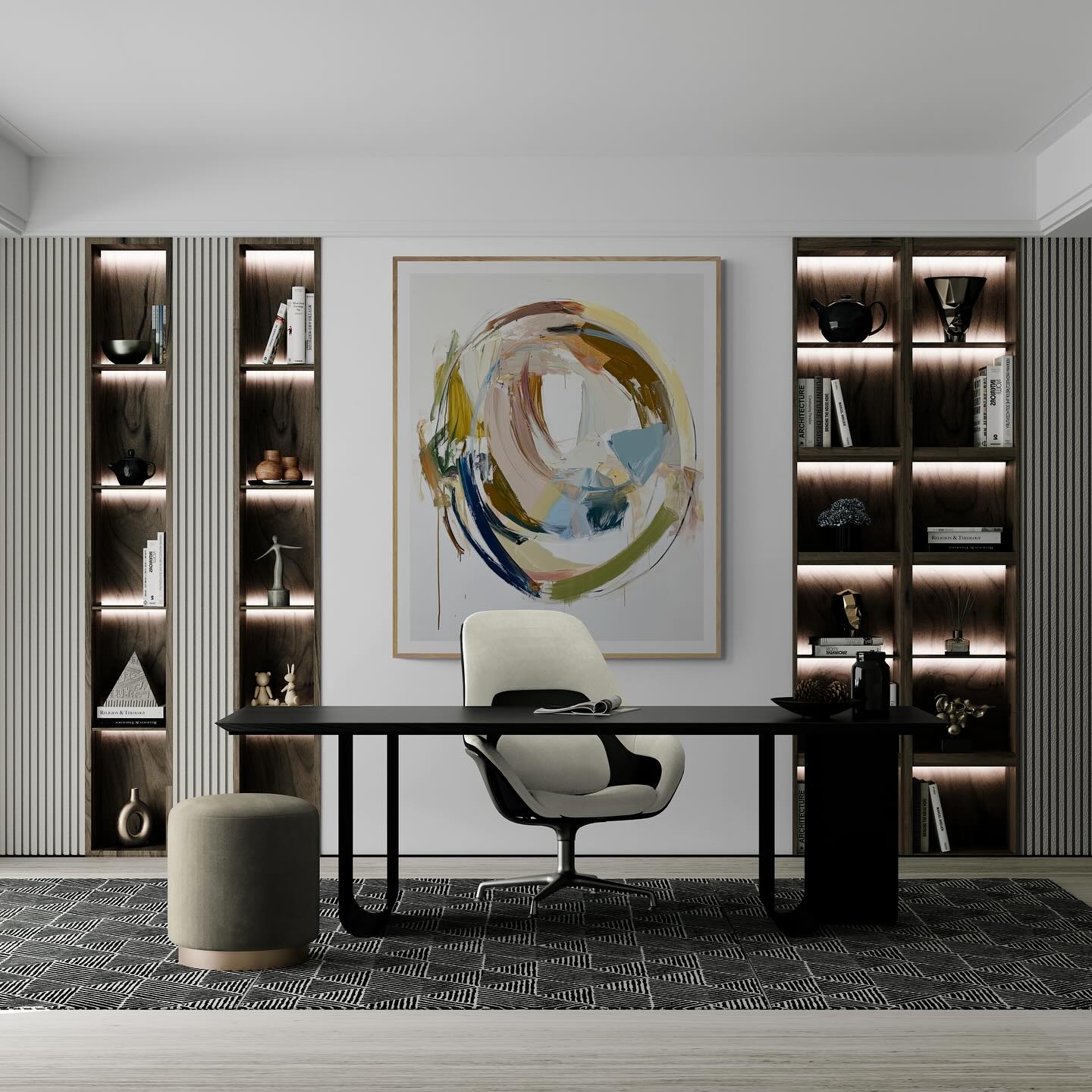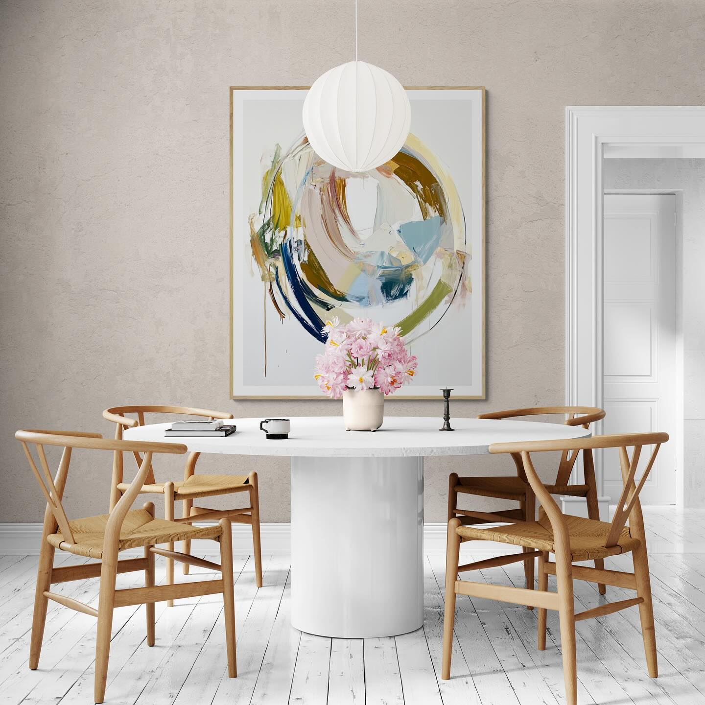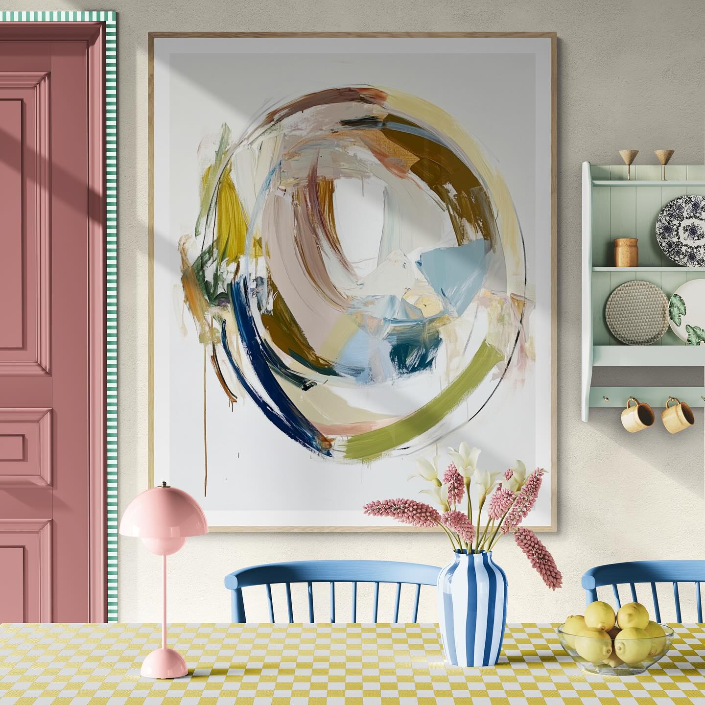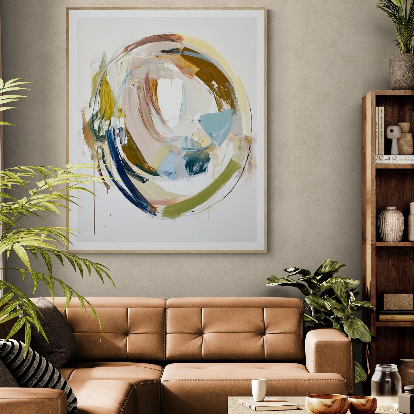 Abstract contemporary round oil painting.