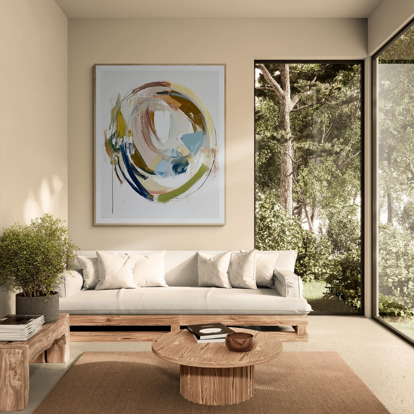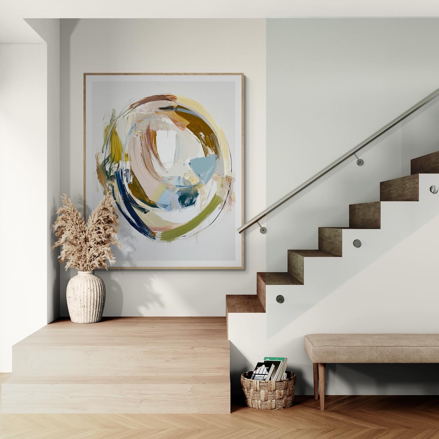Para obras enmarcadas, sugerimos quitar con cuidado el embalaje protector y colgarla con la ayuda de dos personas, usando clavos resistentes. En el caso de obras de gran tamaño, si es posible, utiliza tornillos y tacos de pared.