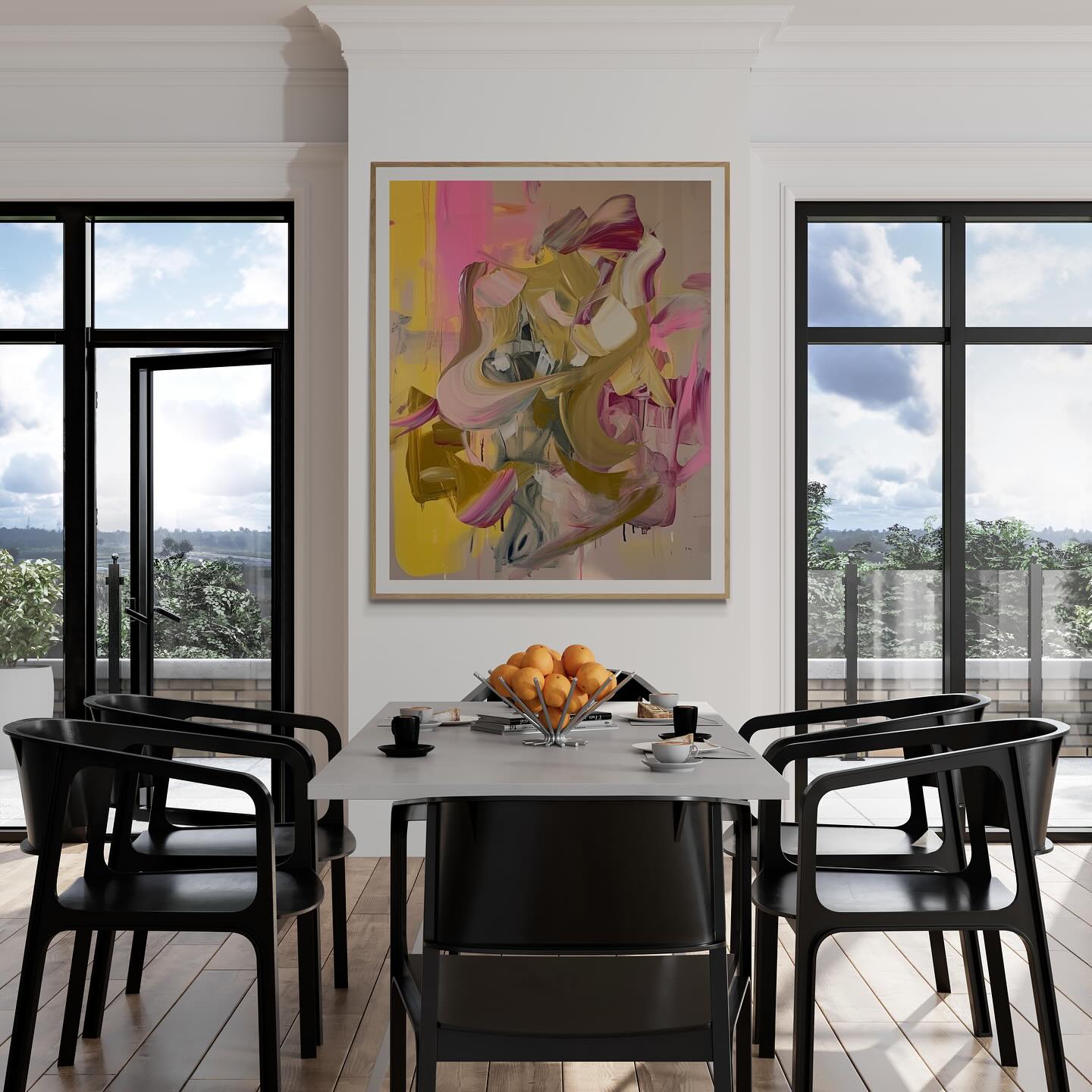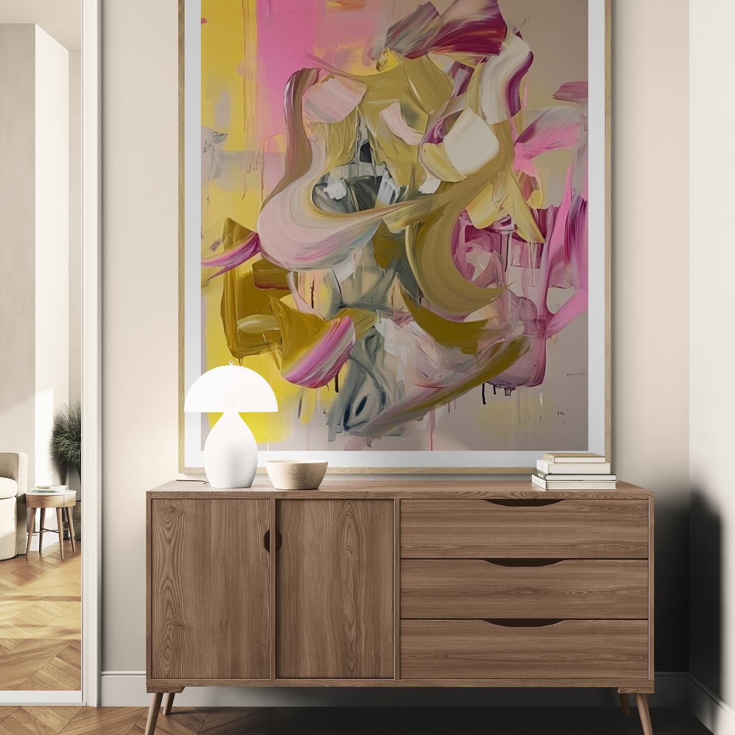 Para obras enmarcadas, sugerimos quitar con cuidado el embalaje protector y colgarla con la ayuda de dos personas, usando clavos resistentes. En el caso de obras de gran tamaño, si es posible, utiliza tornillos y tacos de pared.