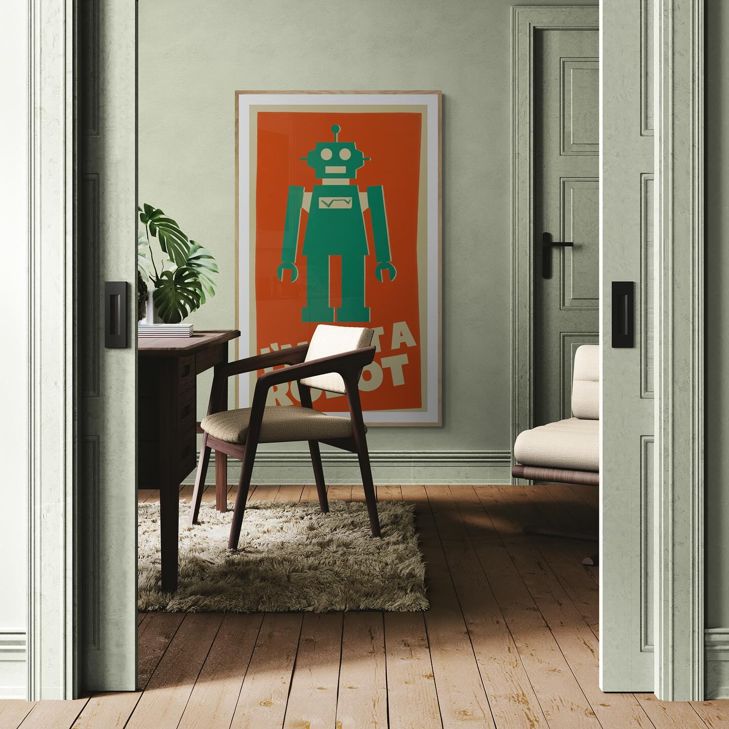 Para obras enmarcadas, sugerimos quitar con cuidado el embalaje protector y colgarla con la ayuda de dos personas, usando clavos resistentes. En el caso de obras de gran tamaño, si es posible, utiliza tornillos y tacos de pared.