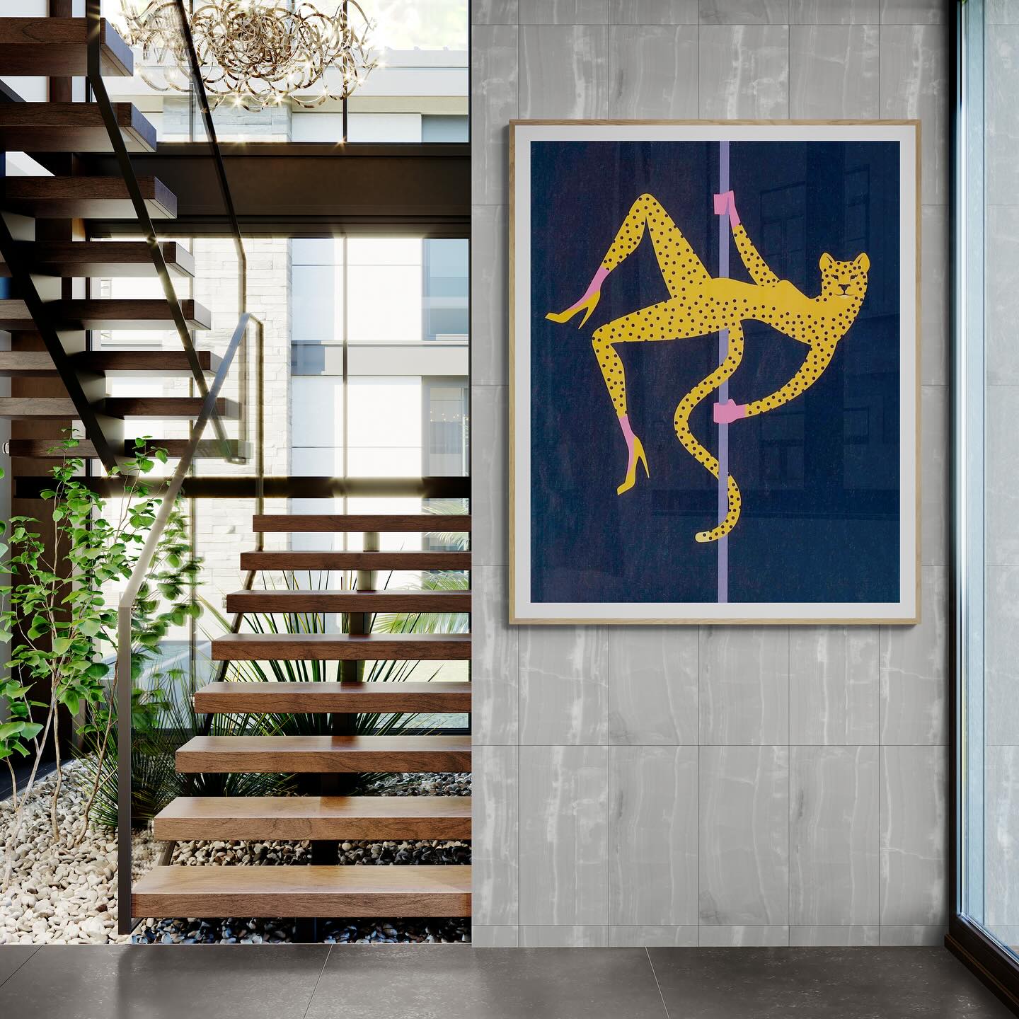 Para obras enmarcadas, sugerimos quitar con cuidado el embalaje protector y colgarla con la ayuda de dos personas, usando clavos resistentes. En el caso de obras de gran tamaño, si es posible, utiliza tornillos y tacos de pared.
