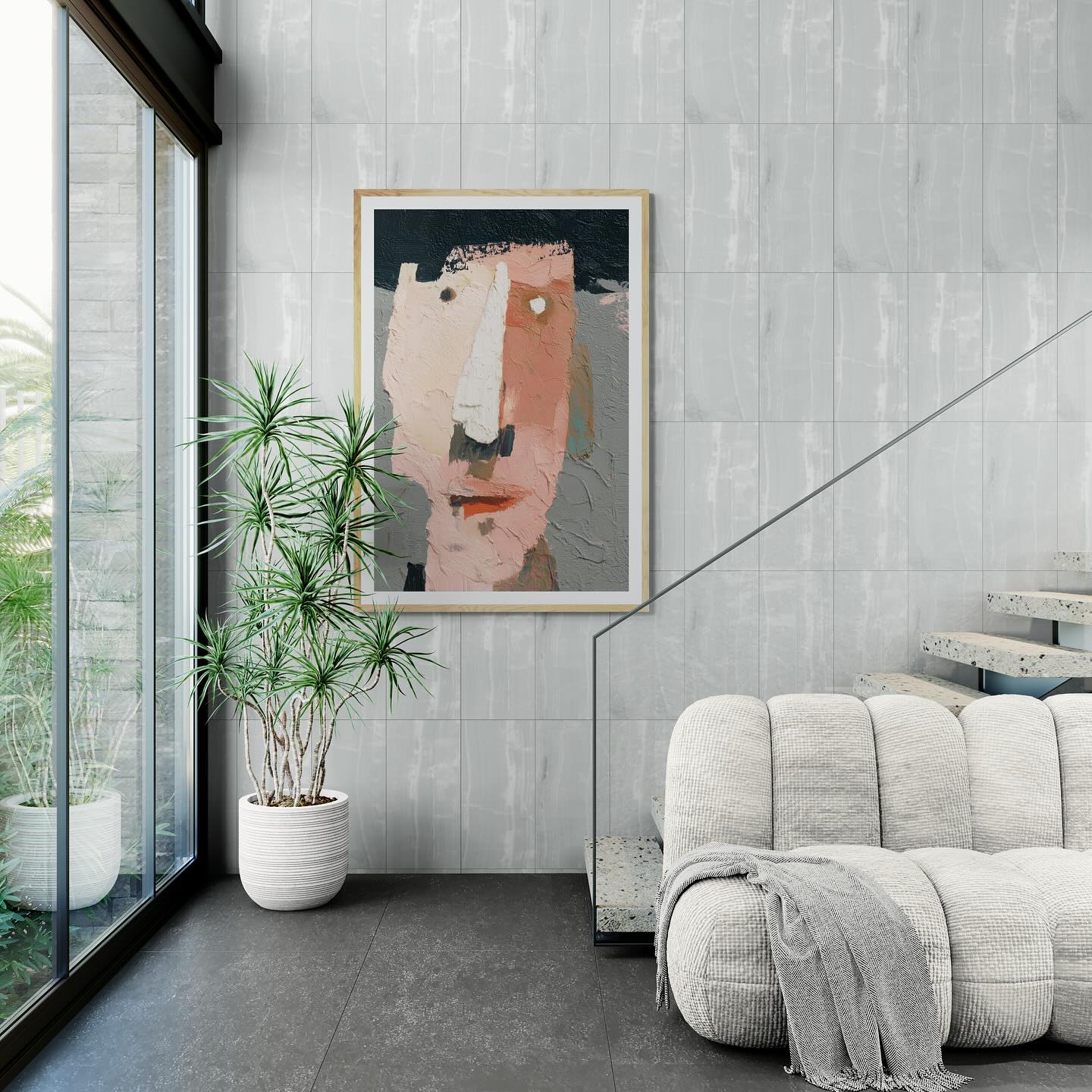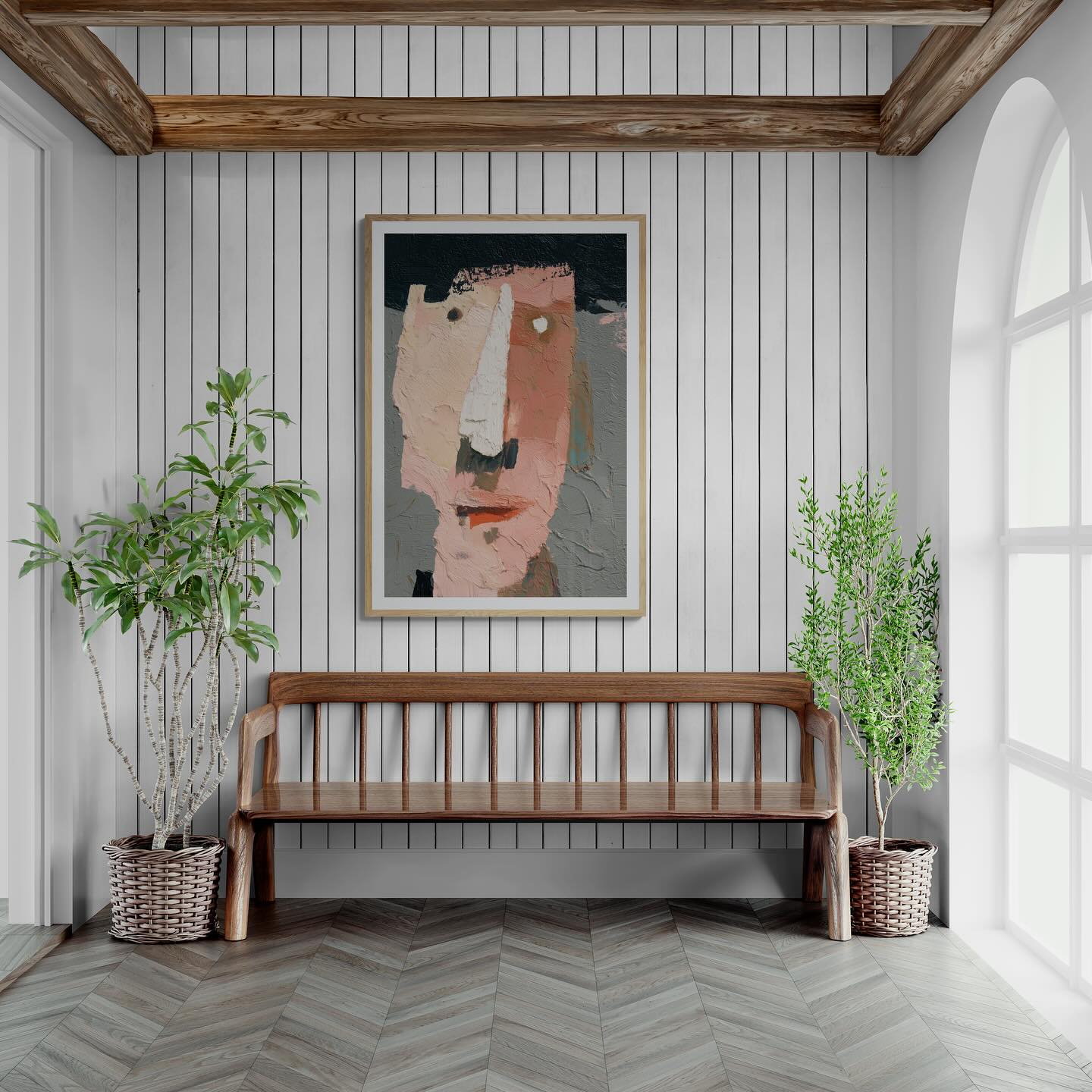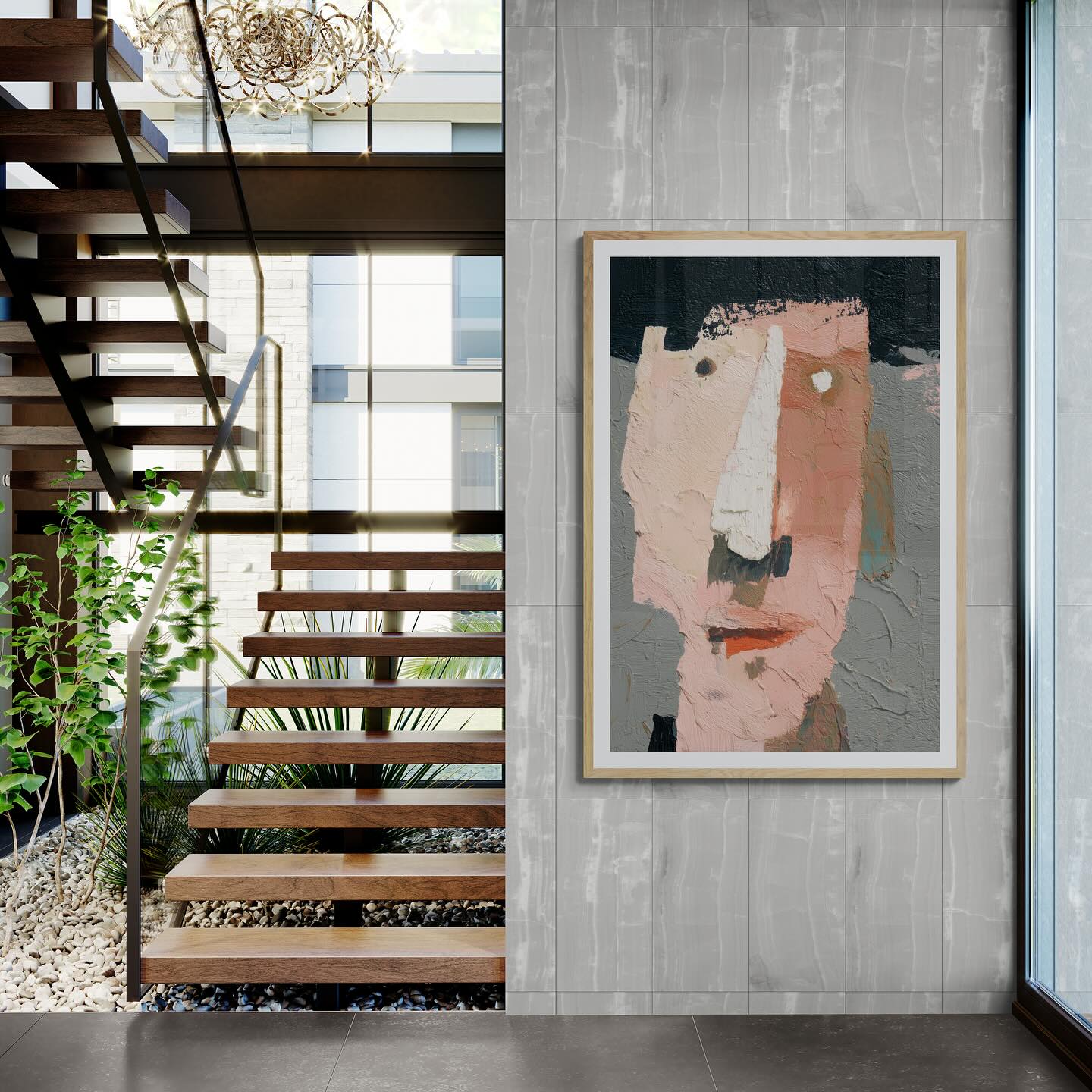 Para obras enmarcadas, sugerimos quitar con cuidado el embalaje protector y colgarla con la ayuda de dos personas, usando clavos resistentes. En el caso de obras de gran tamaño, si es posible, utiliza tornillos y tacos de pared.