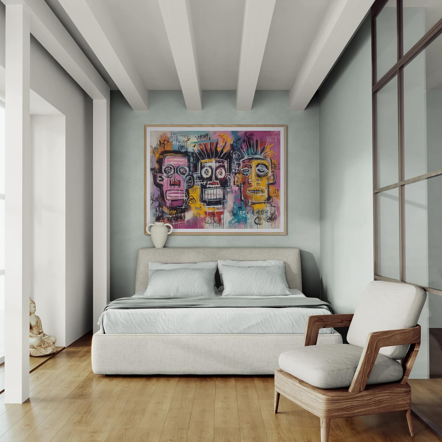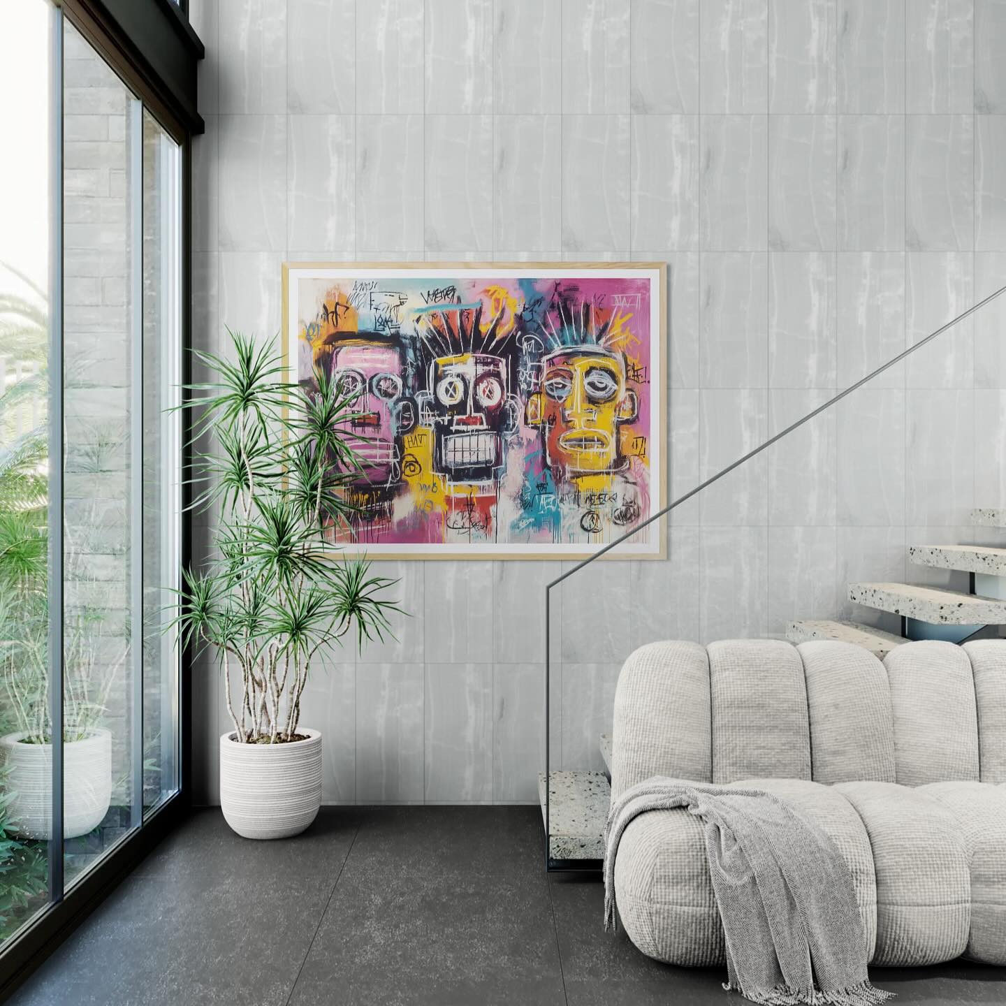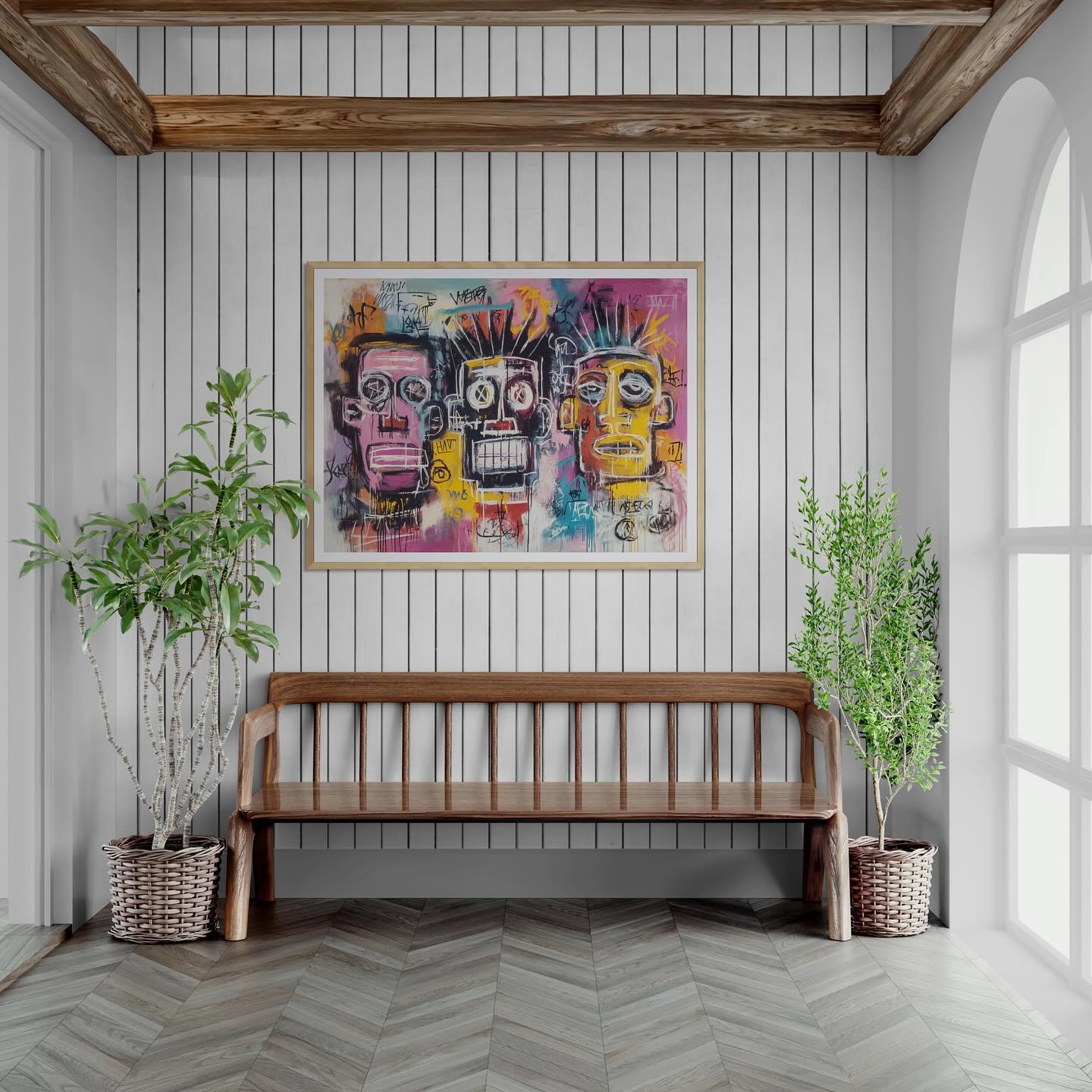 Para obras enmarcadas, sugerimos quitar con cuidado el embalaje protector y colgarla con la ayuda de dos personas, usando clavos resistentes. En el caso de obras de gran tamaño, si es posible, utiliza tornillos y tacos de pared.