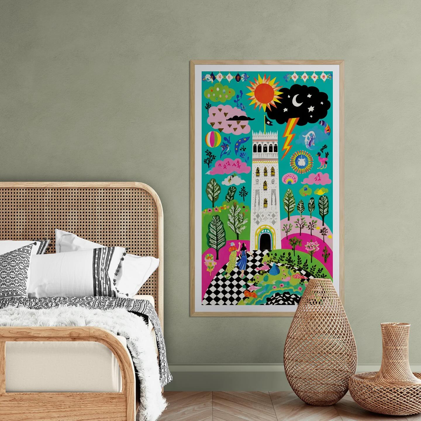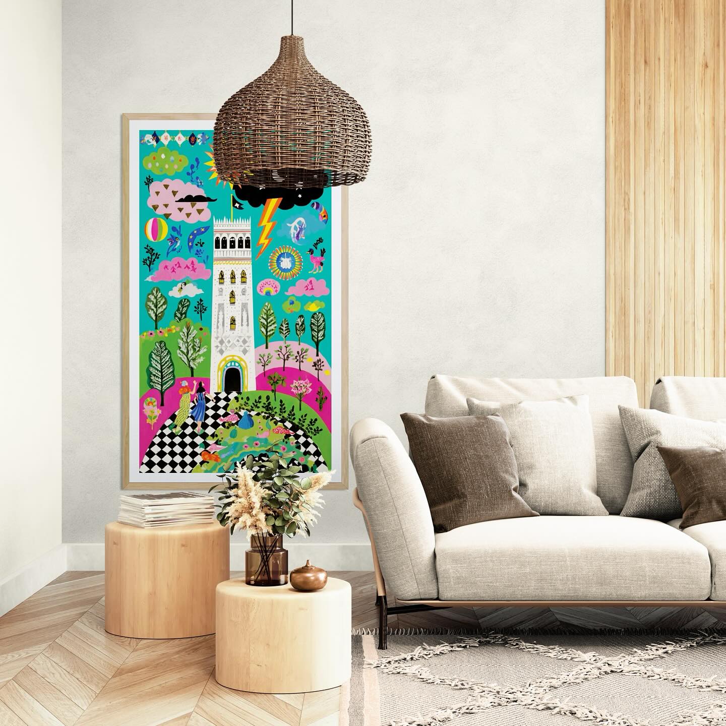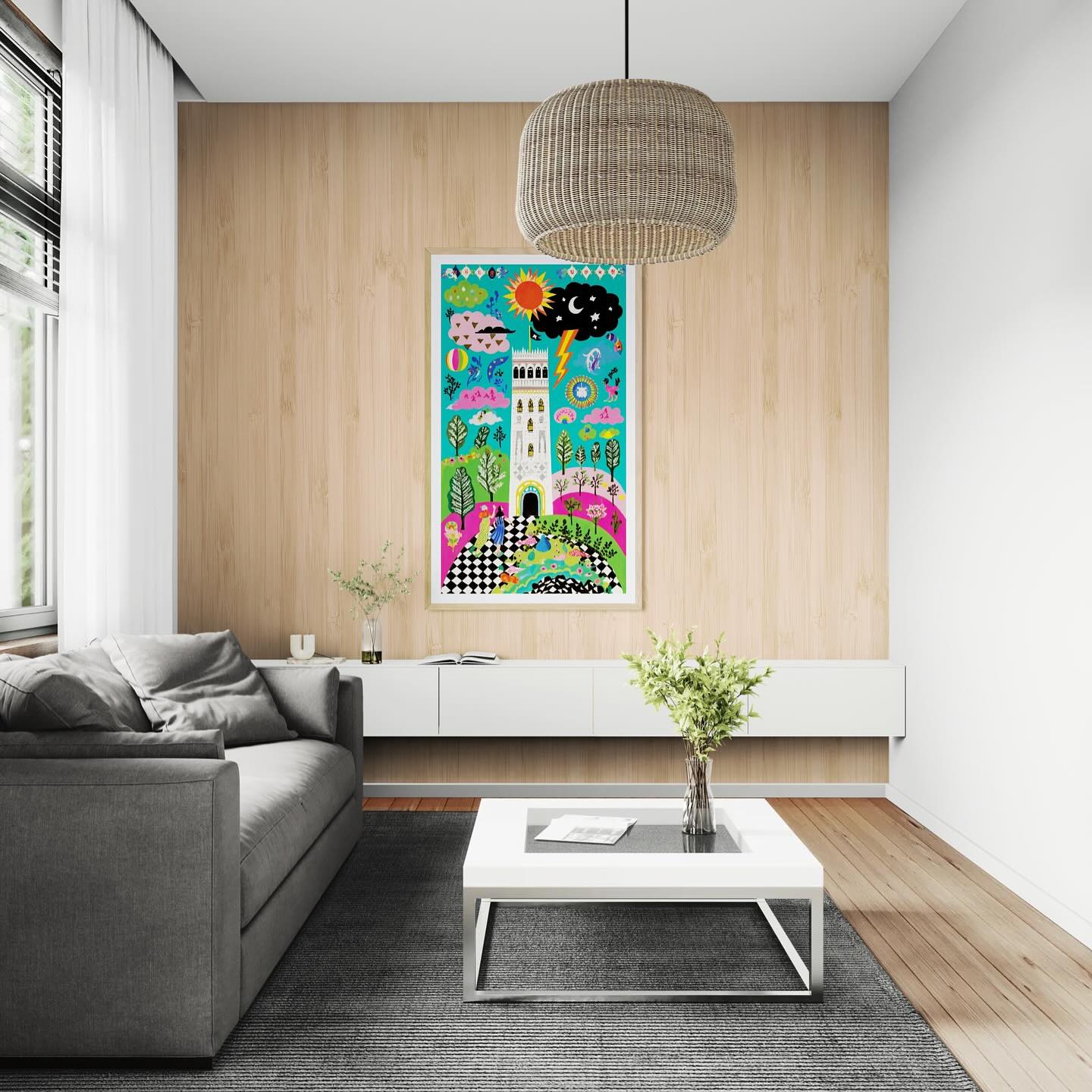 Para obras enmarcadas, sugerimos quitar con cuidado el embalaje protector y colgarla con la ayuda de dos personas, usando clavos resistentes. En el caso de obras de gran tamaño, si es posible, utiliza tornillos y tacos de pared.